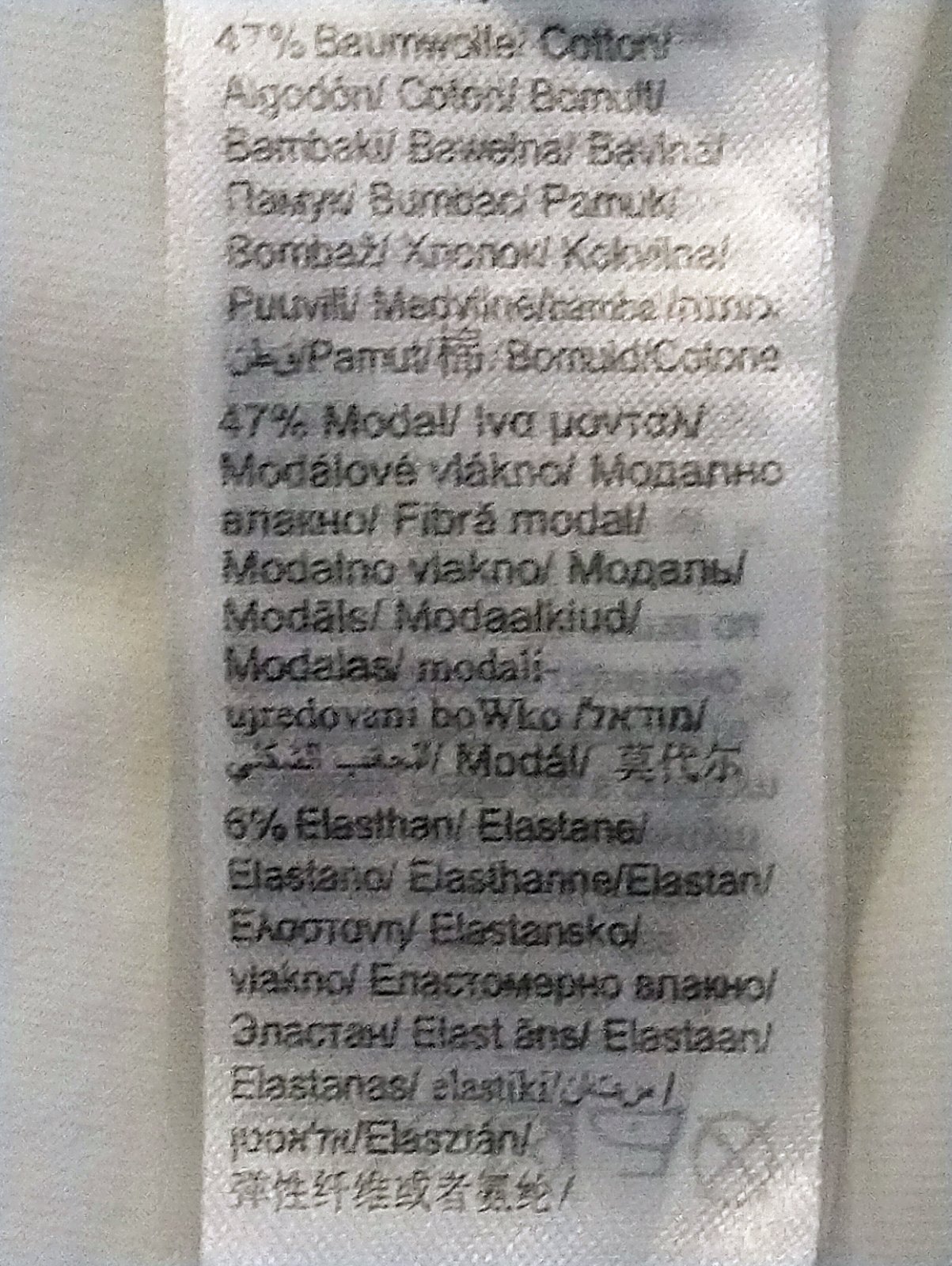 príjemný kvalitný materiál, zloženie: 47 % bavlna, 47 % modal, 6 % elastan,