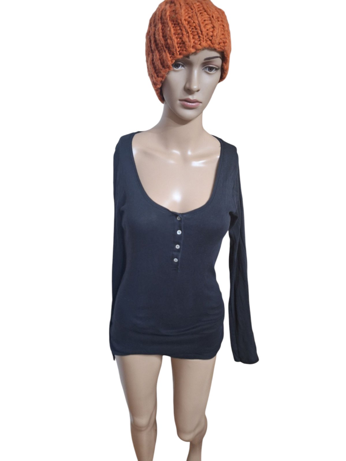Dámske značkové bavlnené tričko. Je mierne elastické. Dĺžka je 65cm,obvod hrudníka je 80cm a obvod pása je 74cm. Dĺžka rukáva je od krku 70cm. kód 1247