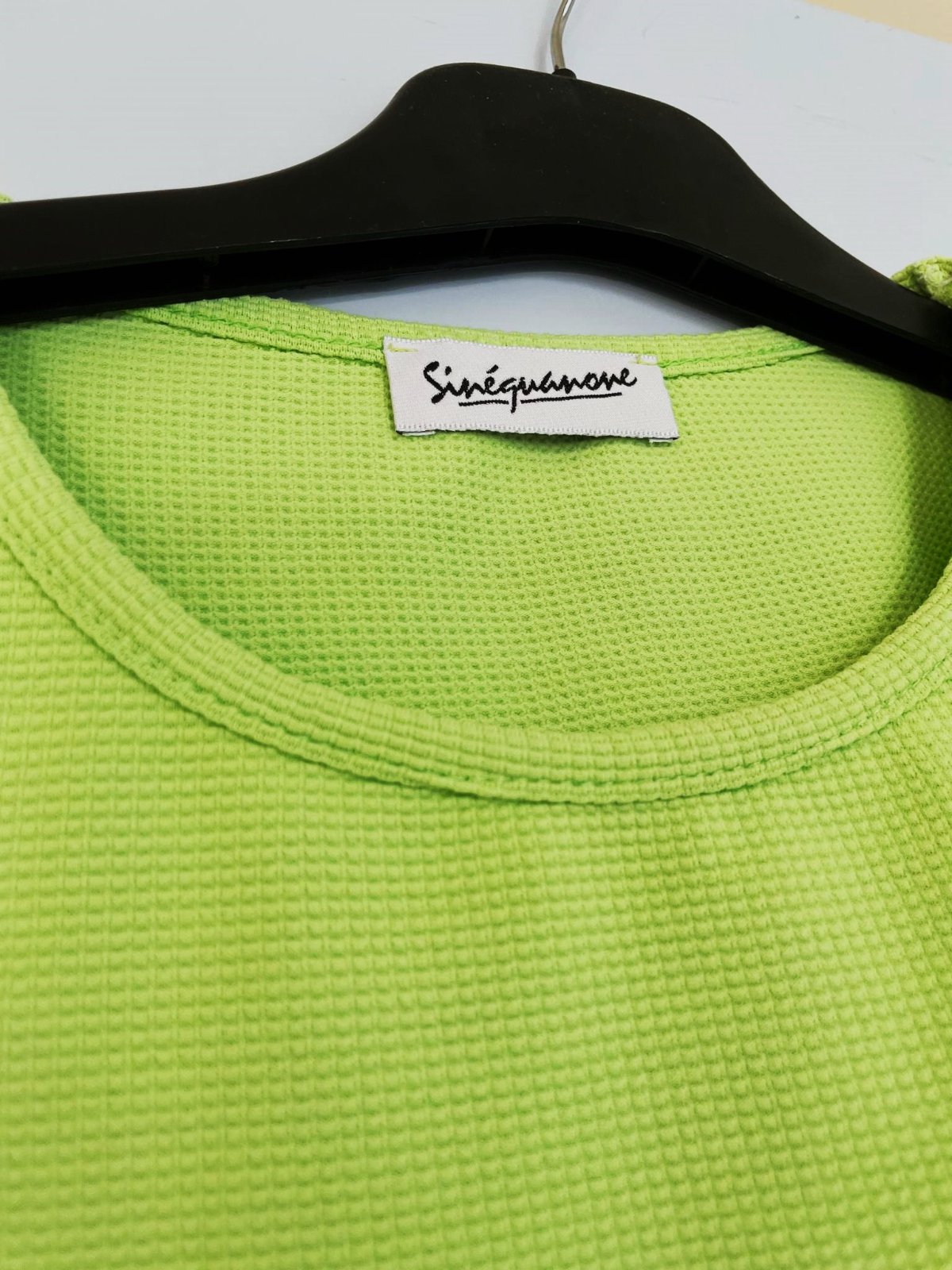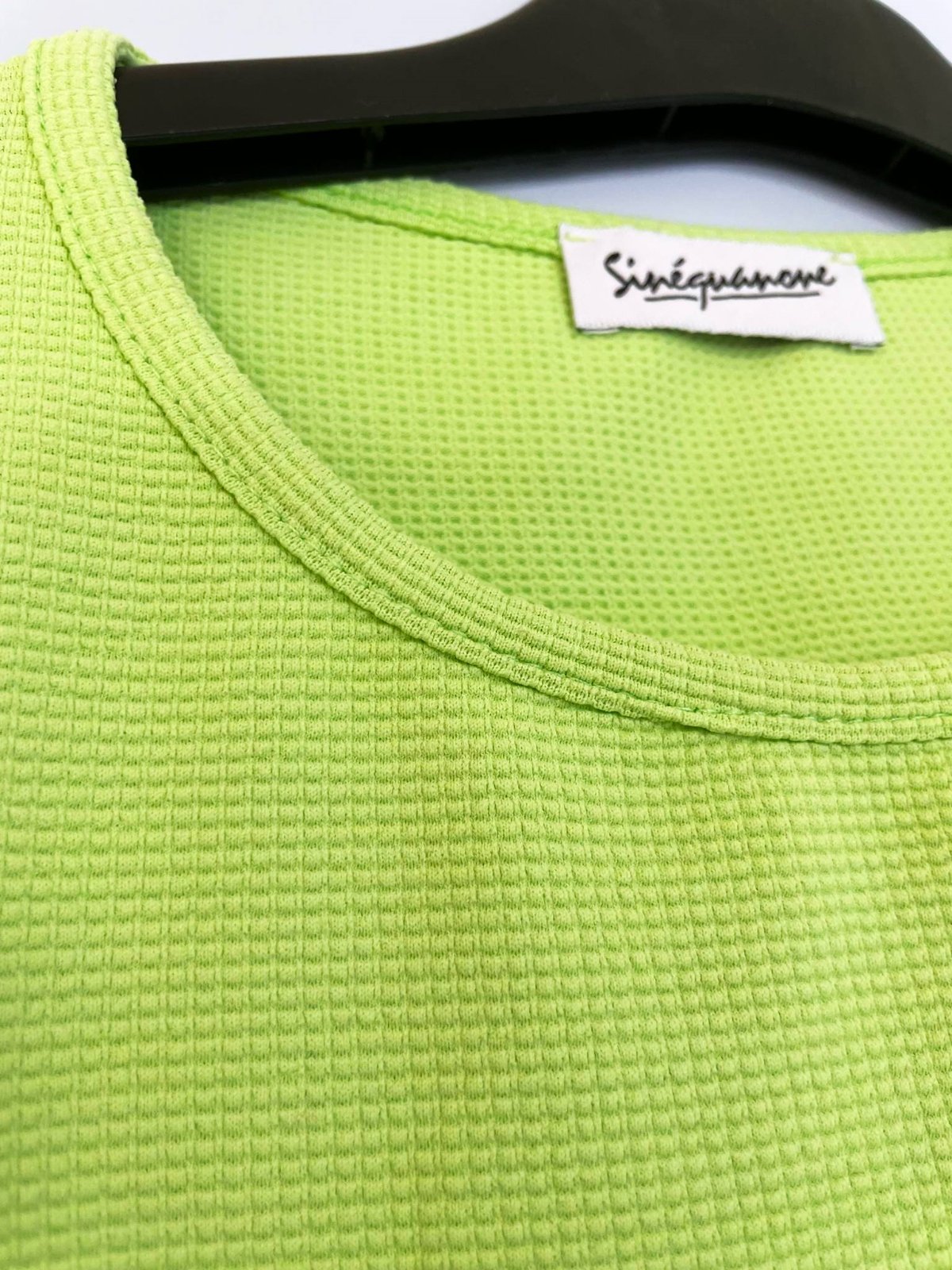 pevnejšie hrubšie tričko - nie je to bavlna, ale je to syntetika,jednoduché,krásna letná zelená farba,zaujímavá štruktúra materiálu,dlžka = 52 cm, šírka meraná pod pazuchou = 44 x 2 cm