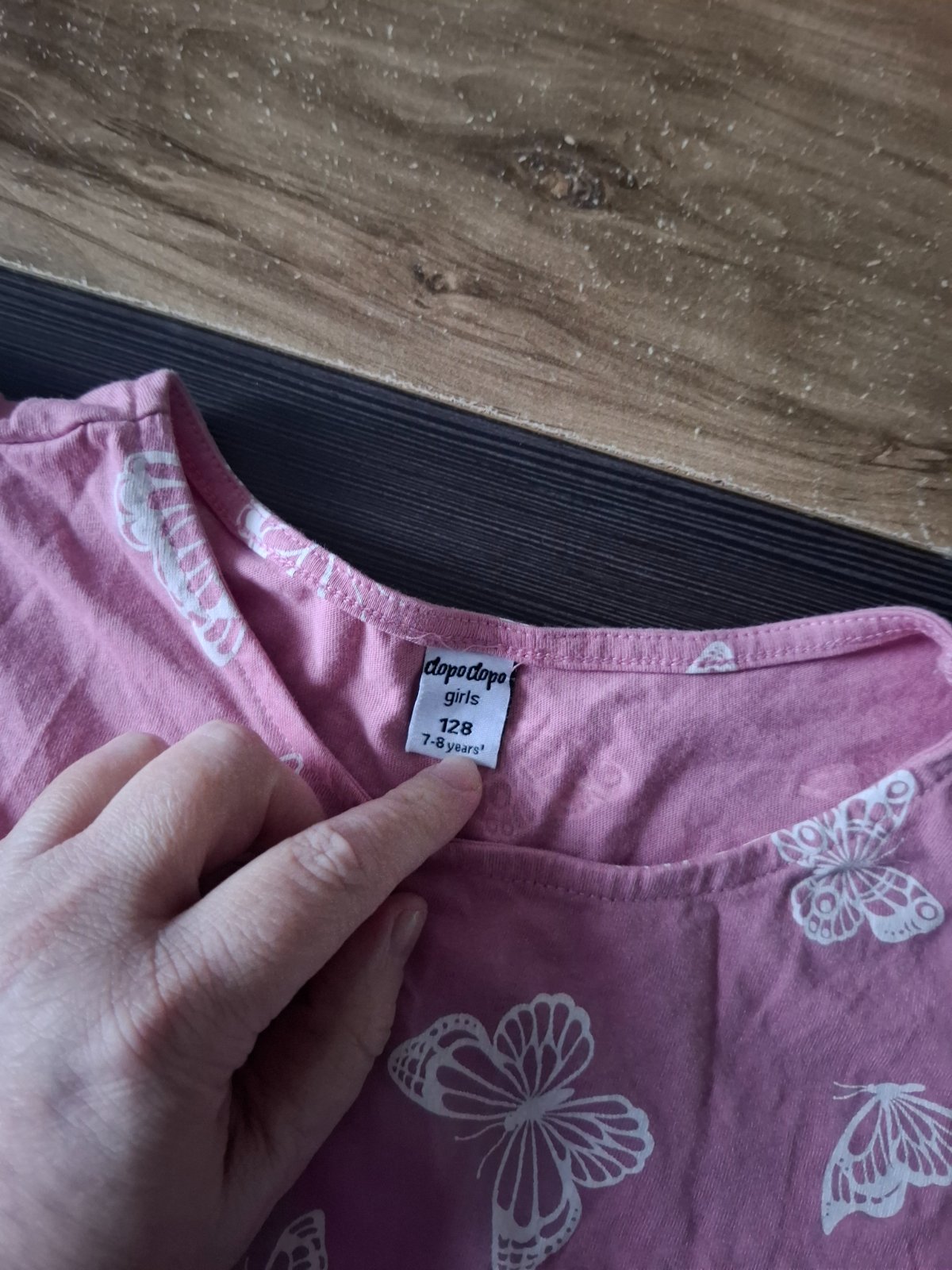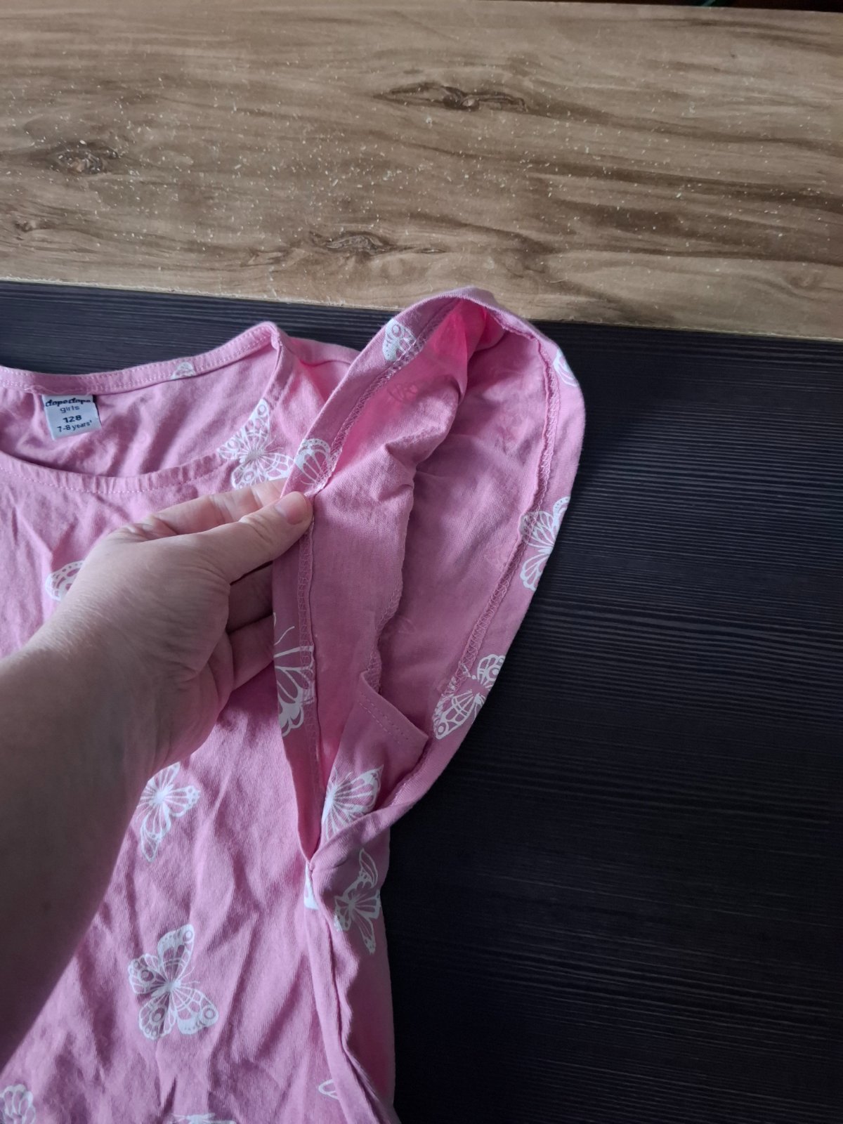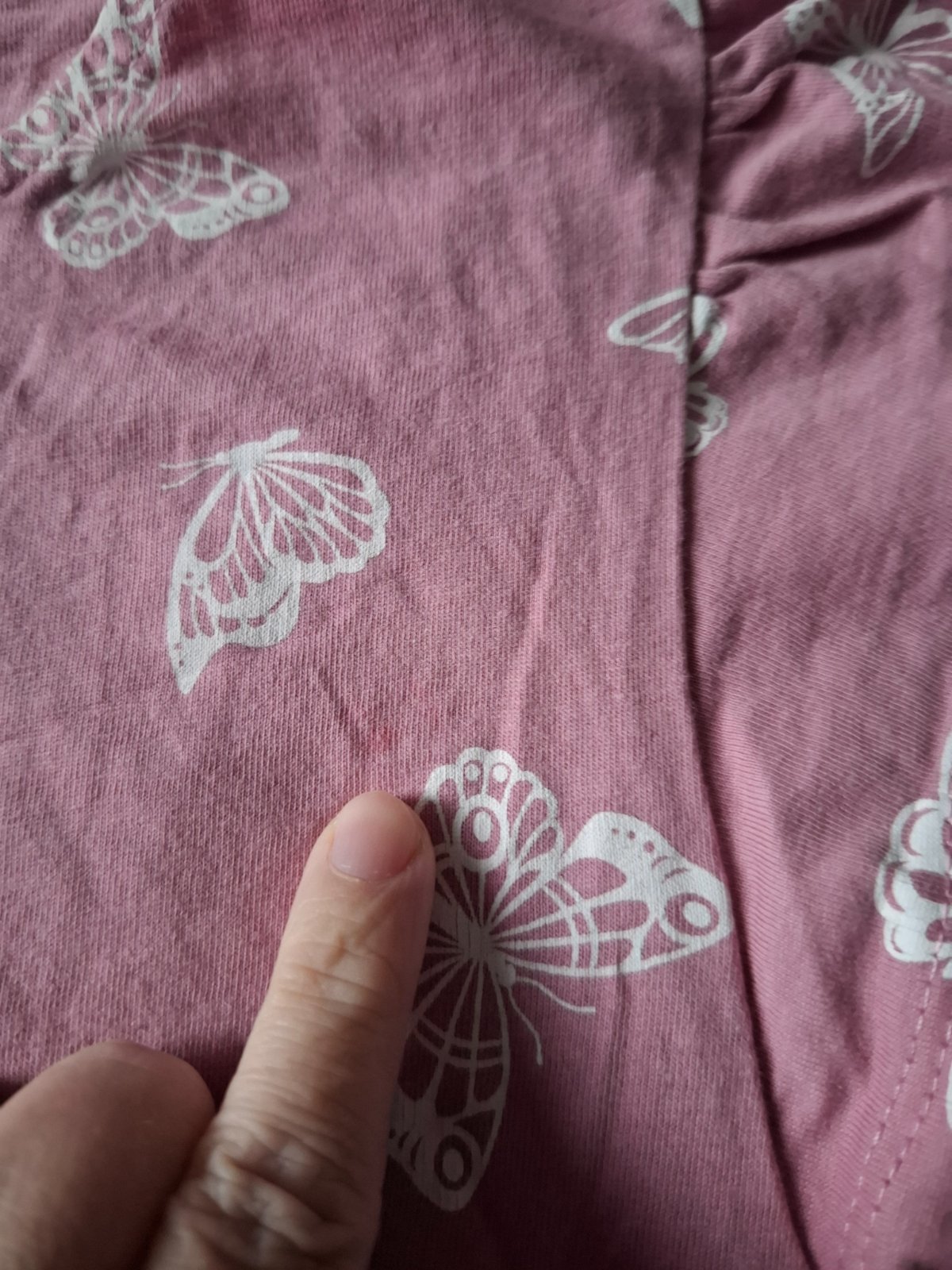 Tričko je v peknom nosenom stave, našla som červnený fliačik vpredu asi sa jej na výtvarnej podarilo - nafotené. Iné poškodenia som nenašla.