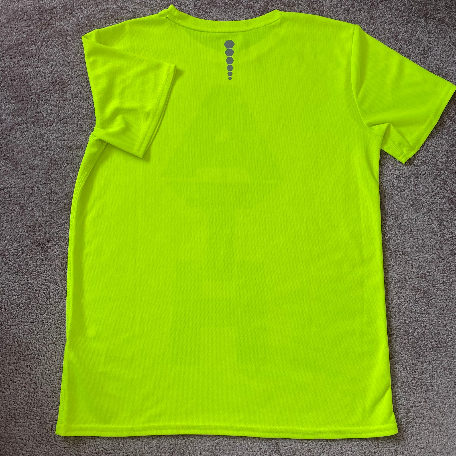 Športové tričko (100% polyester) v neónovej žlto-zelenkavej farby. V dobrom stave. Dĺžka je 66cm, šírka je 48cm.