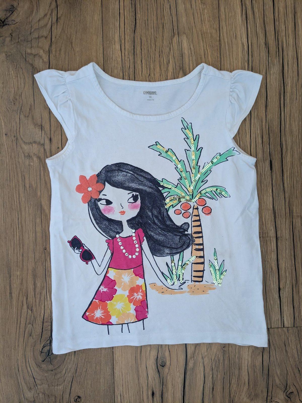 Tričko s obrázkom, nenápadný fliačik, inak OK dobrý stav.