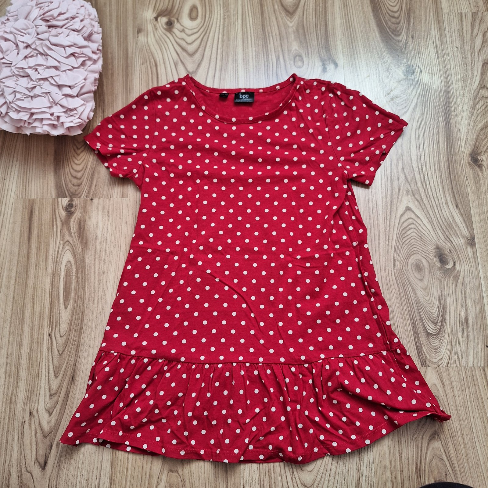Krásne, sýtočervené tričko s drobnou vzorkou, a širokými rukávmi v netopieriom strihu. Nenosené, nové, mám ich doma veľa, triedim skrine :) Veľkosť 32/34, sedi na S/M, dĺžka 63cm, šírka 2x40 až 2x5...