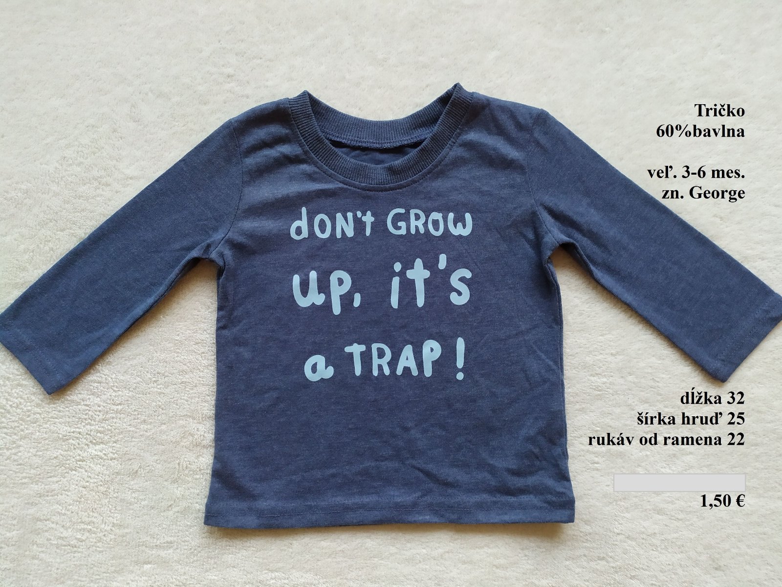 dĺžka 32cm, šírka hruď 25cm, rukáv od ramena 22cm