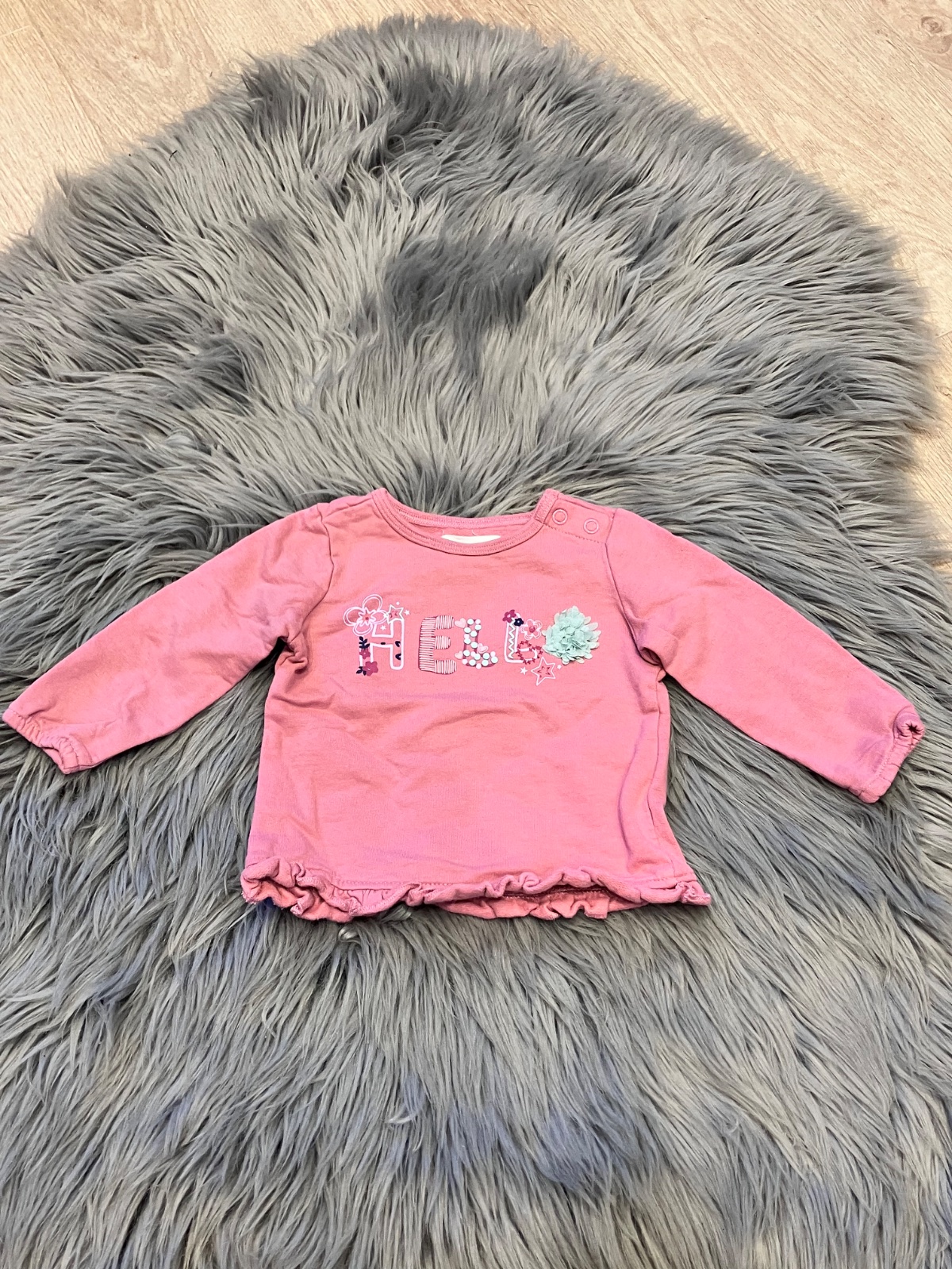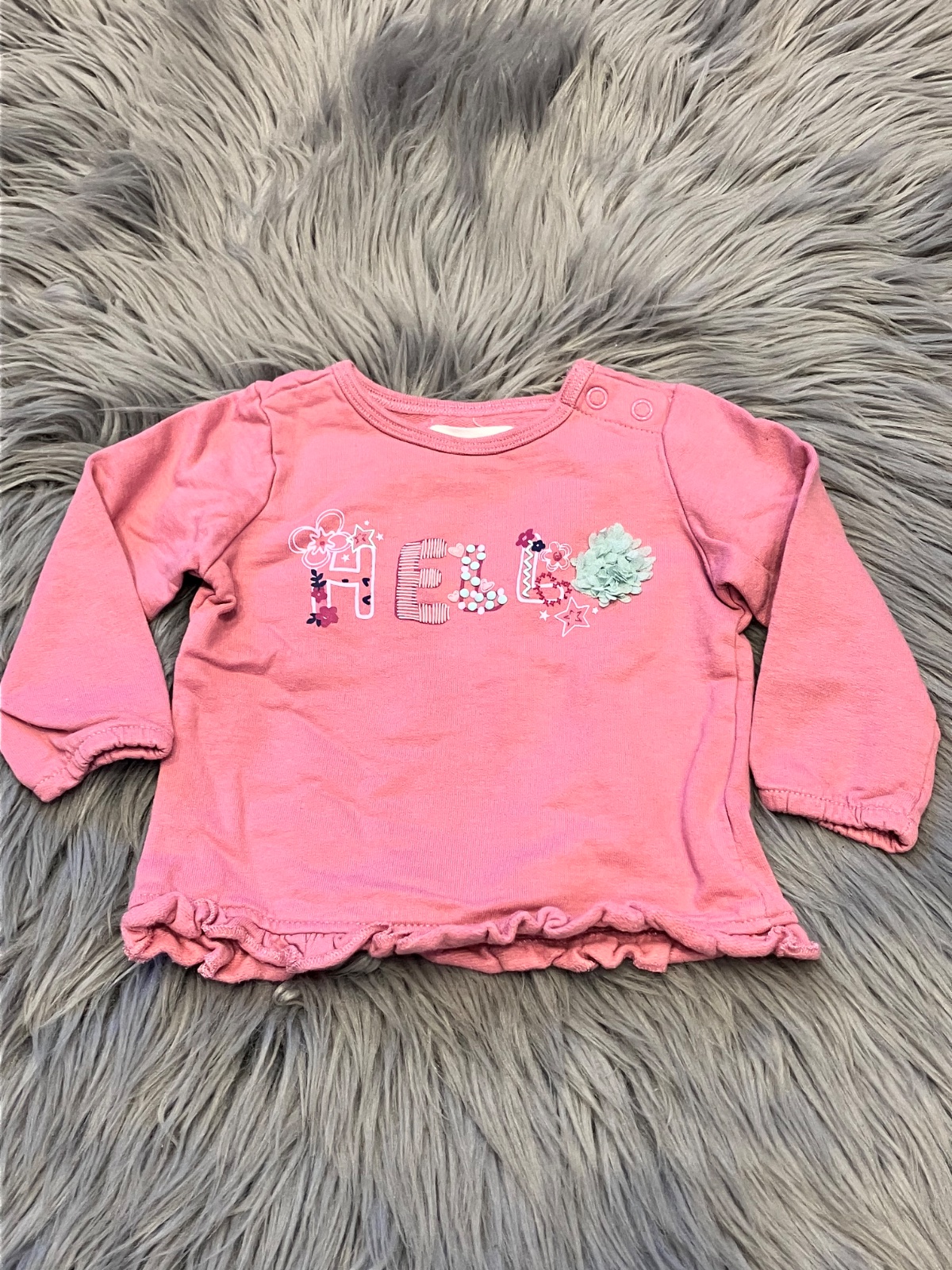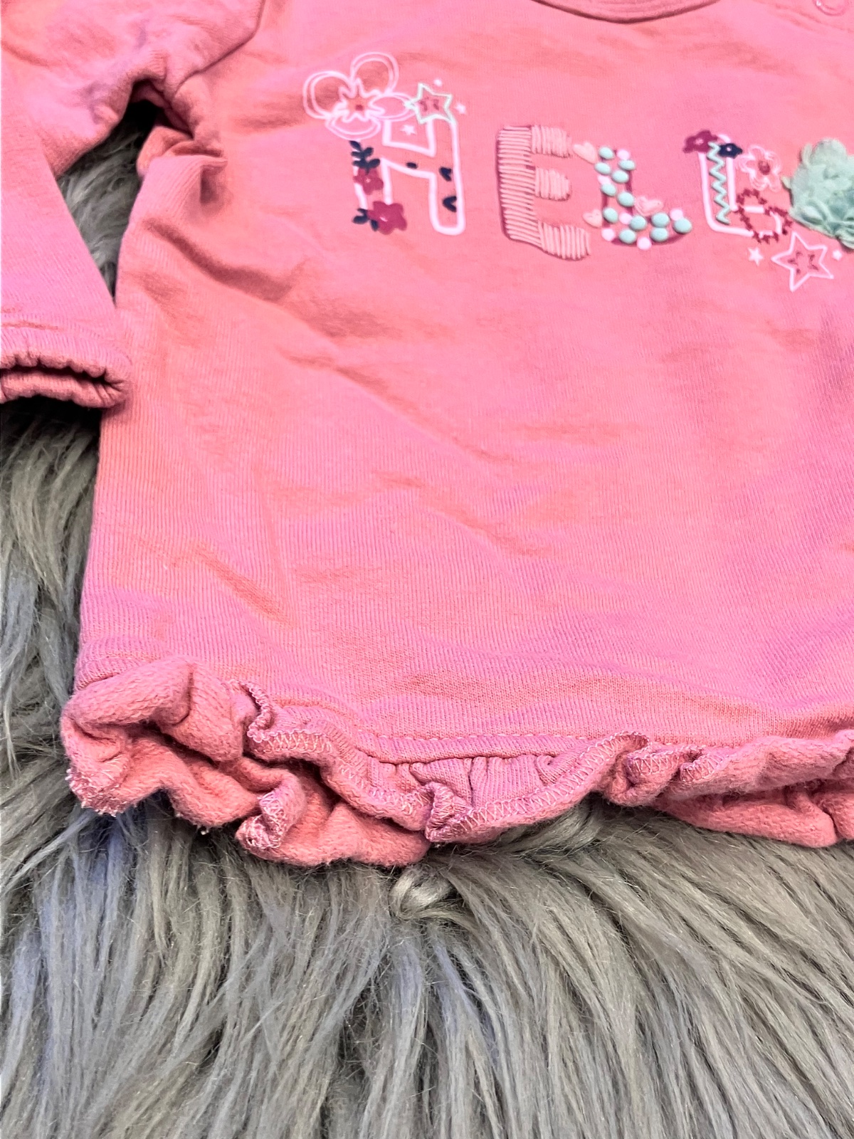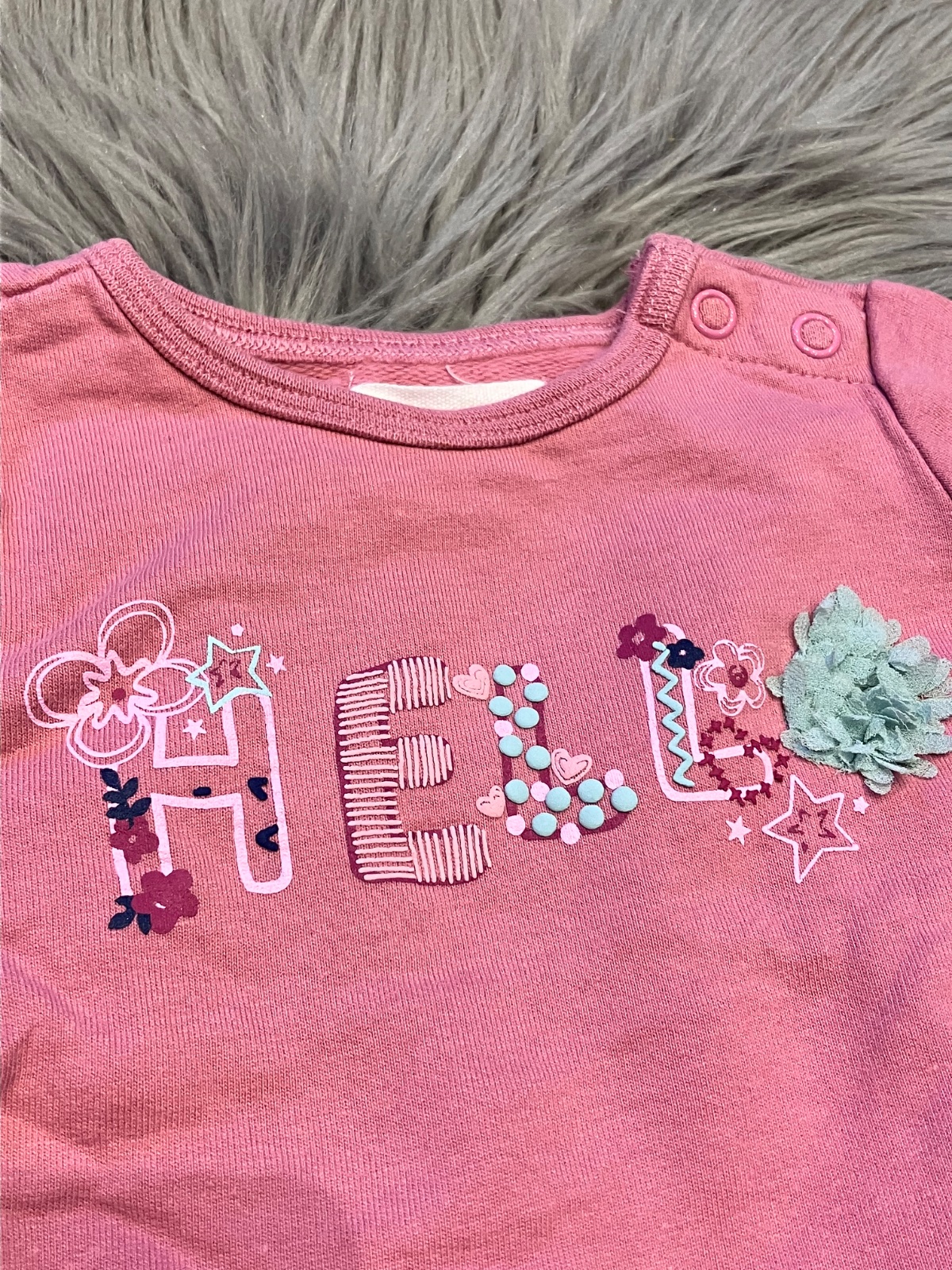 Dievčenské tričko s dlhým rukávom, nápisom, bodkami, kvetmi a hvieždičkami, elastické, zapínanie na ramene na dve cvoky, materiál 100%bavlna.