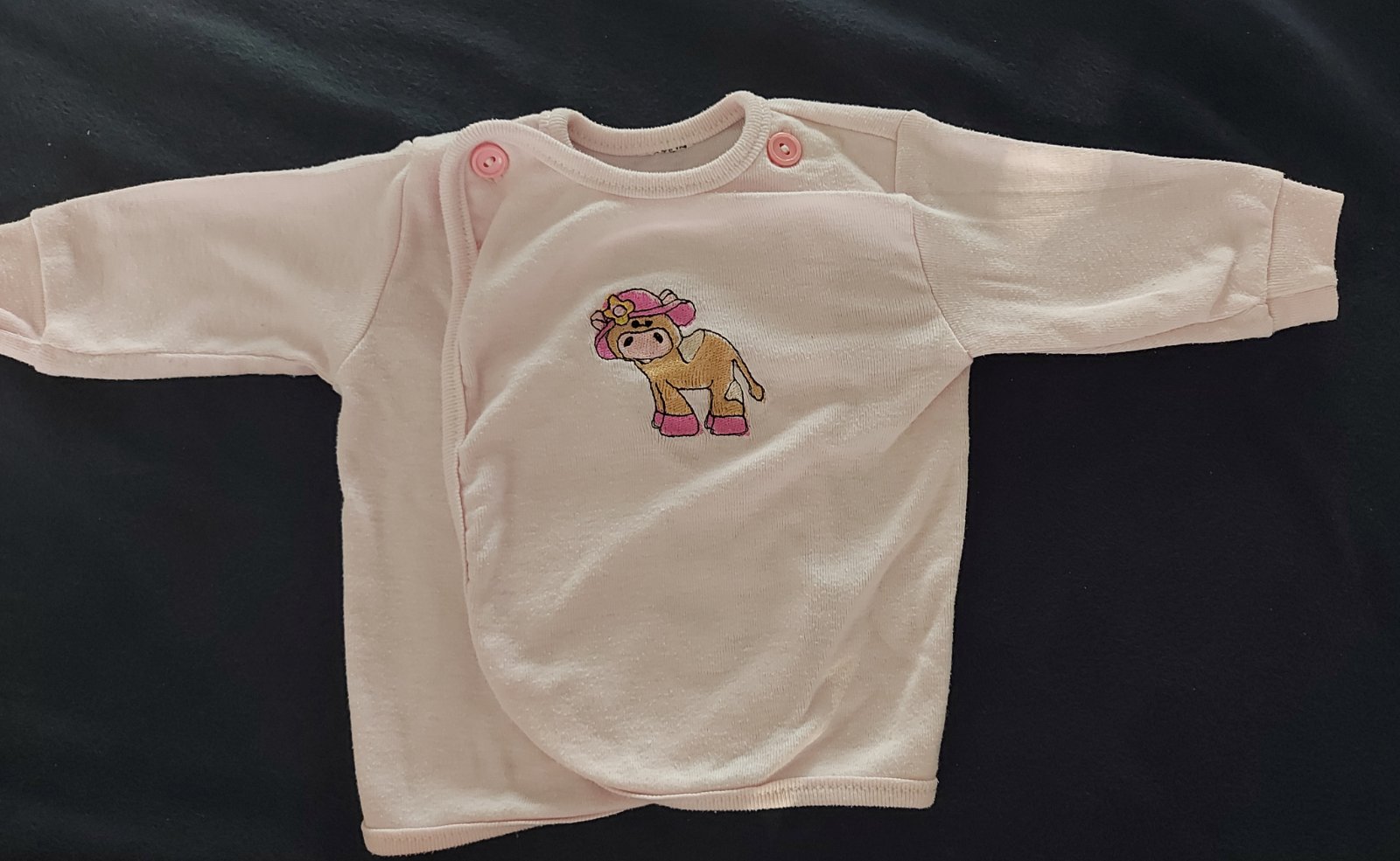 Pekné tričko s ružovými bodkami. Veľkosť píšu novorodenec, ale zodpovedá tak 56-62.