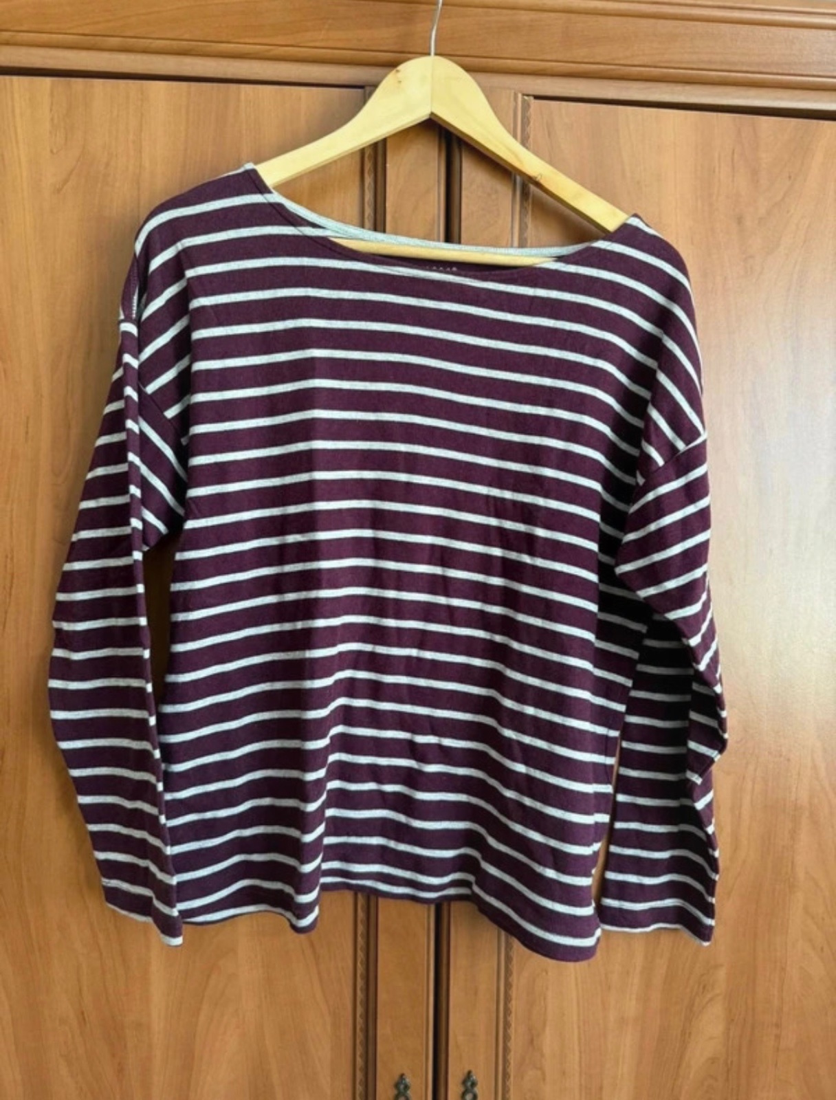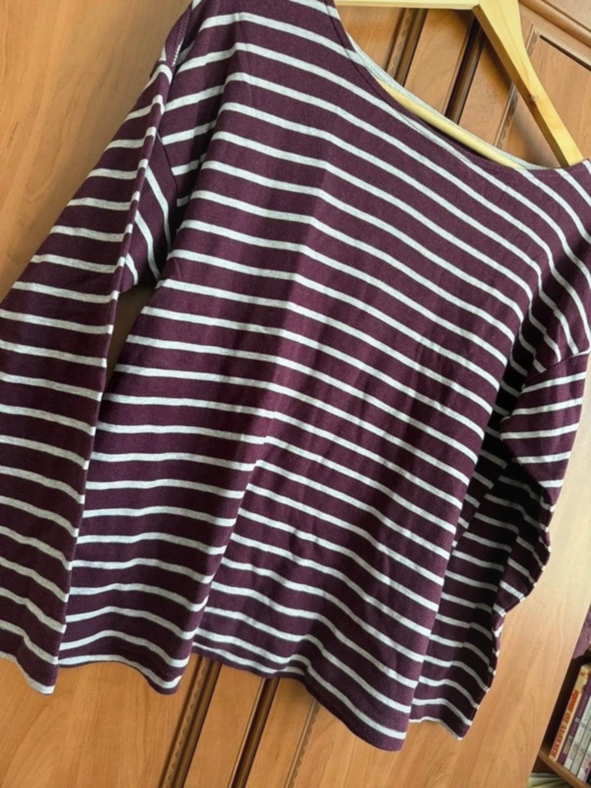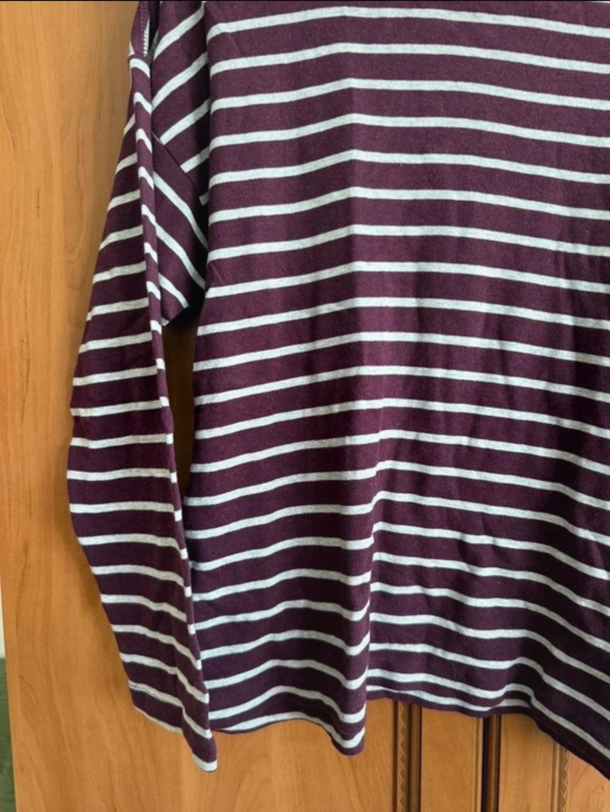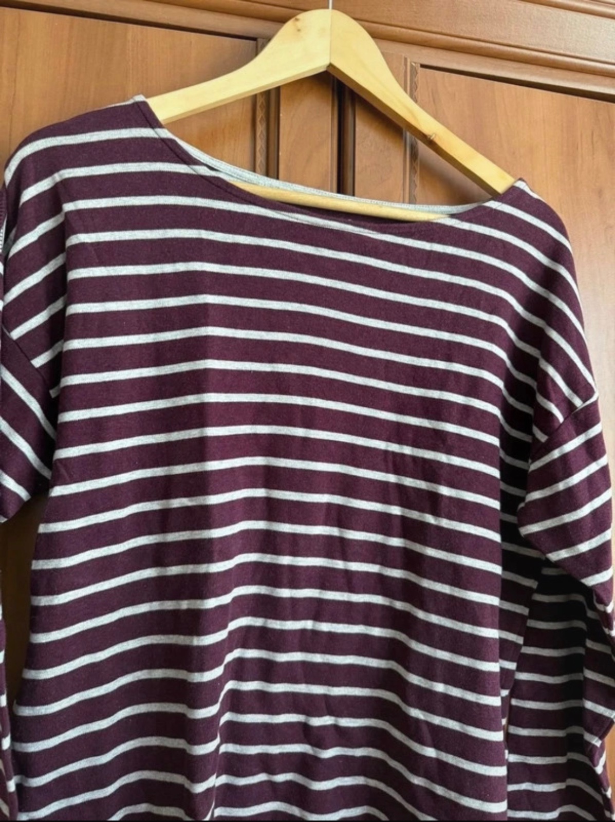 Toto pruhované tričko je v krásnej kombinácii bordovej a bielej farby🤍, ideálne na pohodové dni.🥰Vyzerá veľmi štýlovo so svojími horizontálnymi pruhmi a je skvelým doplnkom do vášho šatníka.💞
