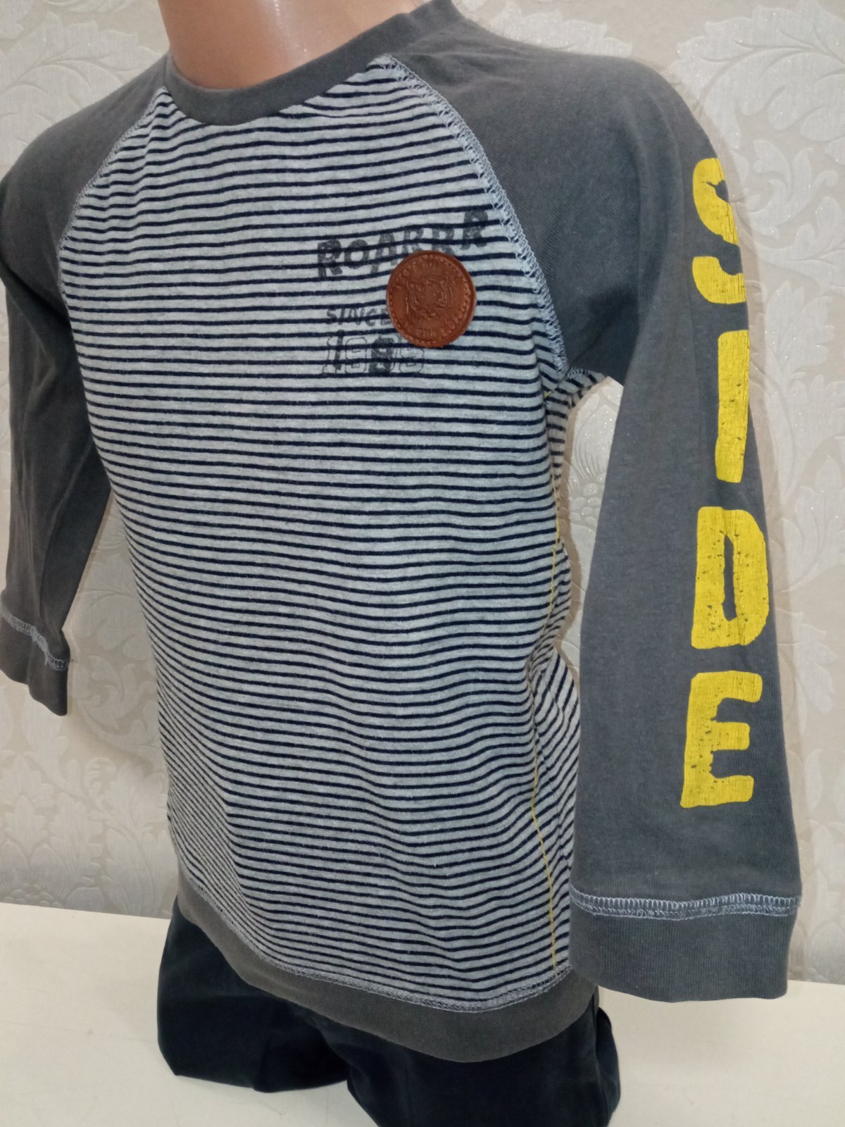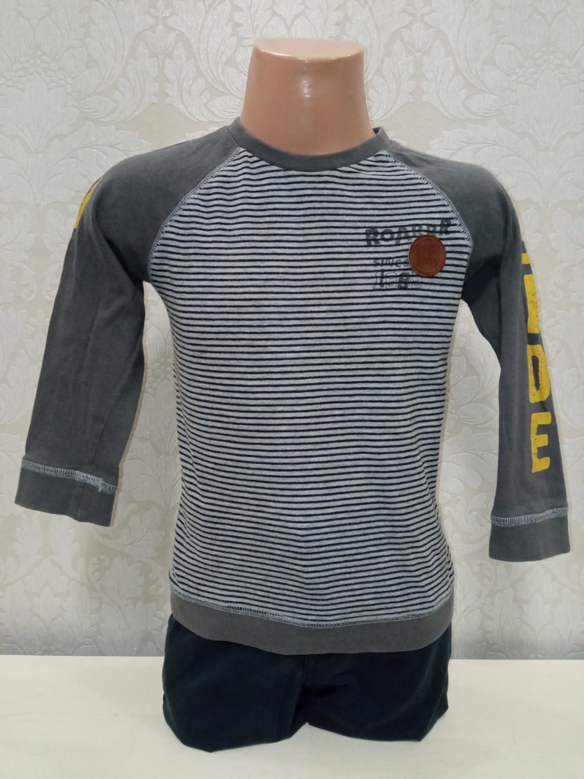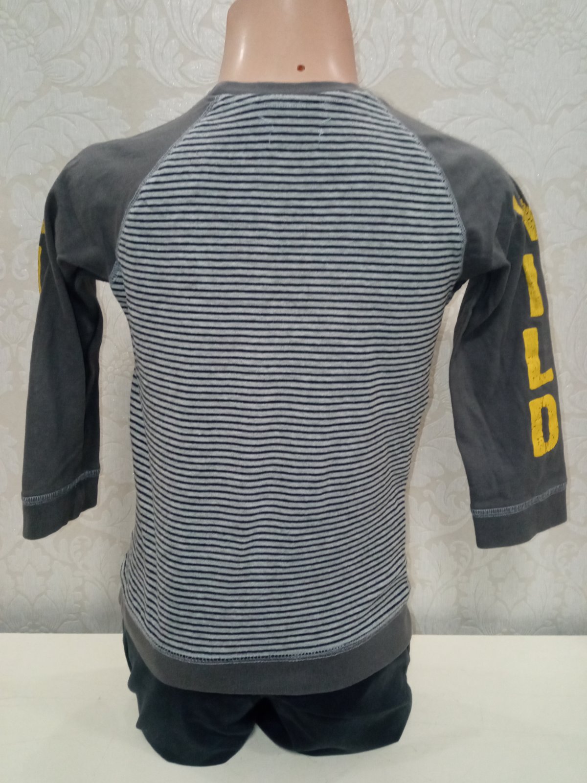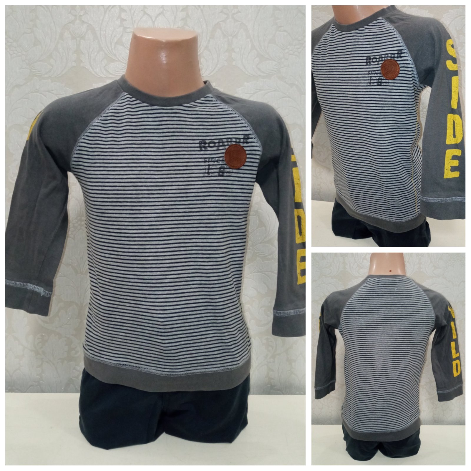 Chlapčenské sivo-modré pásikavé tričko s dlhým rukávom. Elastické.