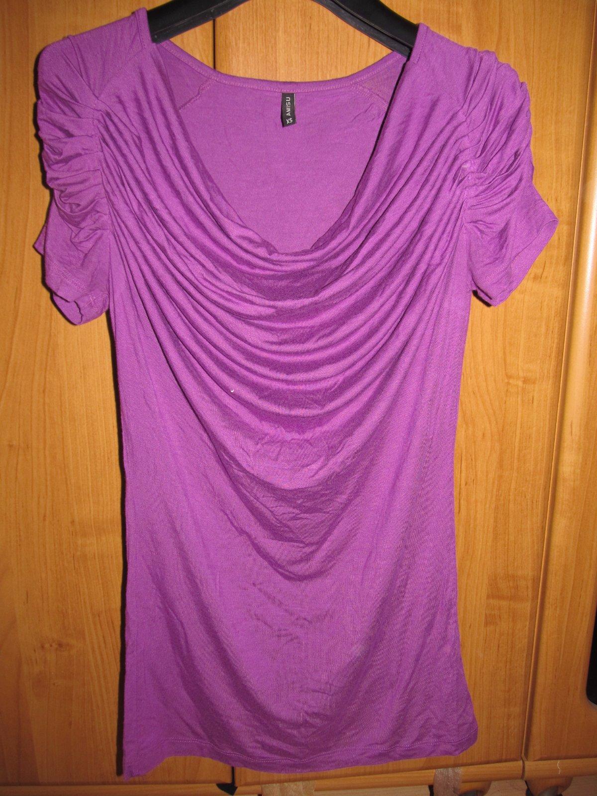 Predám pekné tričko, nenosené s nariasením v okolí dekoltu. Veľkosť: XS, Cena:6 eur