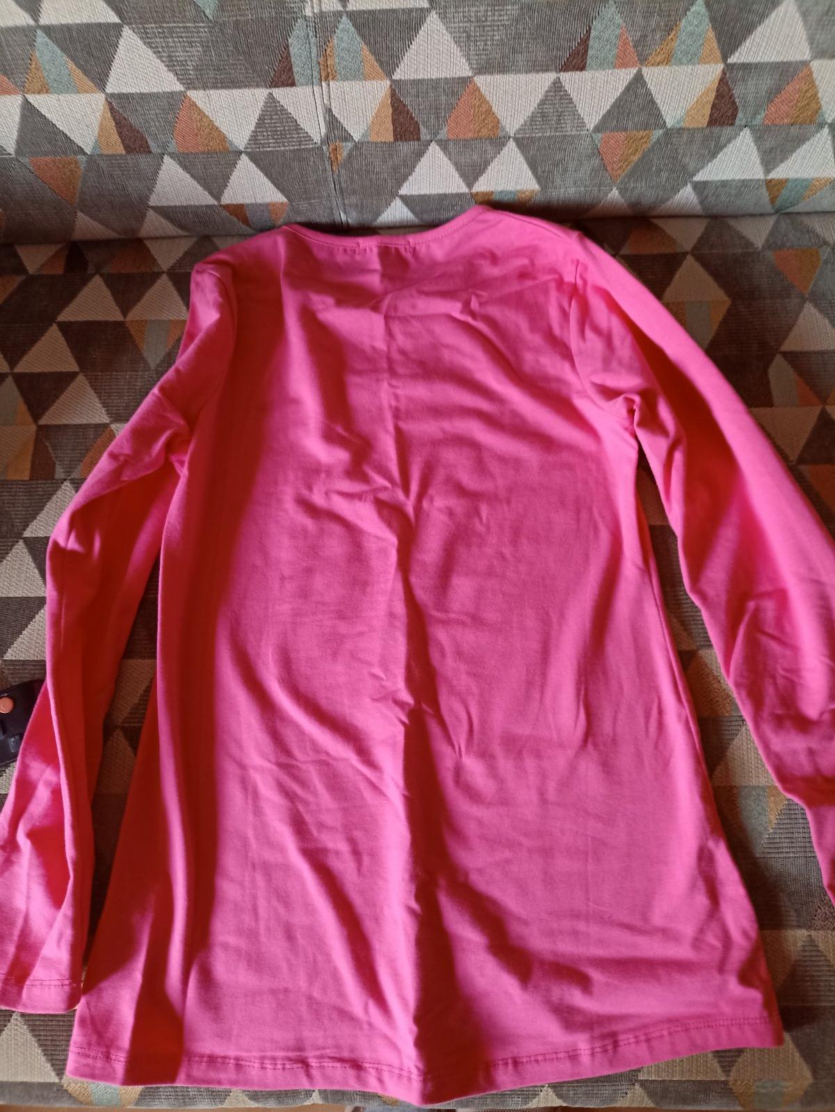 Predám dievčenské tričko dl,rukáv, predĺženého strihu, mierne do /A/, pekné k legínam, má peknú potlač , príjemný materiál, veľmi zachovalé, farba veľmi pekná sýto ružová., miery: dĺžka 60cm., pod pazuškami 36cm., rukáv od krku 59cm., od pleca 52cm., veľ.146/152, cena 8,-€ s poštovným