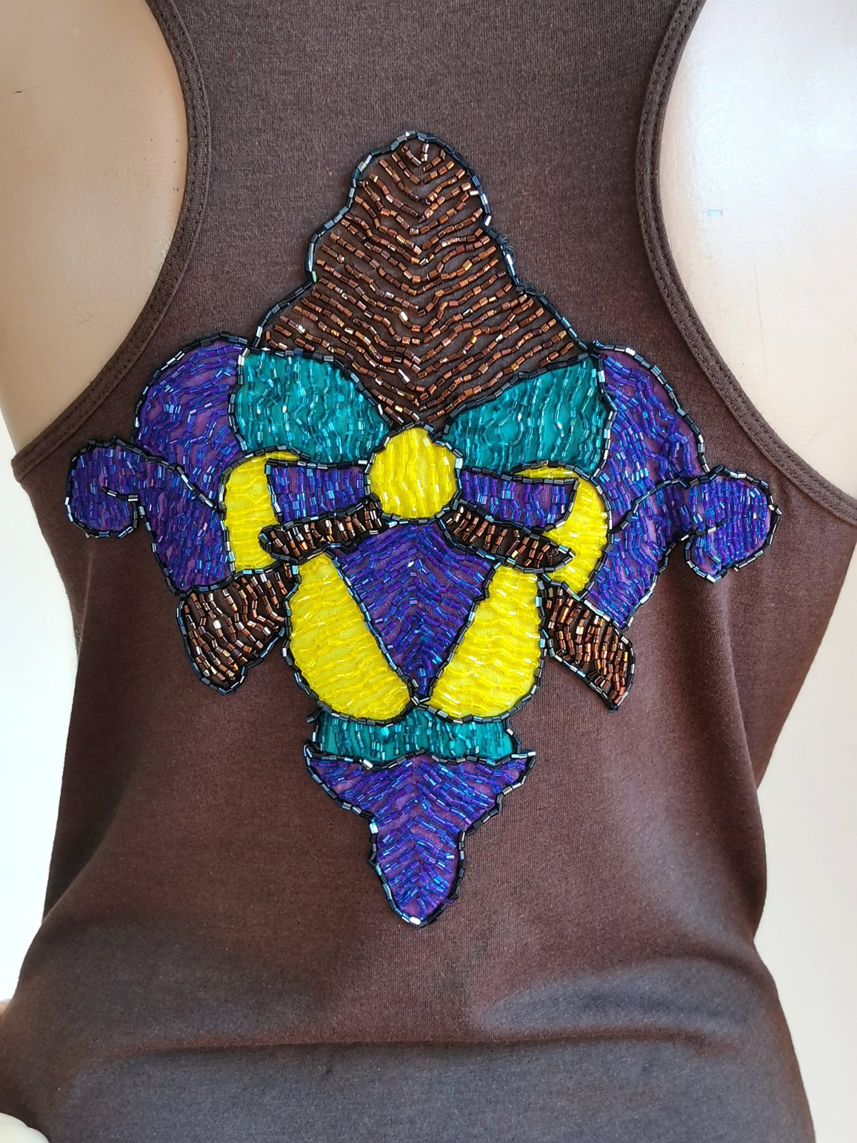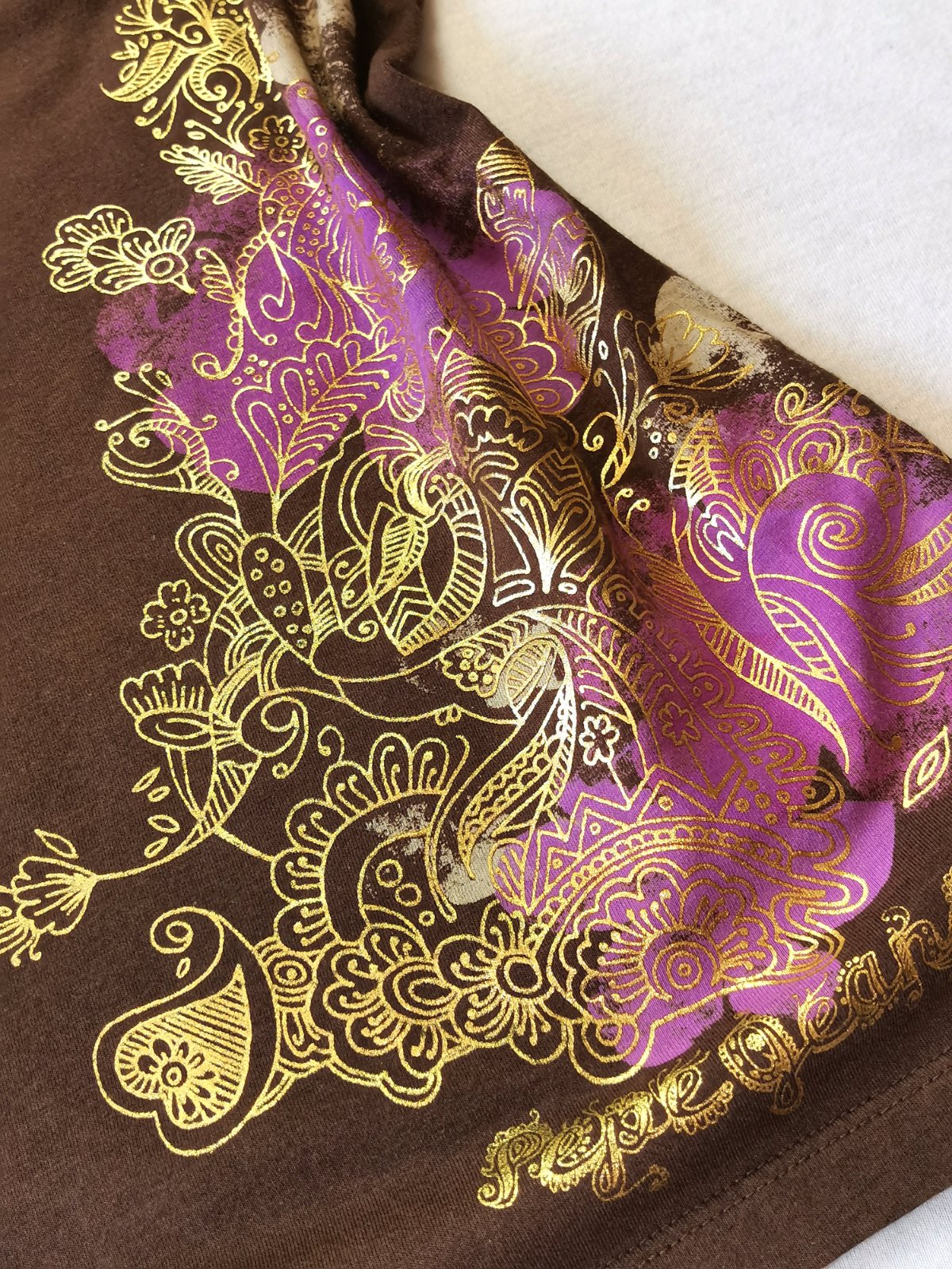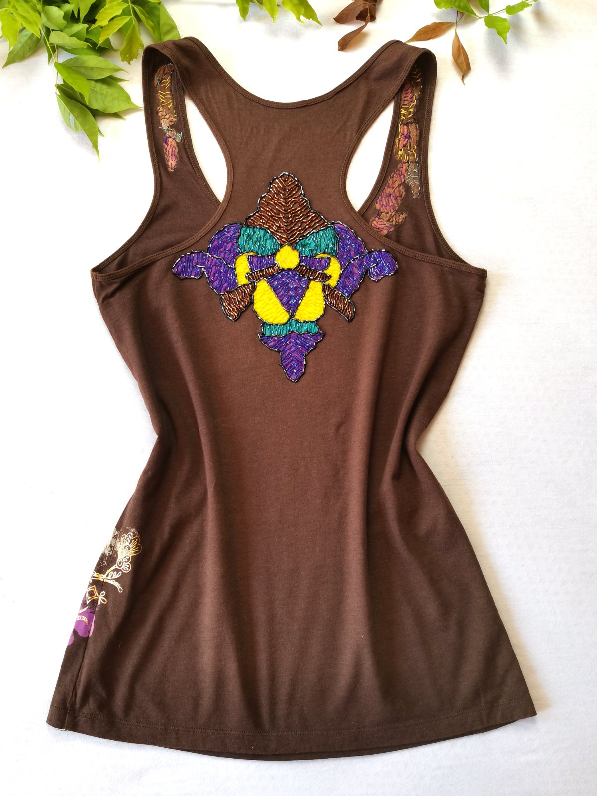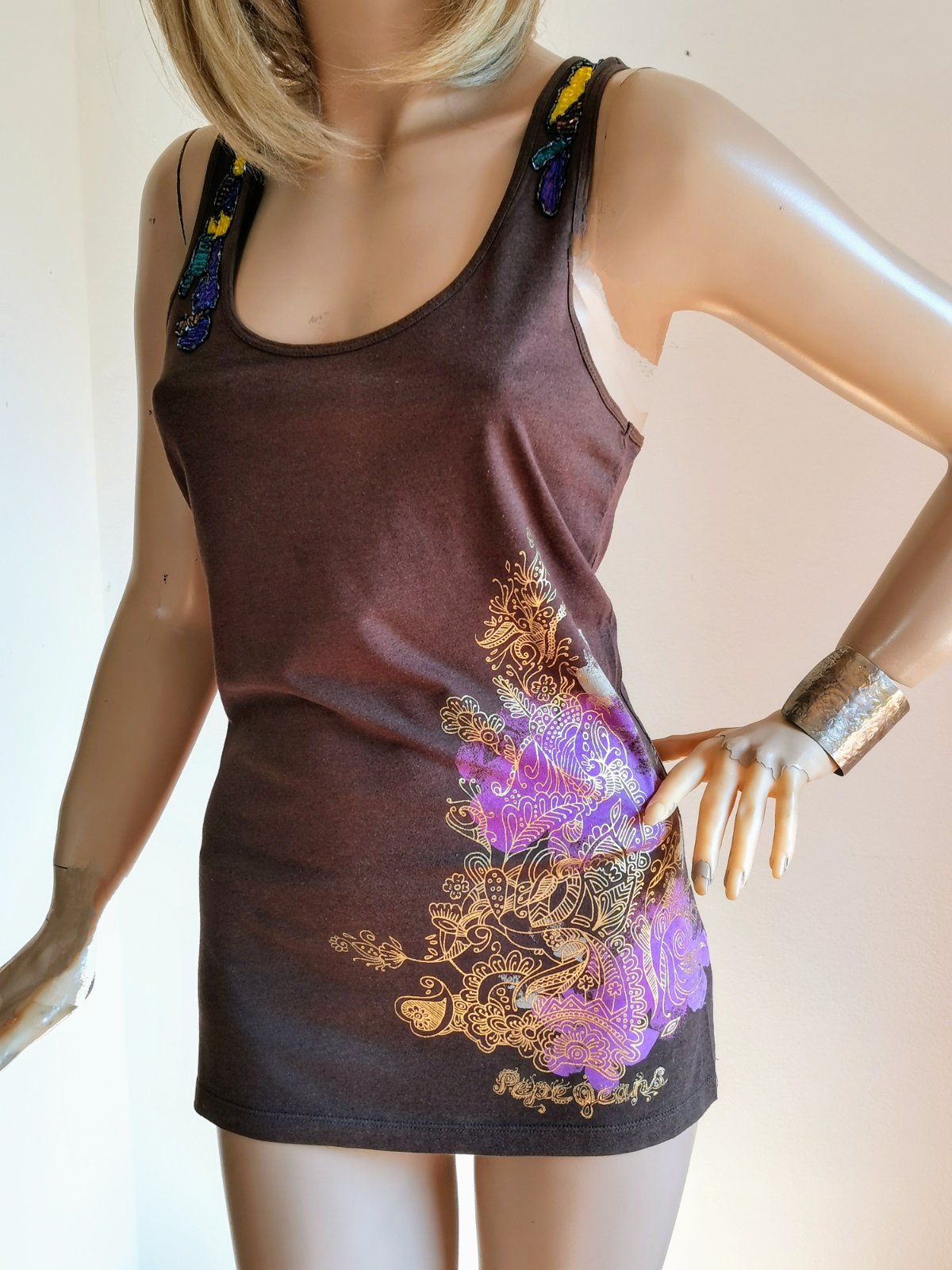 Na ramenách a chrbátiku má čarovnú výšivkou z korálikov. V predu veľký zlatý ornament.