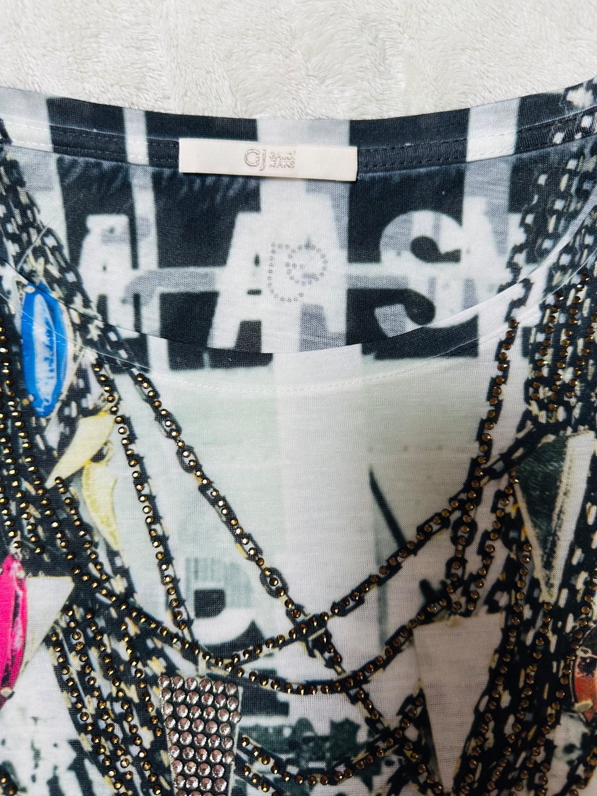 Predám nepoužité krásne tenké tričko zn. Gaudi Jeans originál s aplikáciou vpredu - kamienky…