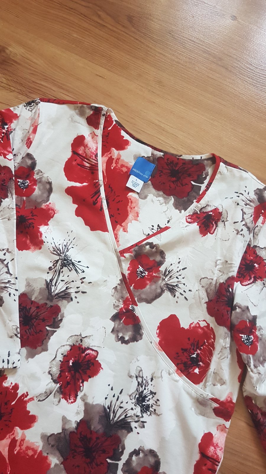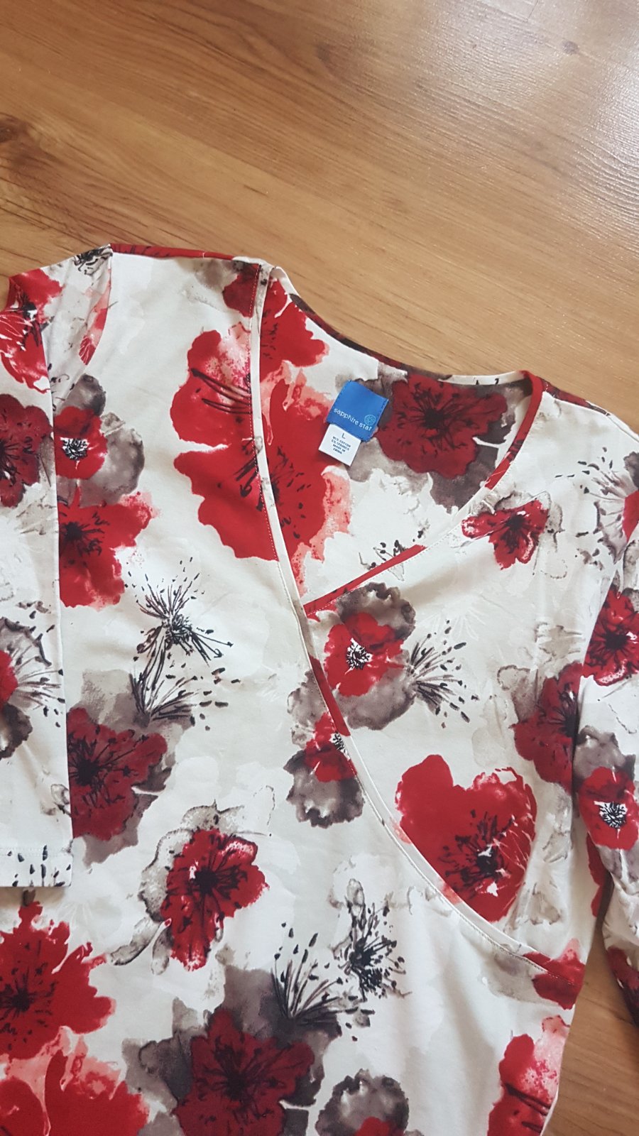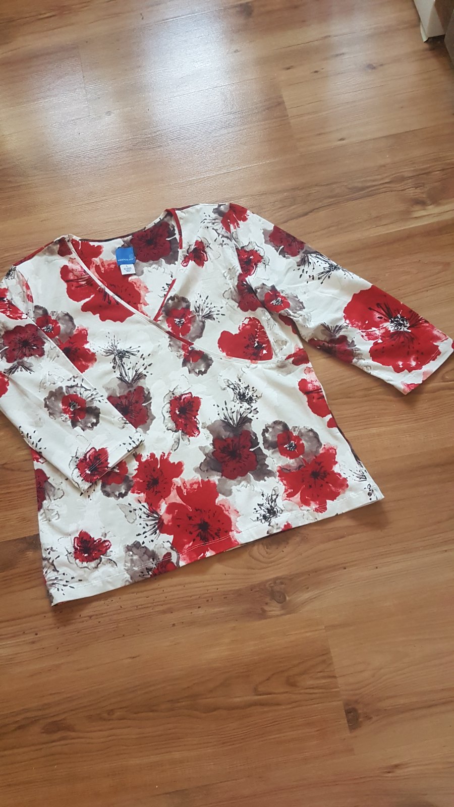 Krasne tričko/blúzka,hodi sa ku vsetkemu,makučka,mierne elastická.bol to darček,ani neviem ci vobec bola oblečená.kuk celý mój bazárik....rukáv aj s plecom je 58,5 cm,šírka pod pazuchou 54,v páse 50/elastické,v prípade potreby kúsok povolí,,dolu šírka 54,dlhé-62 cm.váha do pol kila