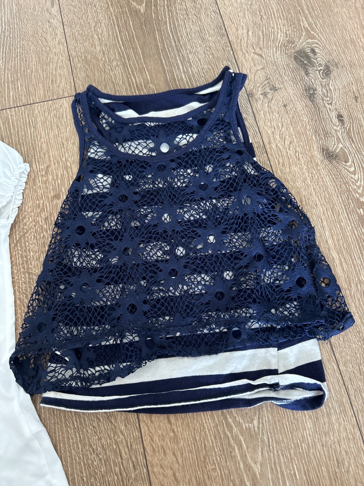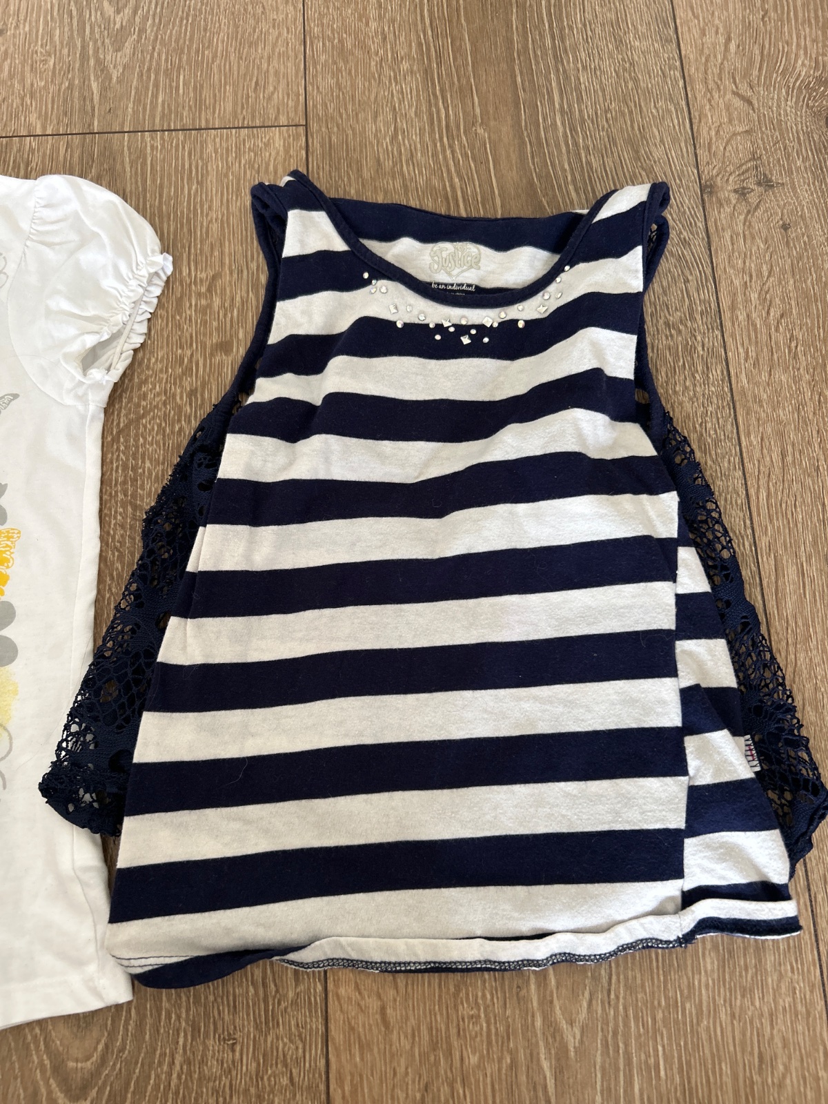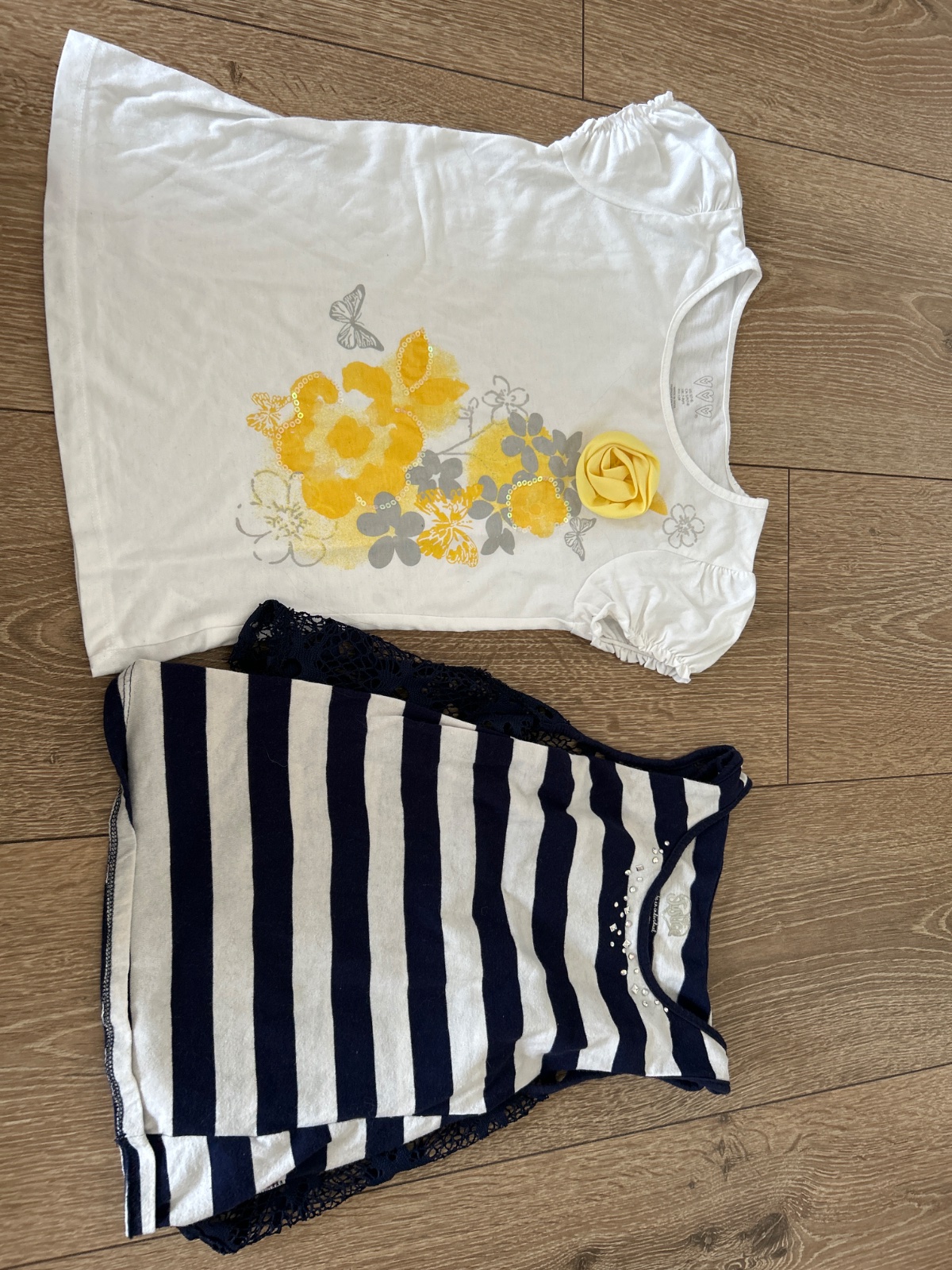 Predám tričko+tielko po jednom dieťati. Biele tričko- 122-128, 3.50€. Modro-biele tielko-128cm, 3.50€ v prípade kupé 2ks 6.00€
