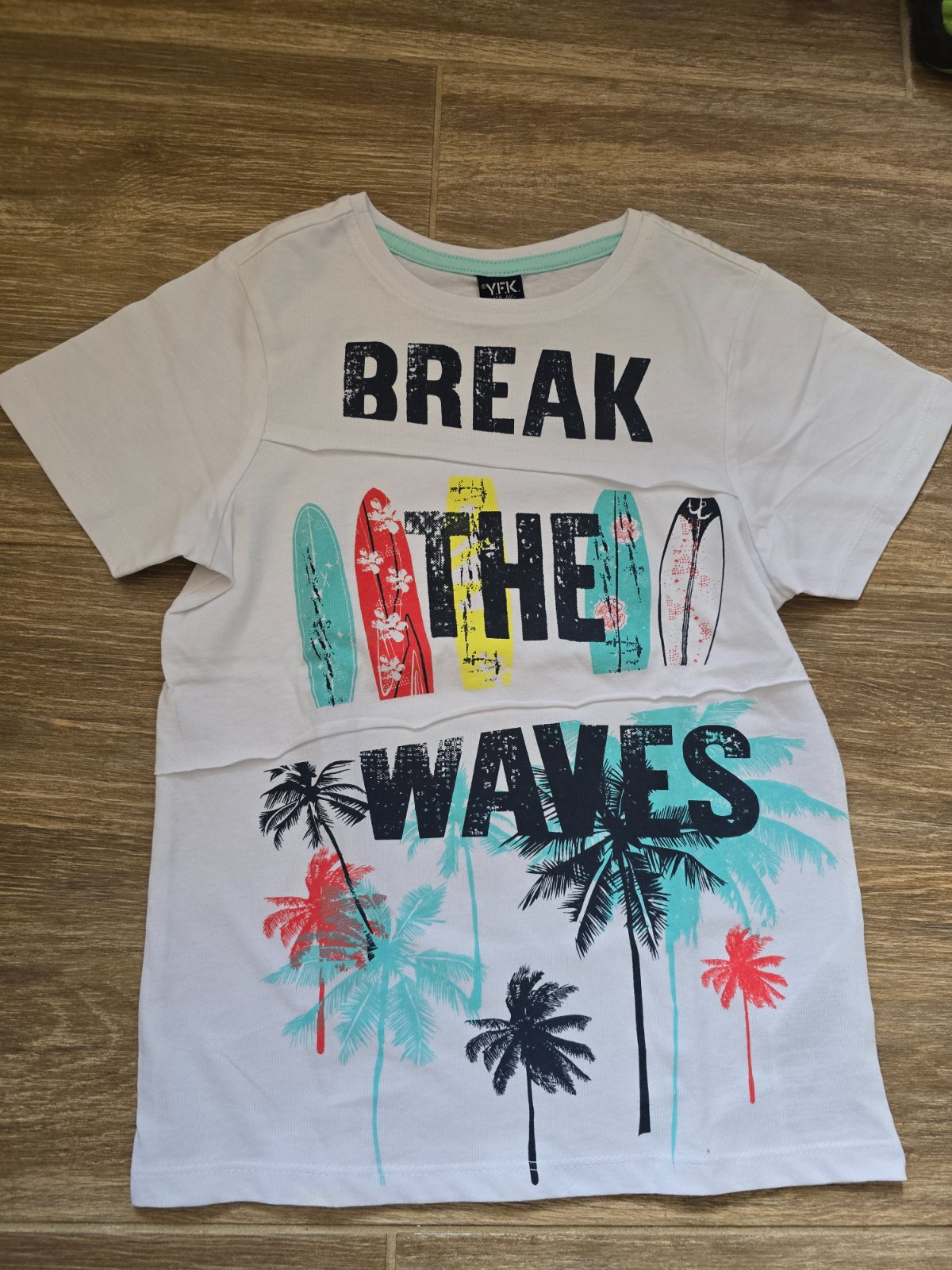 Predám chlapčenské tričko s krátkymi rukávmi zn. Coton. Veľkosť: 128 (7-8 rokov) - šírka pod pazuškami: 43 cm - šírka dole: 44 cm - celková dĺžka: 49 cm - dĺžka rukáva: 14 cm Cena: 2 € (+ poštovn...