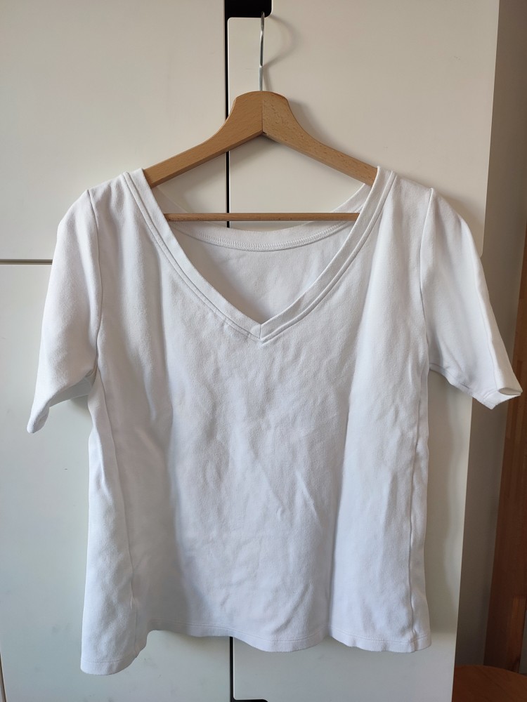nosený top, z hrubšej mäkkej bavlny. na chrbte výstrih do V. v peknom nosenom stave. veľkosť S ale sedí na M.