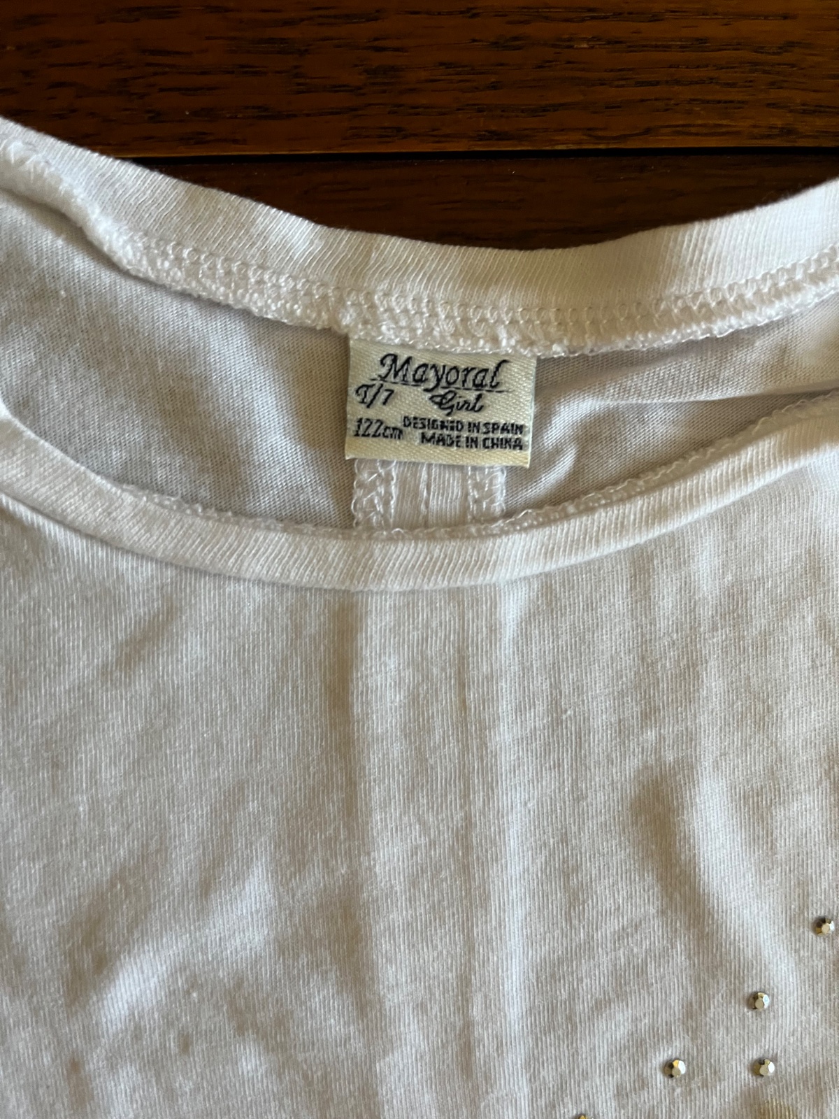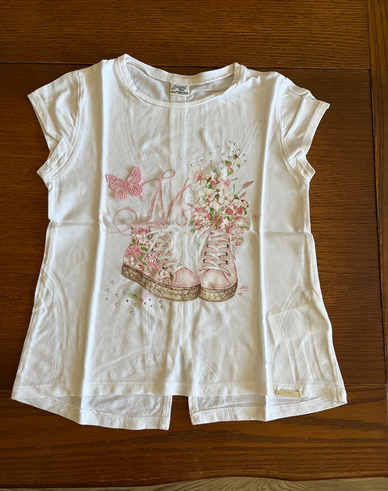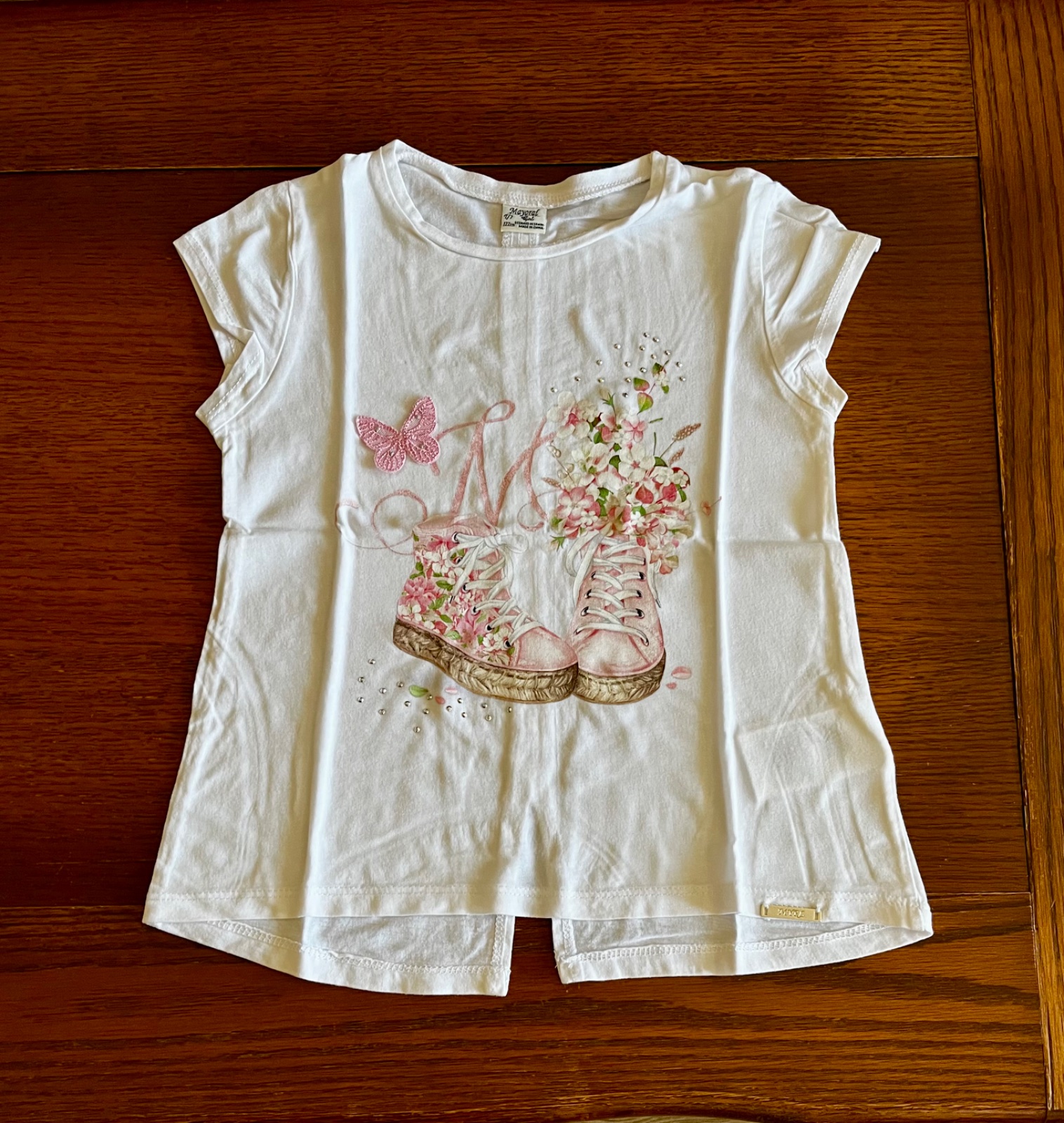 Naspodku kovová platnička značky Mayoral.