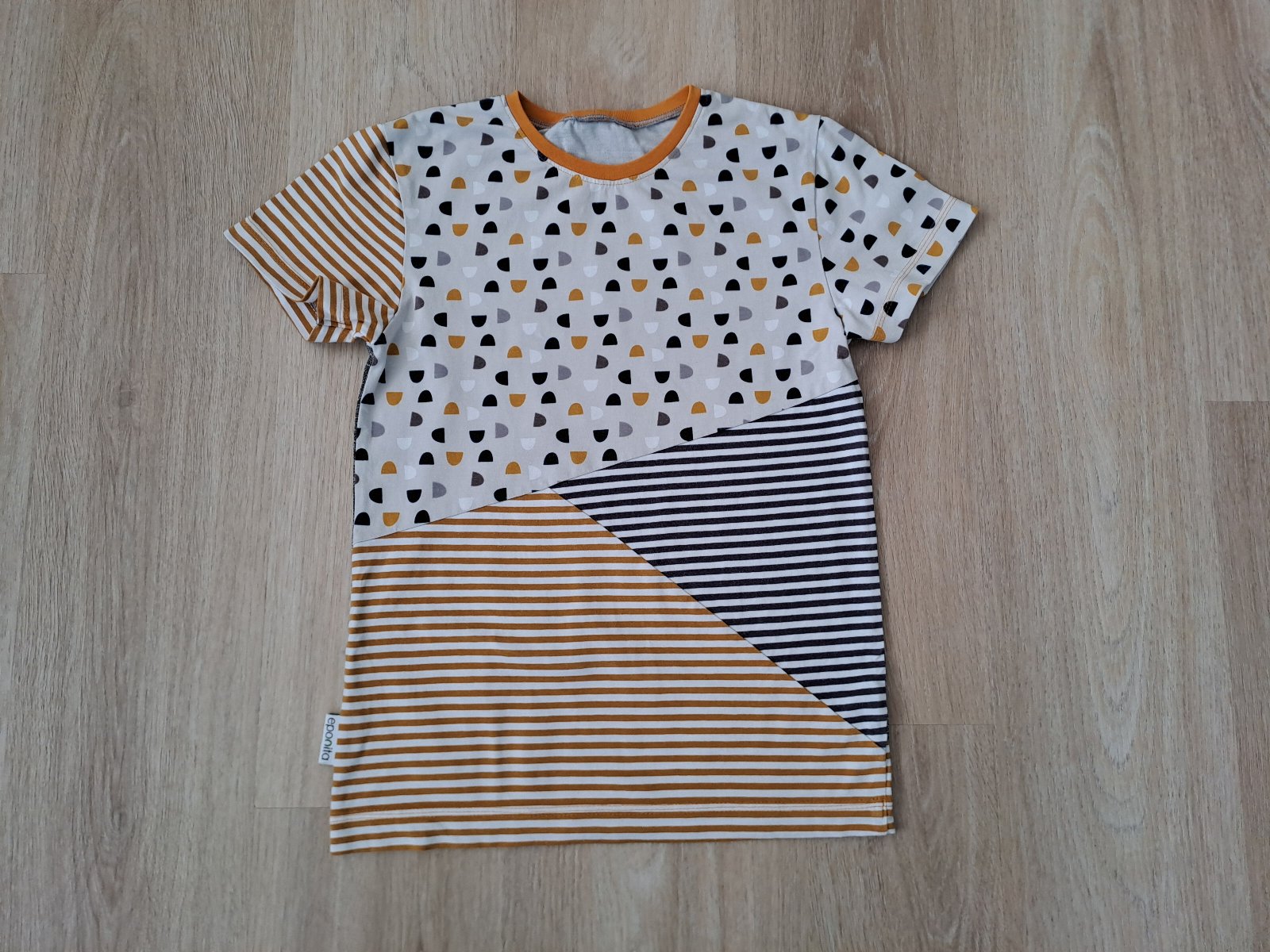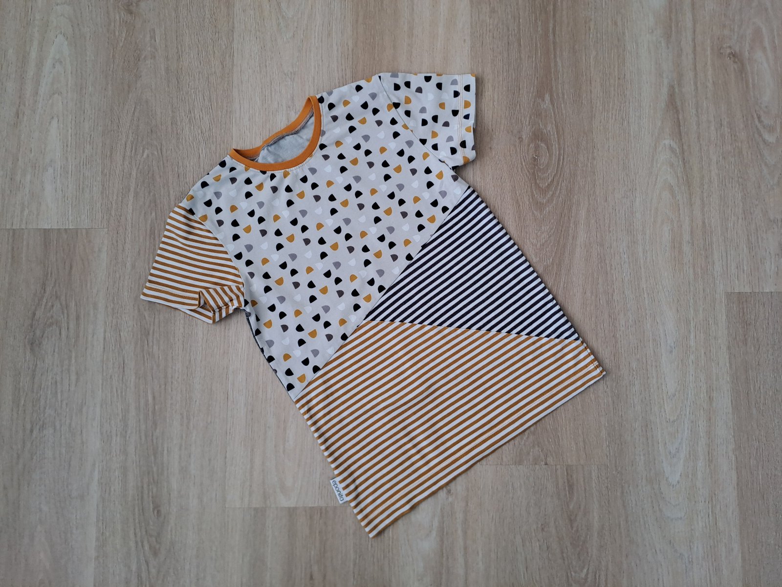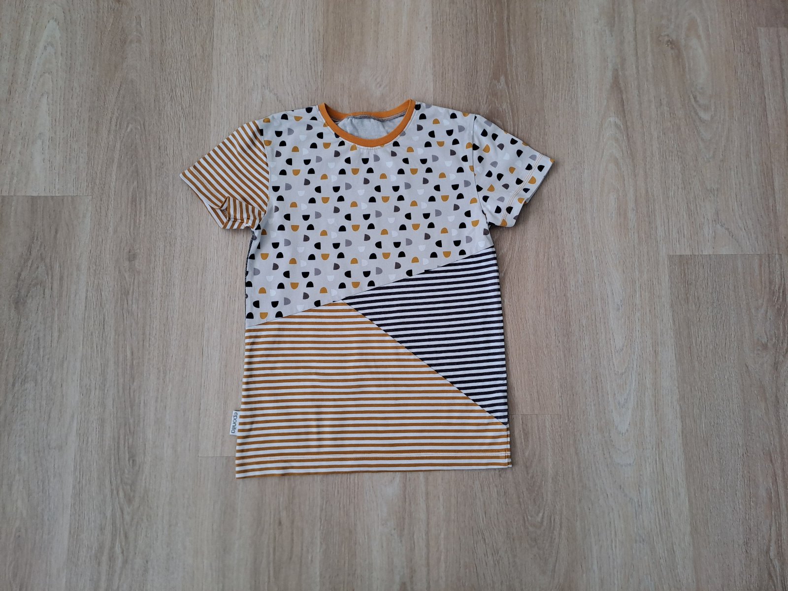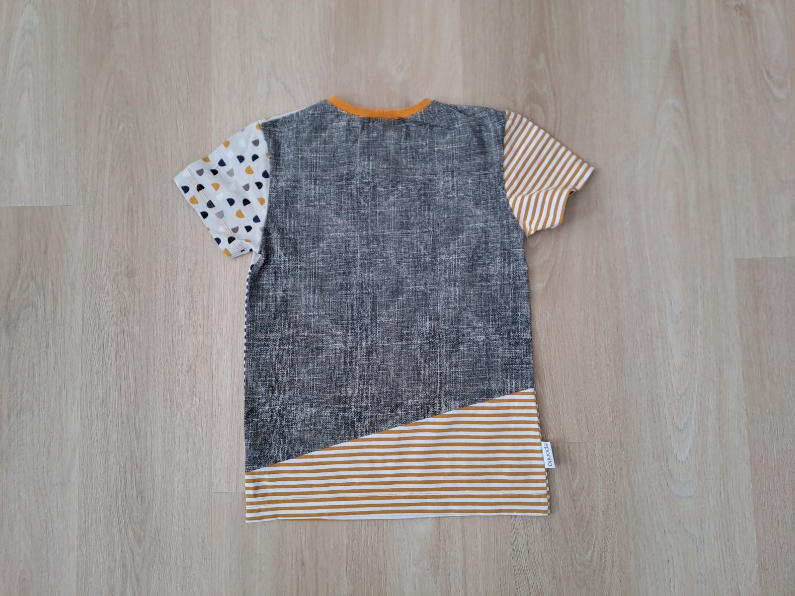 Predám tričko veľkosti 152, šila som ho ja sama na profi strojoch z kvalitného bavlneného úpletu s elastanom. Je v super stave, nemá žiadne fľaky, farby sú horčicová, tmavomodrá a odtiene sivej.