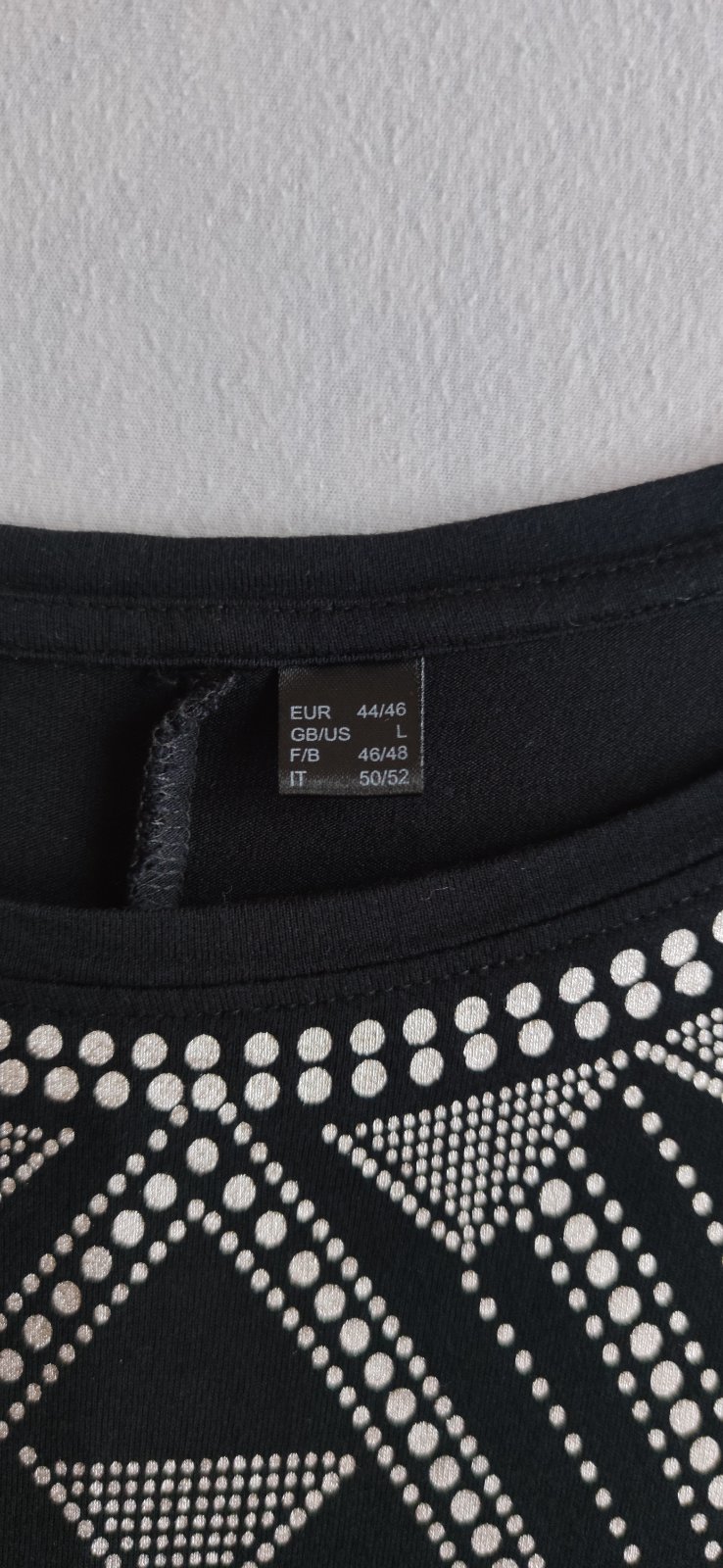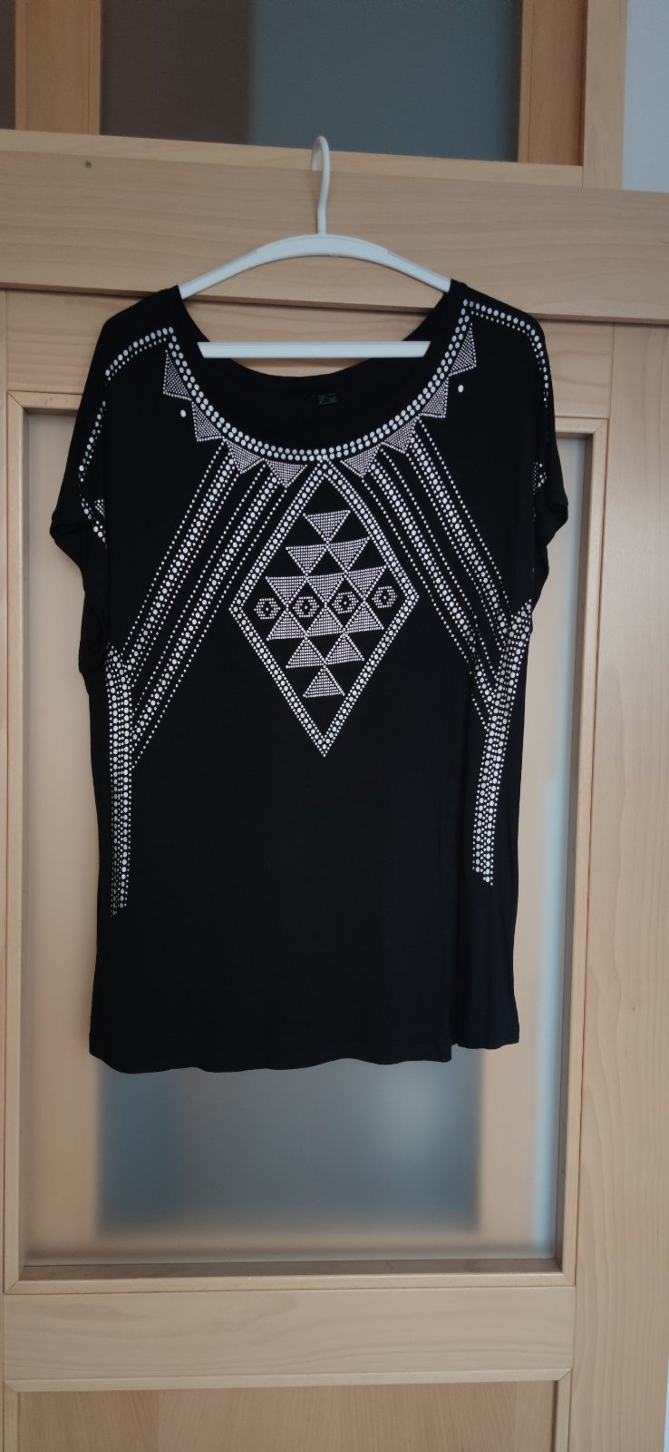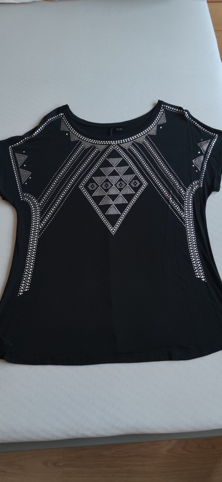 Predám krásne tričko, veľkosť 44/46. Je minimálne nosené. Z príjemného materiálu. Farba čierna, strieborná.