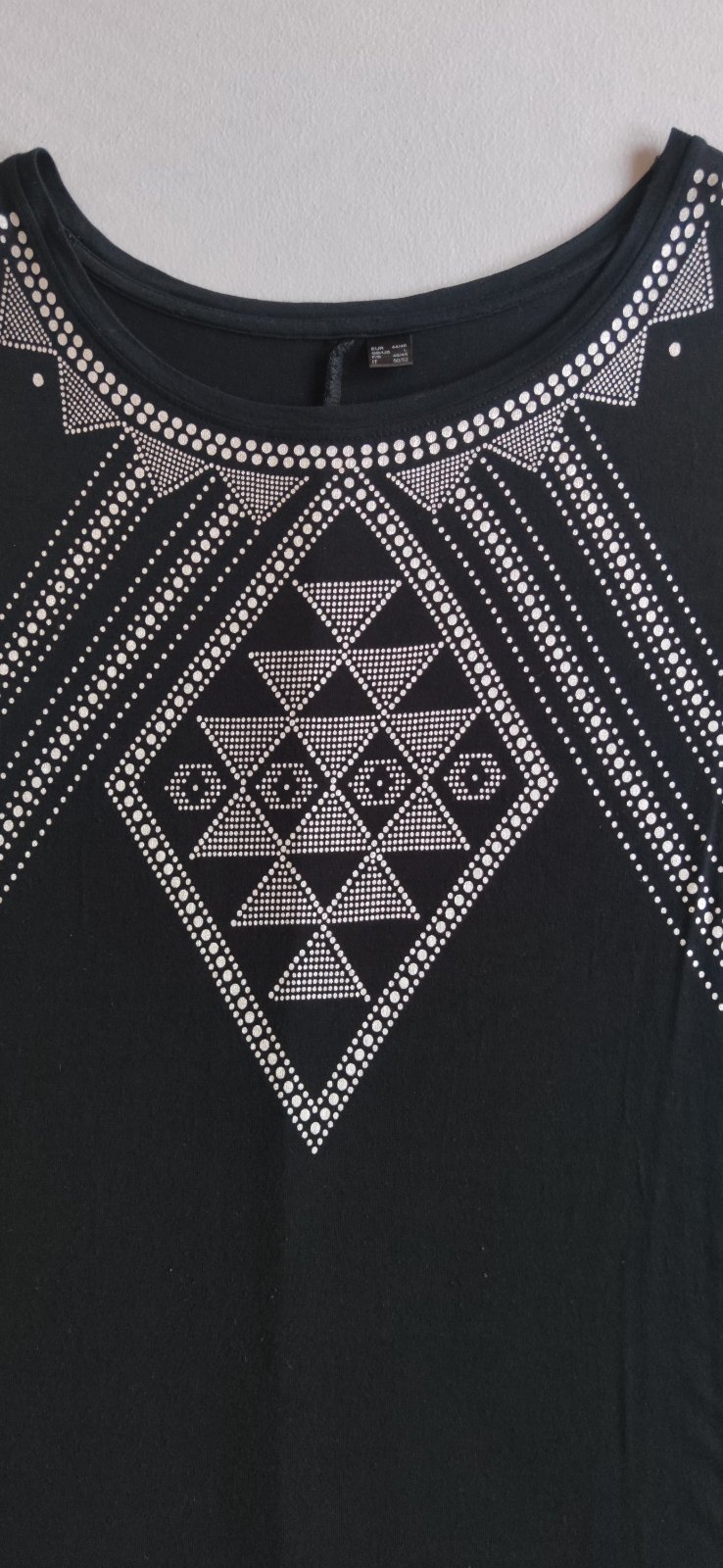 Voľné dlhé tričko bavlna, elastan veľ 44, náušnička s kamienkami , pekne ukáže do saka Presné miery: Dĺžka 75 cm, pod pazuchou 59 cm TOP stav