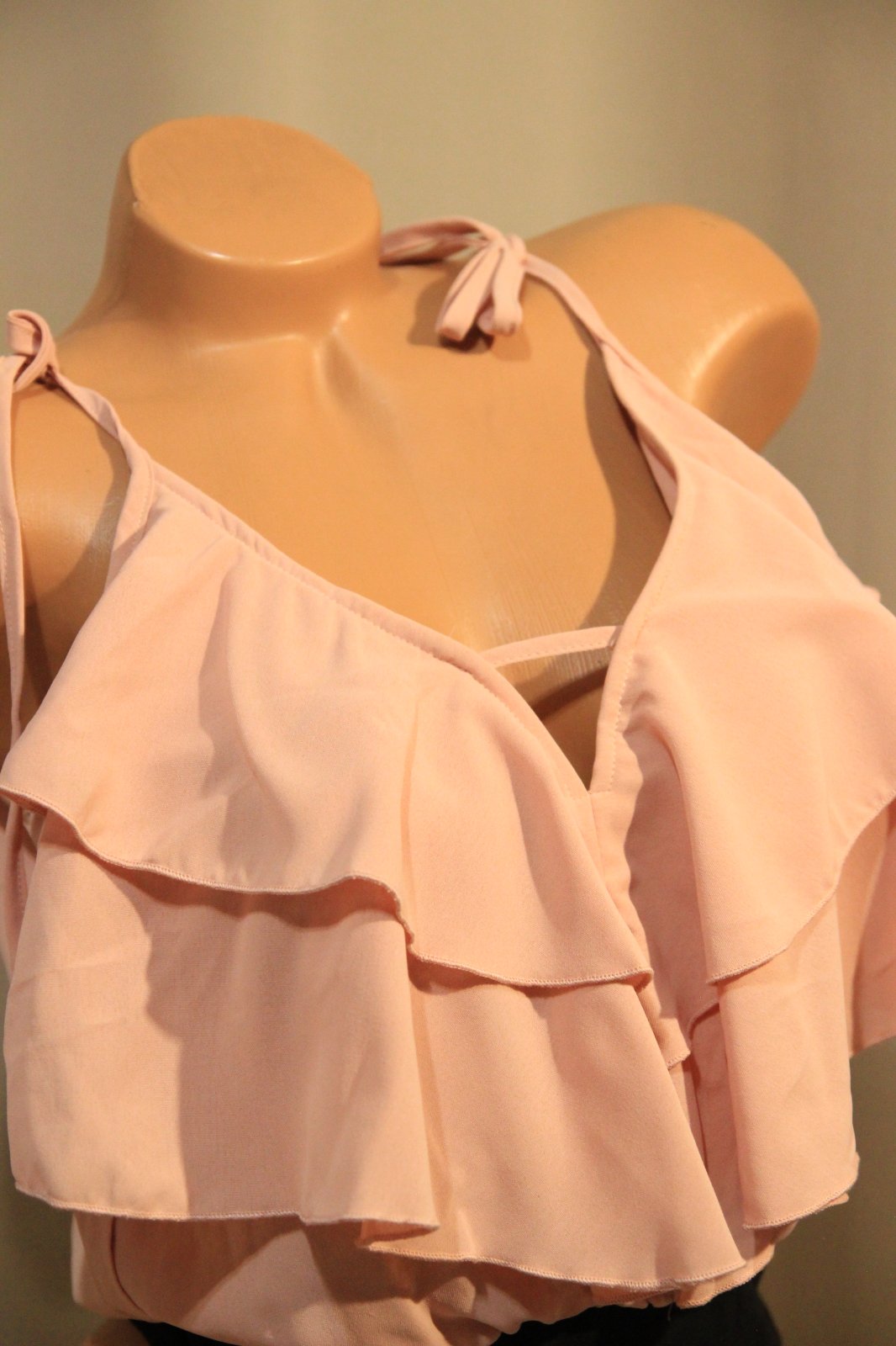 Bledo ružový body elegantný body top s volánmi, veľkosť XS/S.