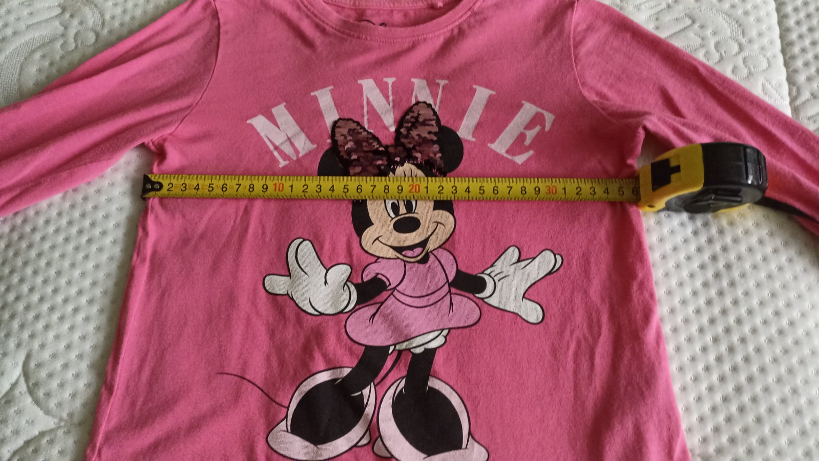 Tričko s Minie, veľmi dobrý stav, moooozno trošku už jemne prasknutá Minie ale nevidno to len úplne zblízka, veľkosť píše 122, značka Disney, cena 3€ plus poštovné