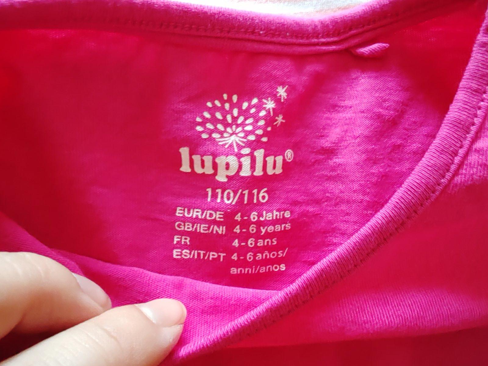 Tričká s dlhým rukávom, zn. Lupilu, veľkosť 110/116, cena spolu za 3 kusy.