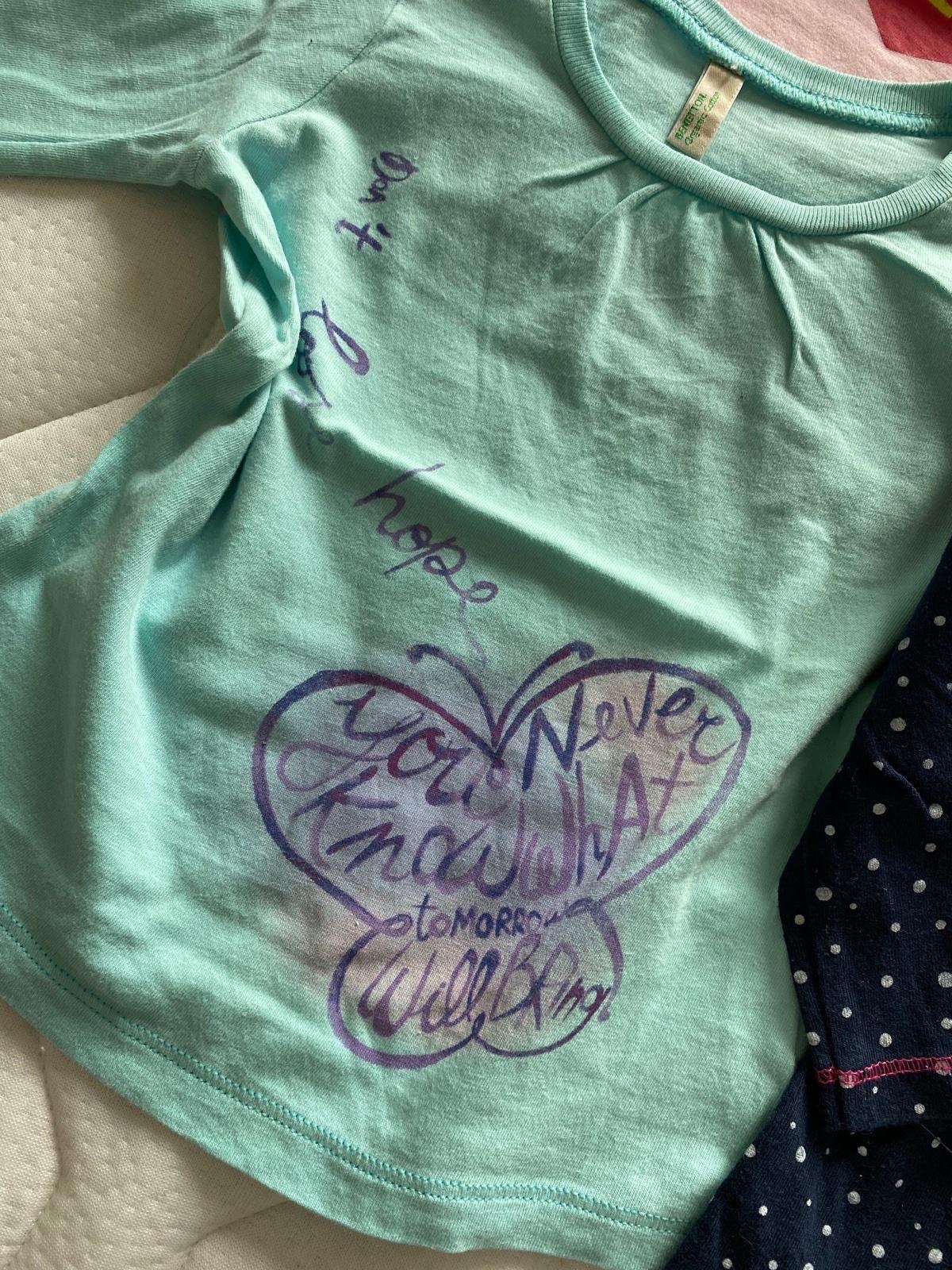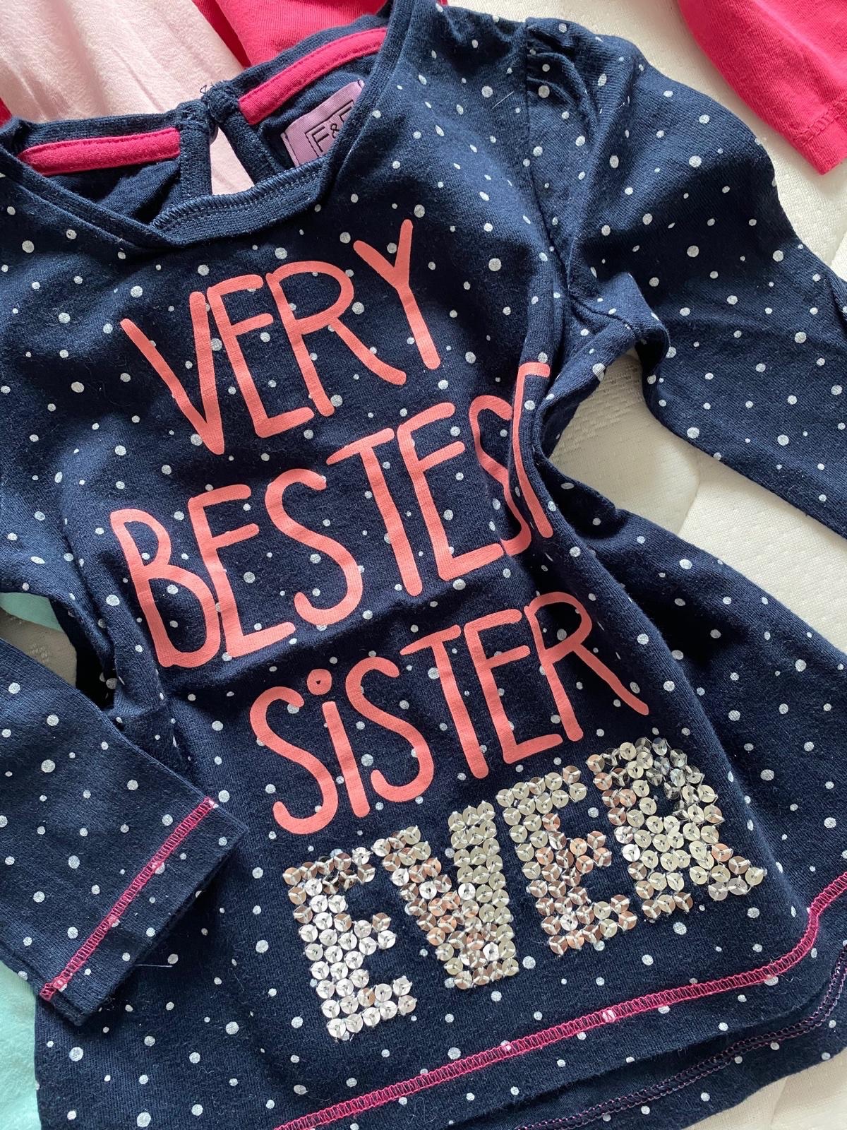 Veľmi dobrý stav! Dievčenské tričko s dlhým rukávom a potlačou, zapínanie na ramene na dve cvoky, elastické, materiál 100%bavlna. ROZMERY: dĺžka: 32cm, od pazuchy dĺžka dole: 20cm, dĺžka rukáv od ...