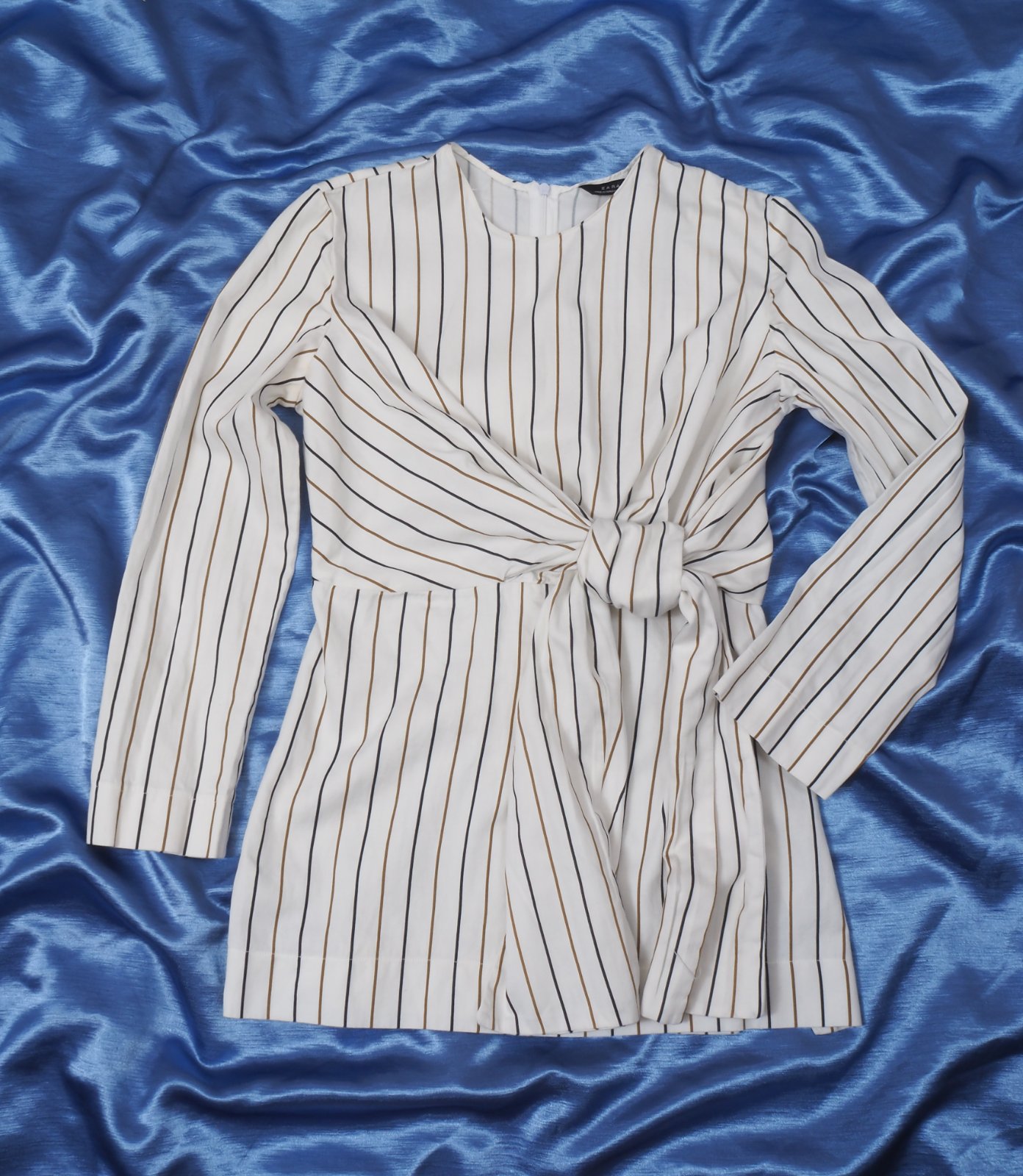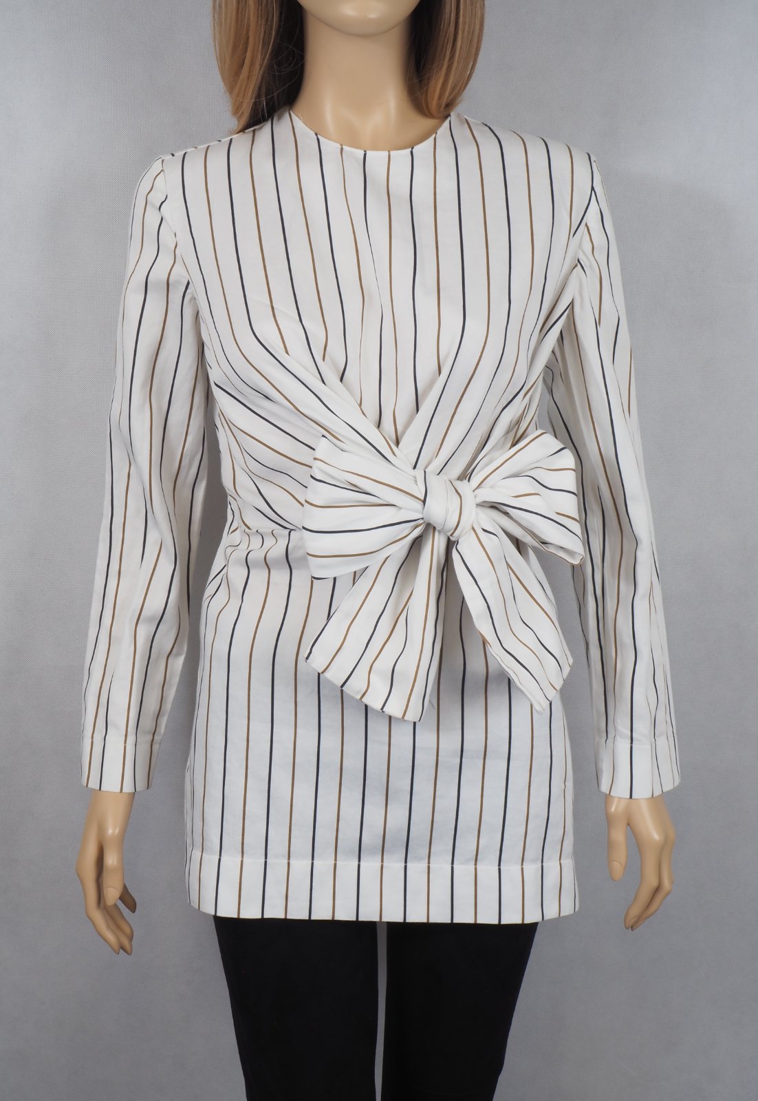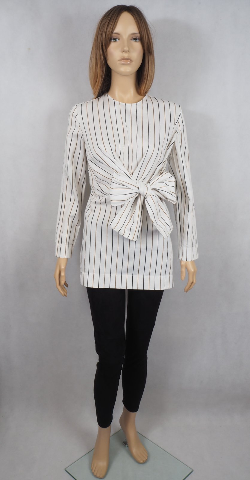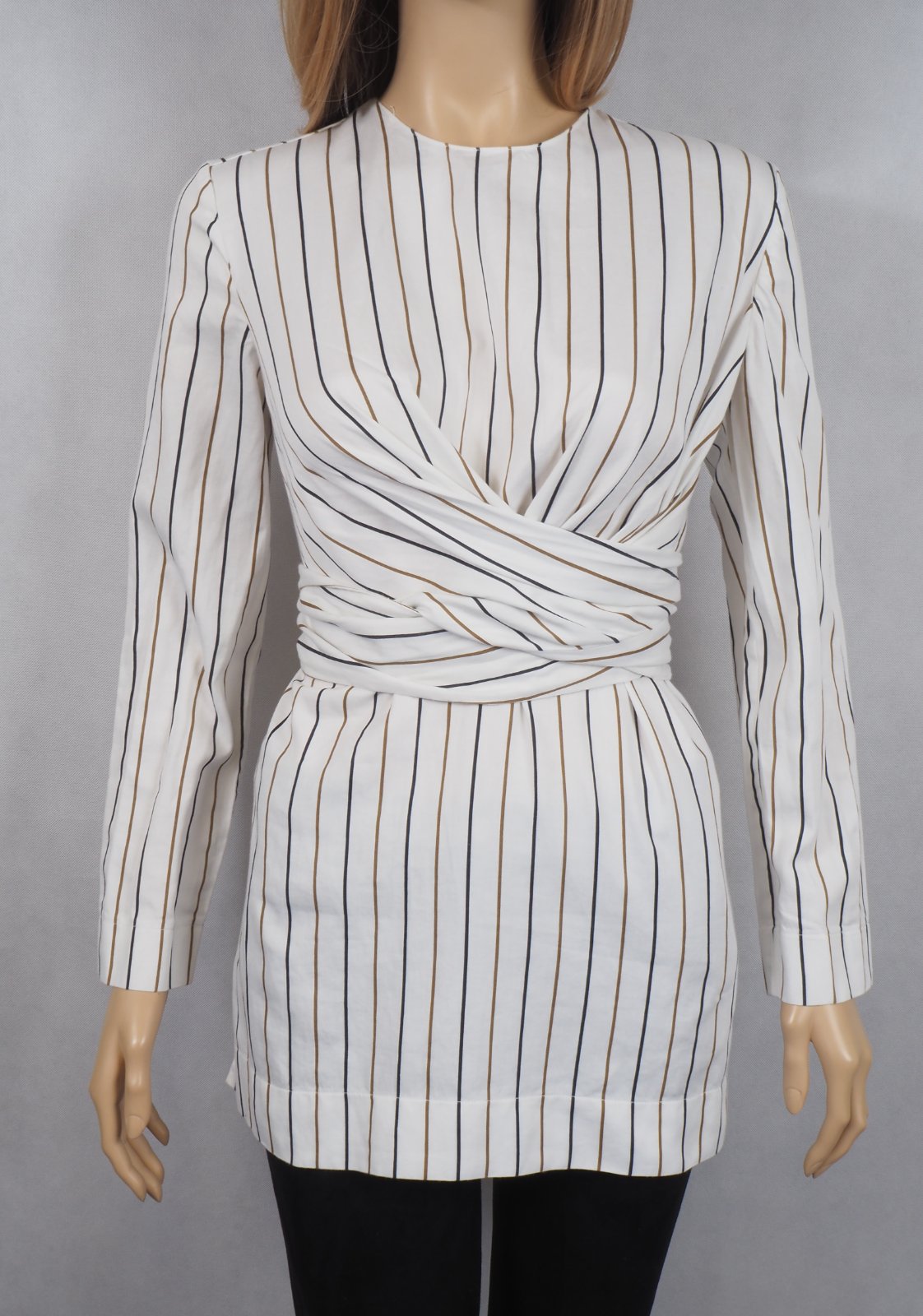 Kvalitná biela tunika s čiernym a hnedým pásikom, v páse uväzovanie, bočné rozparky, 100% bavlna, super stav.