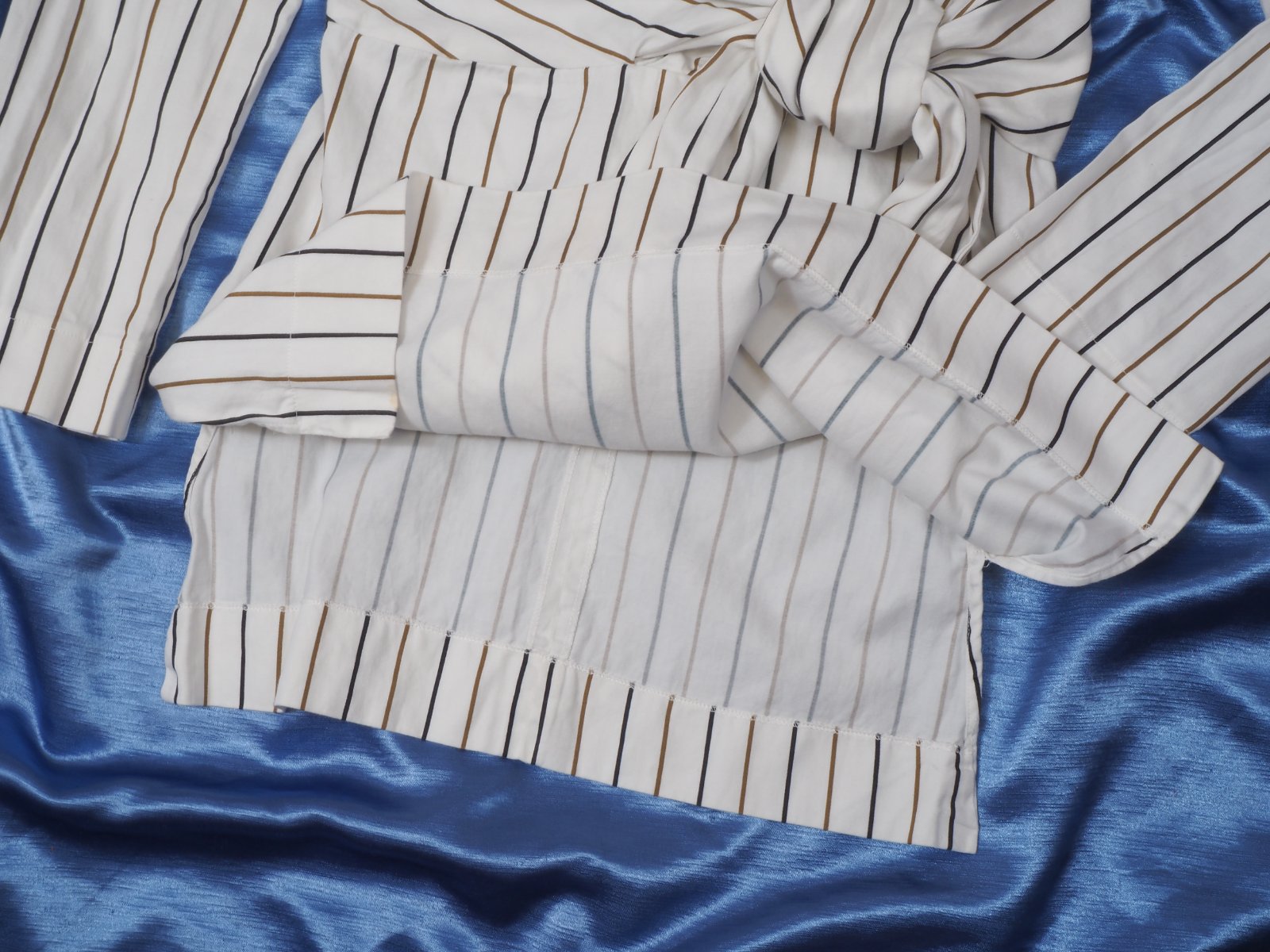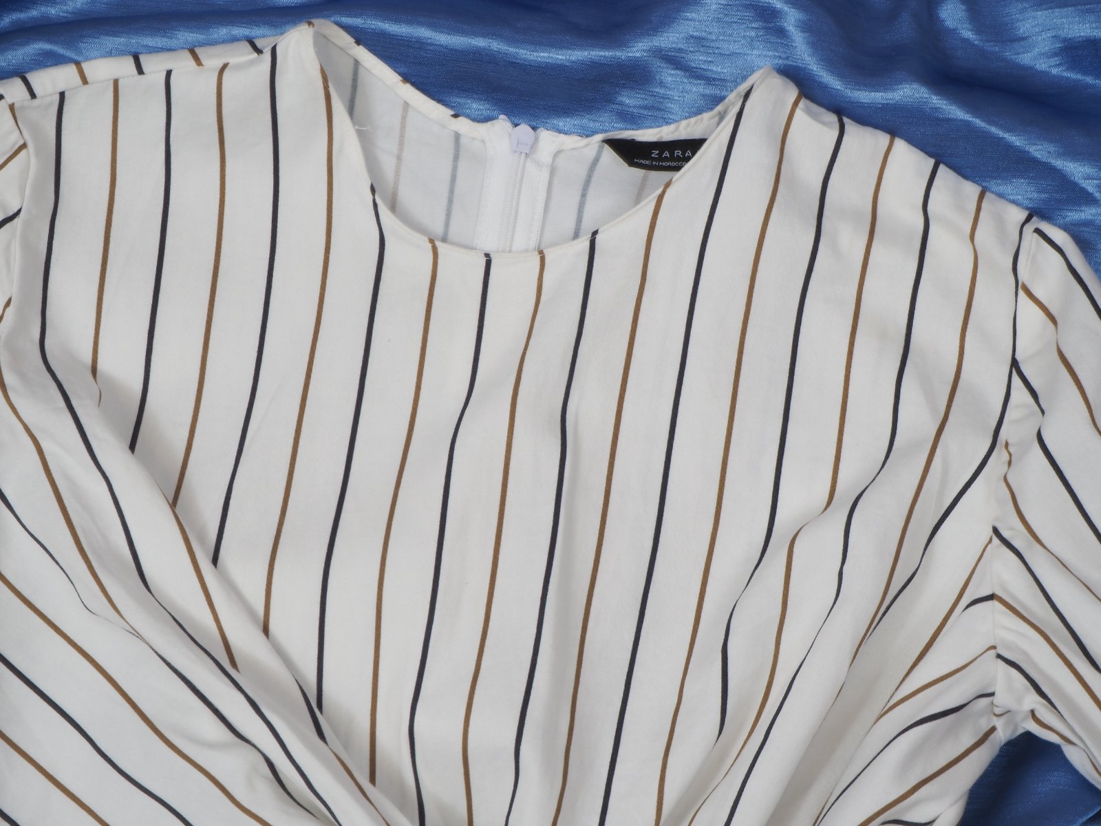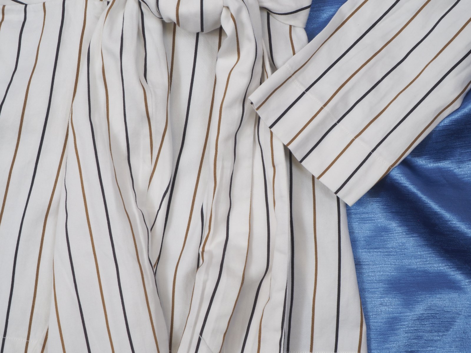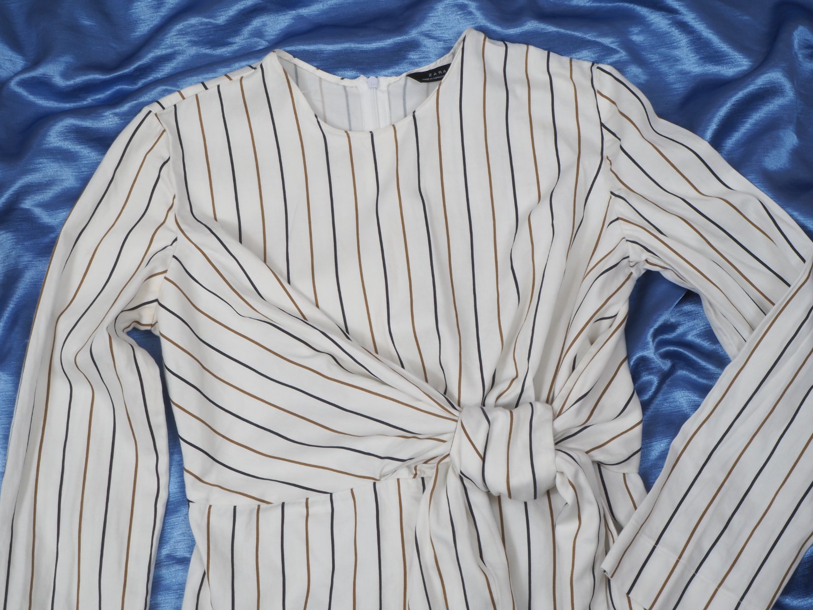 Kvalitná biela tunika s čiernym a hnedým pásikom, v páse uväzovanie, bočné rozparky, 100% bavlna, super stav.