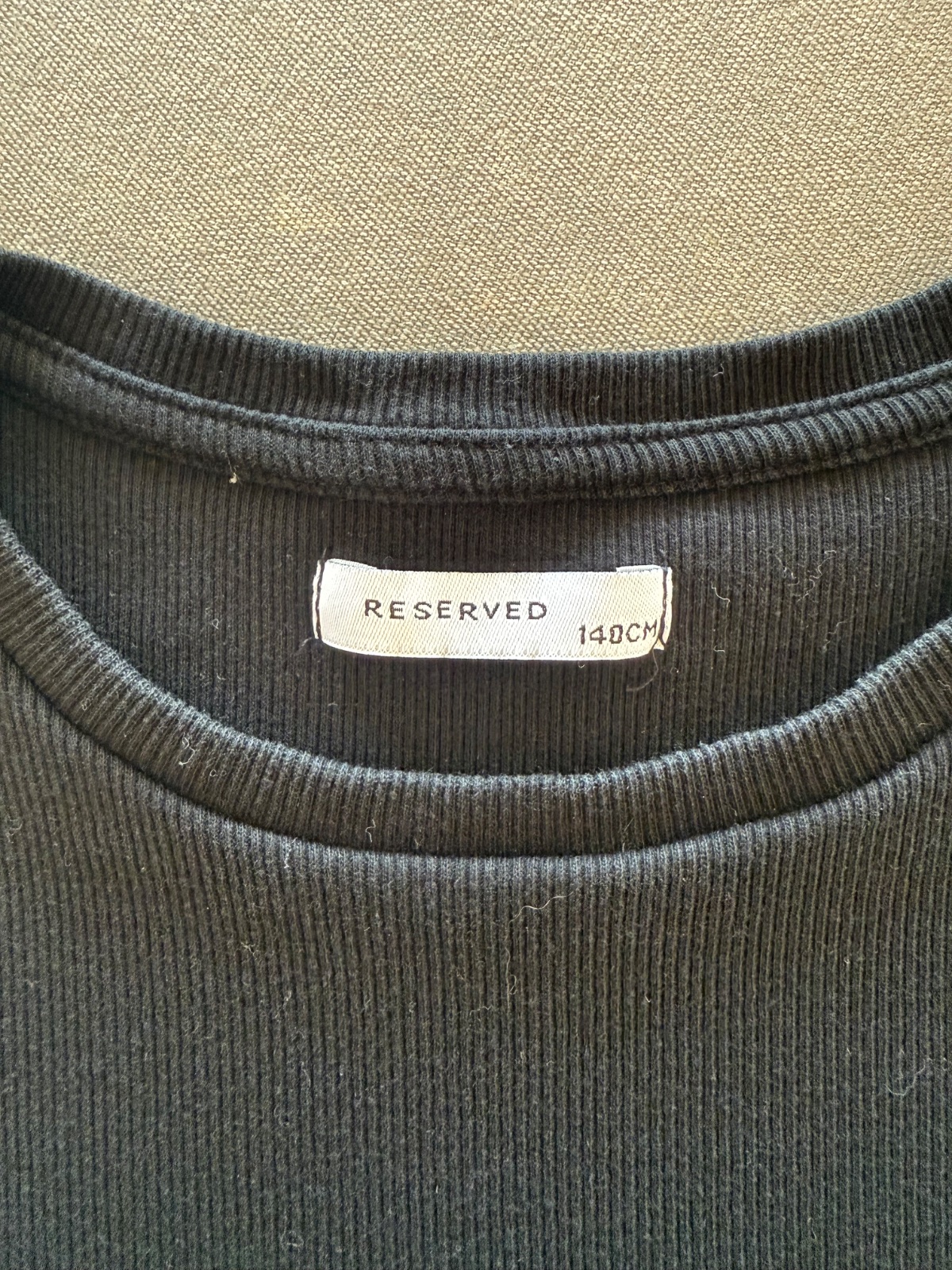 Nátelník čierny Reserved, veľkosť 140. Ale trosku sa zbehol, takze tipujem tak 134. Má krásnu sýtu čiernu farbu, na foto to skresľuje. Celková dĺžka 45cm. Dĺžka rukaviku 49cm. Sirka cez hrudnik 34cm.