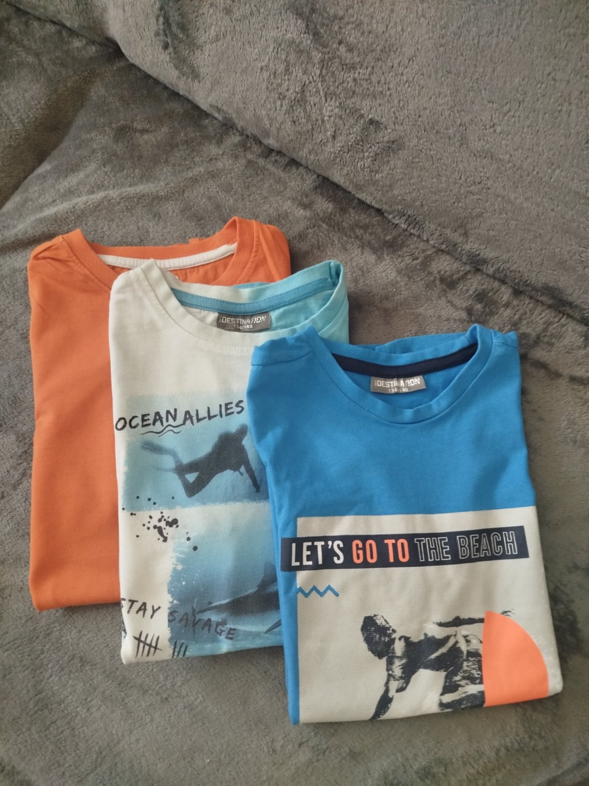 Nosené, horný rad 140/146, spodné dva rady 134/140 bez vážnejších poškodení, okrem toho, ze nedržia tvar. Bledo tyrkysove dam zadarmo, tam treba trošku zašiť pod pazuchou. Tmavo tyrk. uvedene 128, ...