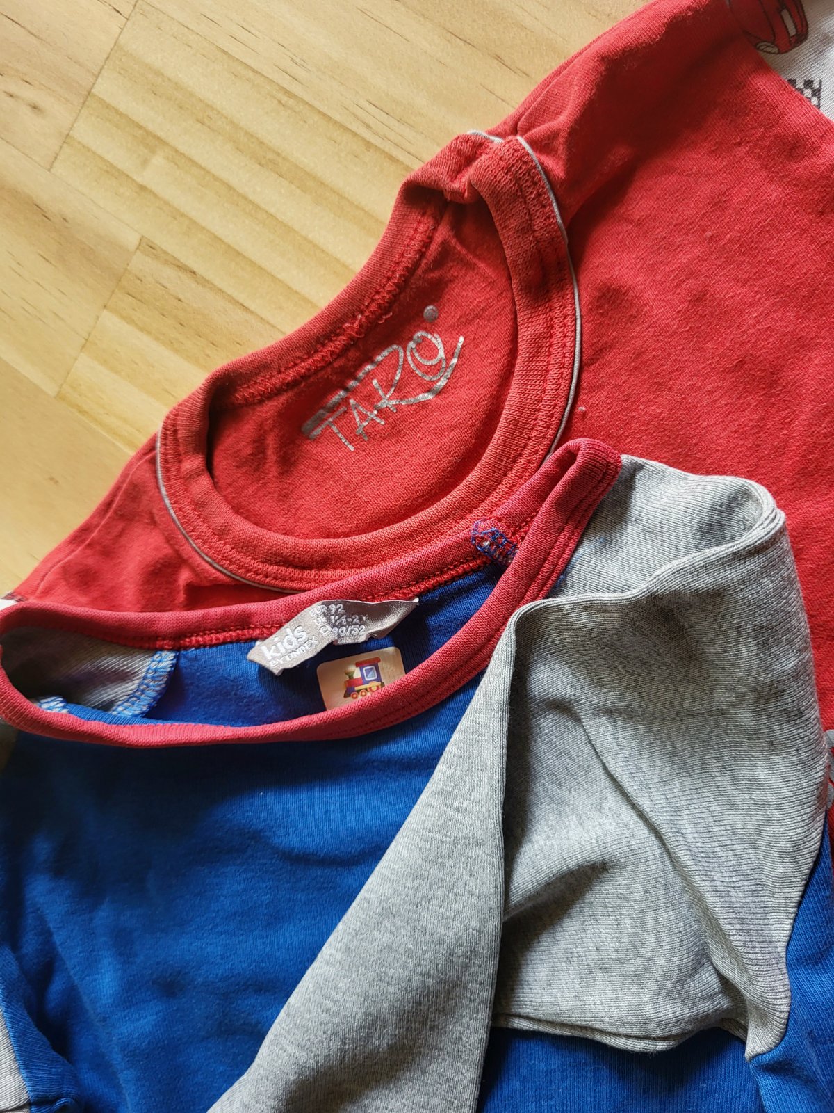 Farby v skutočnosti tlmenejšie ako na fotkách, tričko Lindex je s elastanom, bez poškodenia, tričko Taro s autíčkami má mierne žmolky, poštovné doporučene 3€