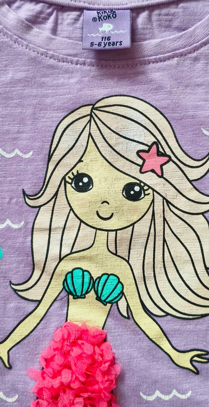 Používané predĺžené tričko alebo mini šaty vo veľkosti 116. Krásna potlač, bez poškodení, bez žmolkov, mäkký materiál. Cena 1 € plus pošta alebo osobný odber.