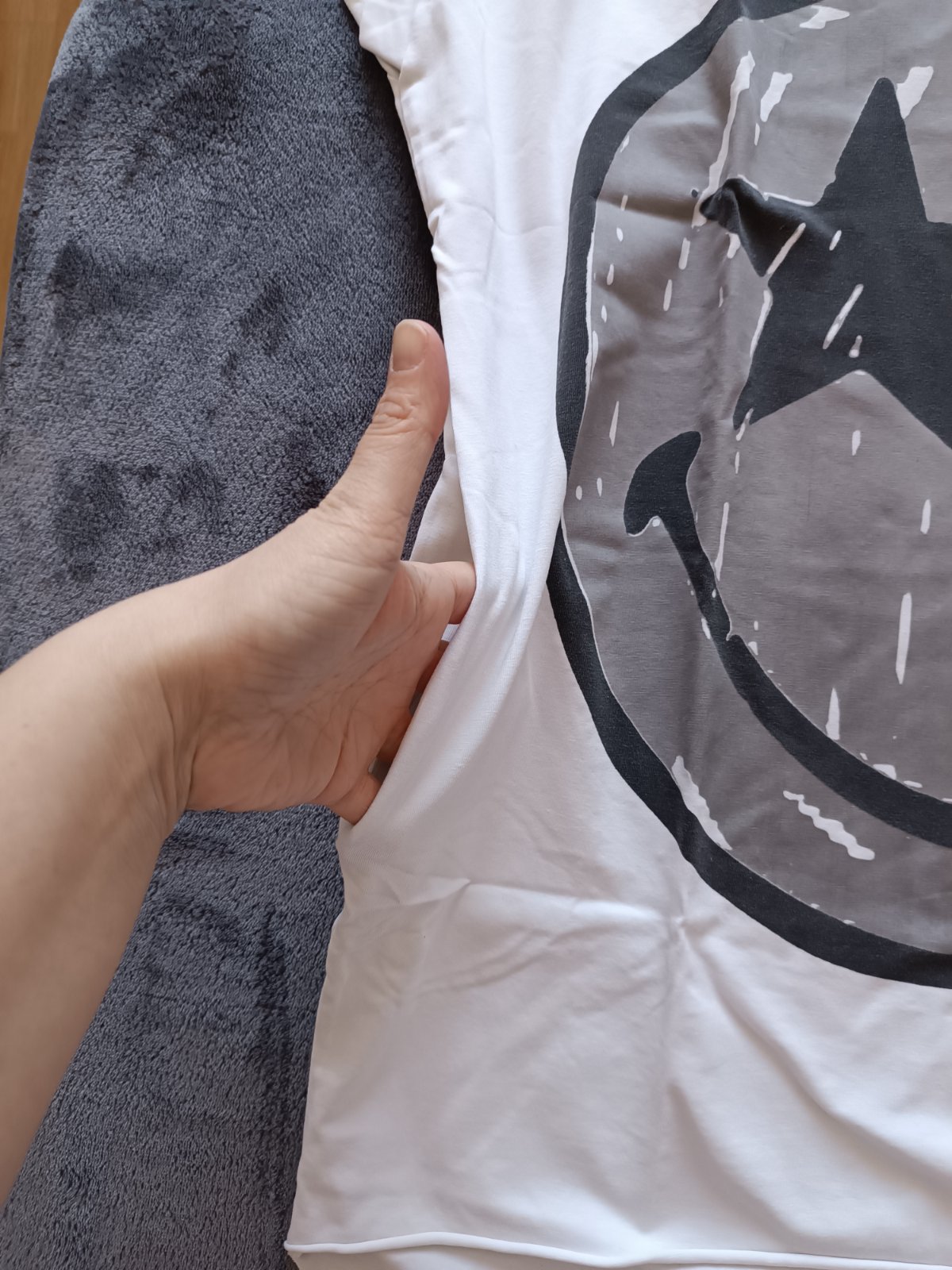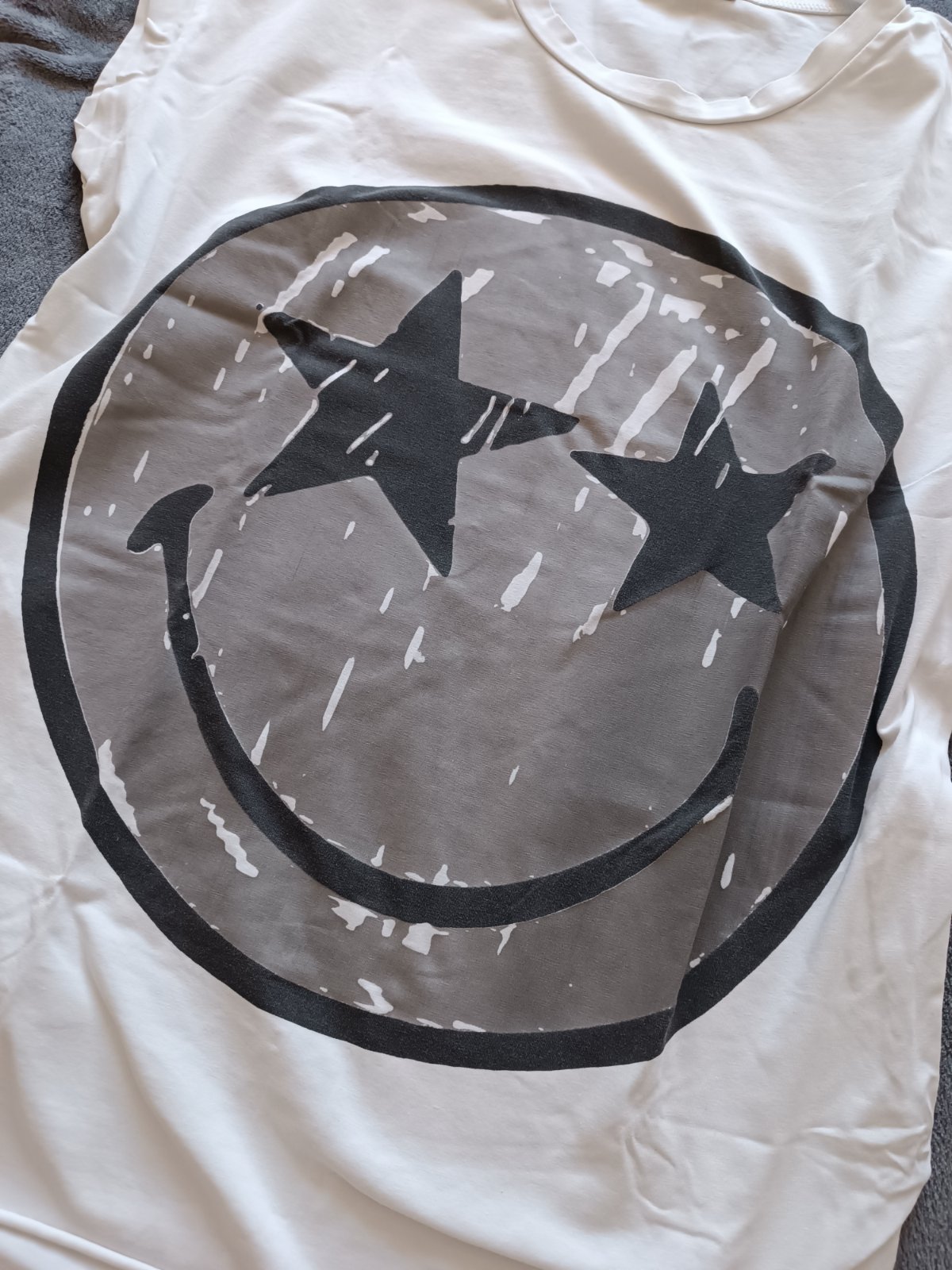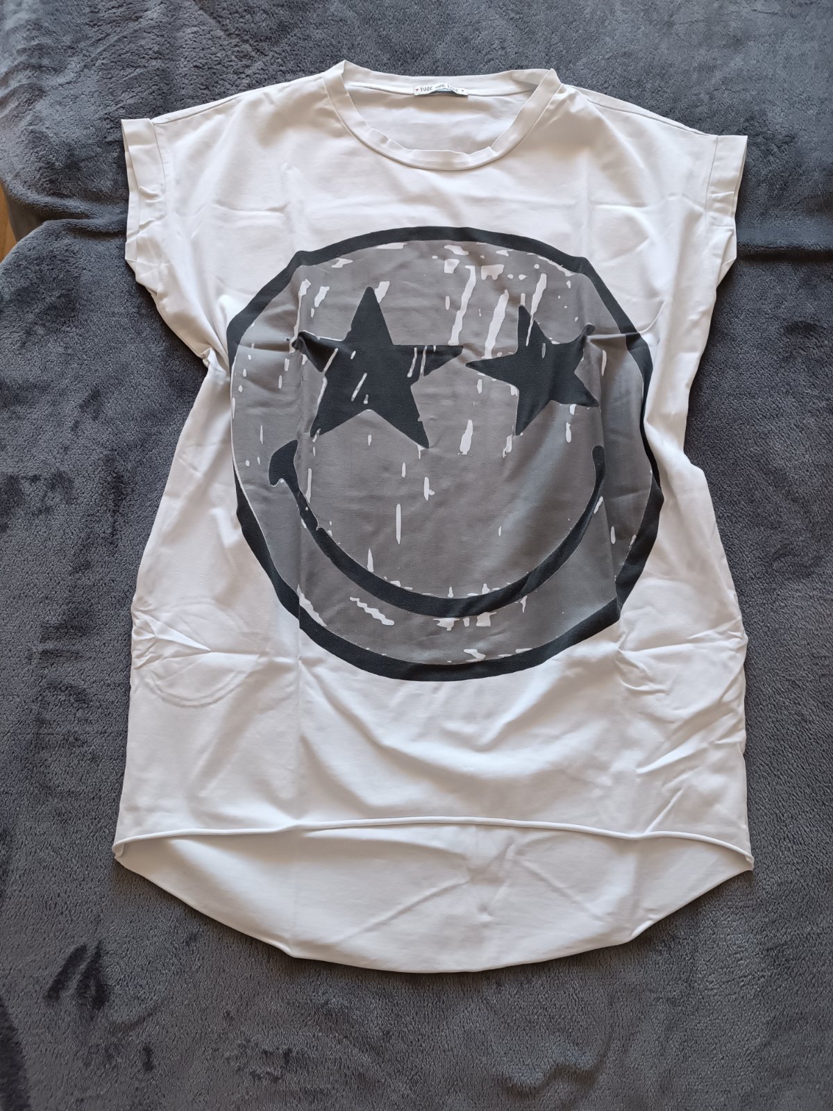 Predám predĺžené biele tričko/tuniku so smajlíkom, má vrecká. V. Uni (do L/XL určite).
