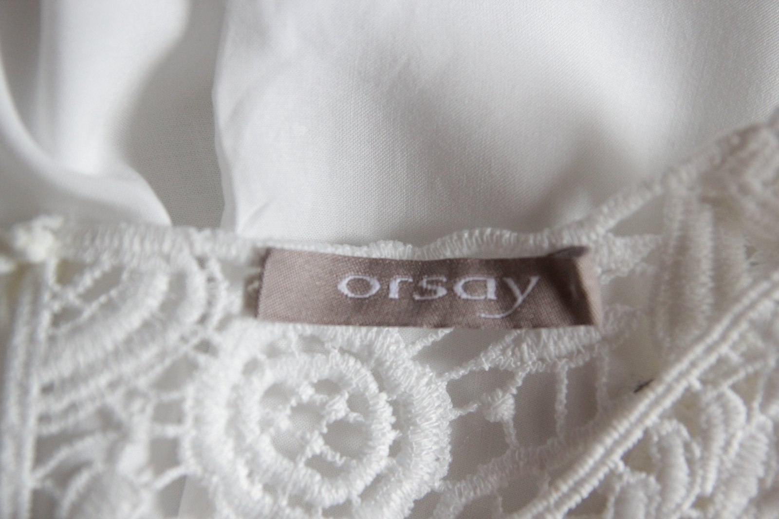 Biely elegantný top s čipkou, značka Orsay, veľkosť XL. Materiál je 100% viskóza. Top stav.