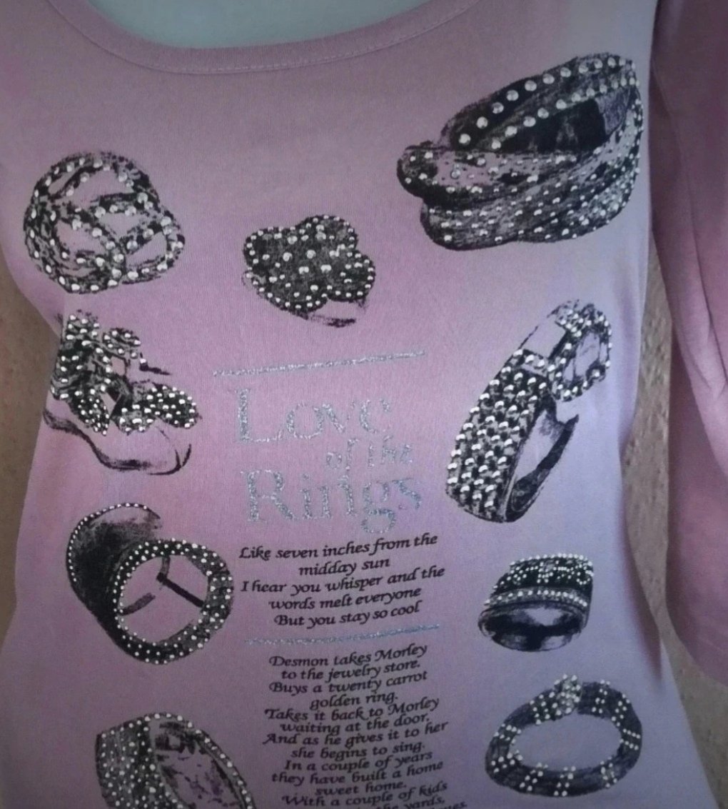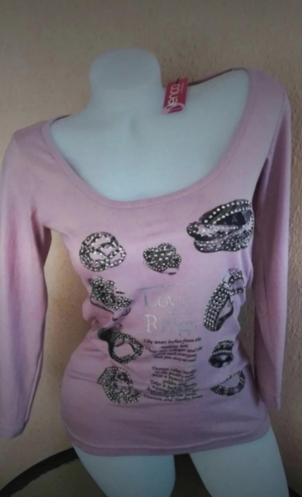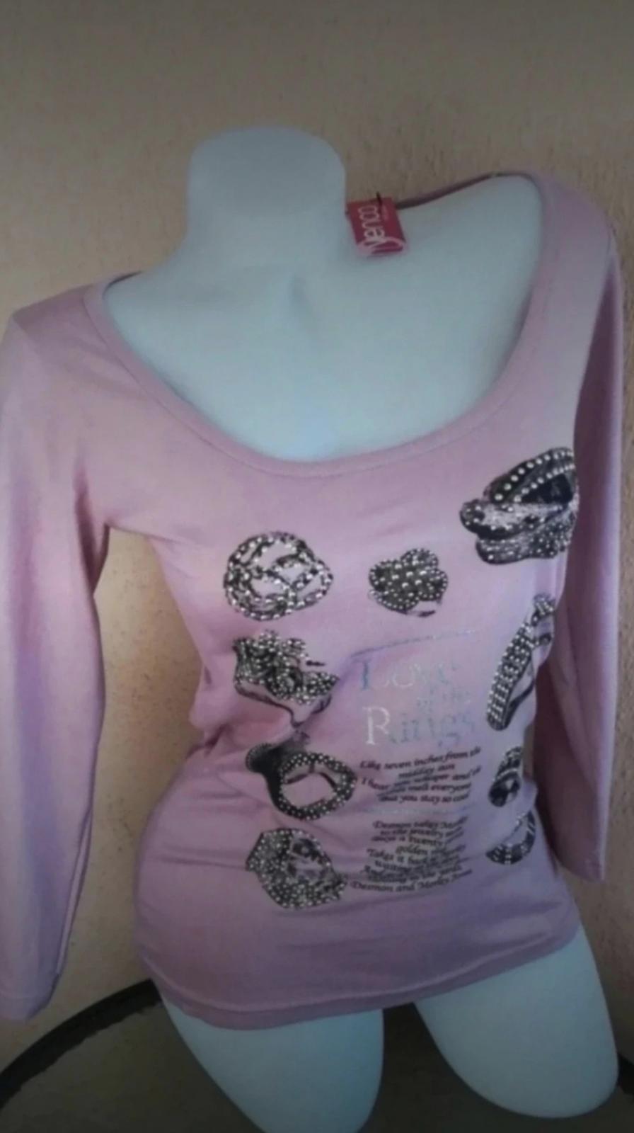 Nové, nenosené, elegantné dámske tričko/top s trištvrťovými rukávmi v krásnej jemnučko fialovej- šedofialovej farbe s kamiankami, s aplikáciou prstene a s nádherným výstrihom