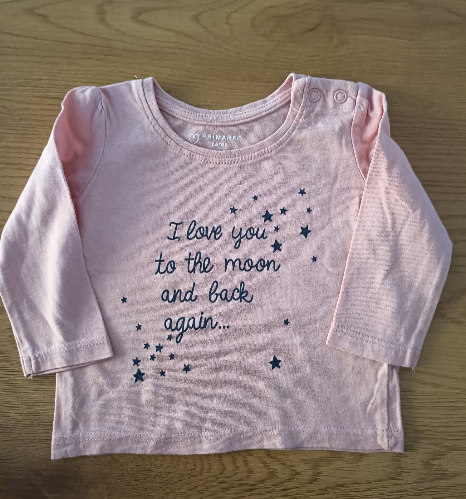 Predám v dobrom stave ružový dlhorukavovy top so zlatými bodkami a obrázkom labute značky Primark, veľkosť: 68 (3-6 mesiacov).