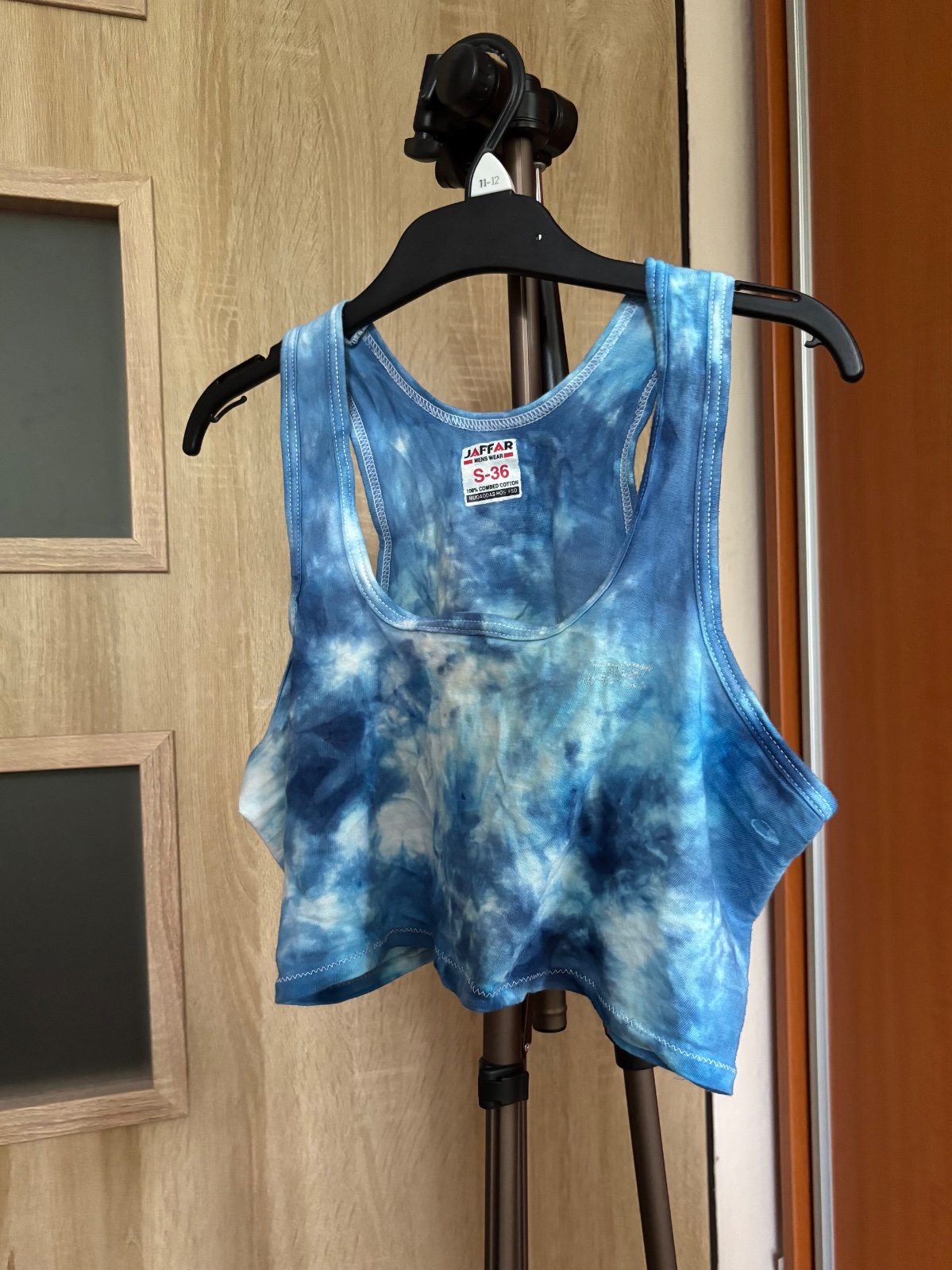 Modré batikované tielko vo výbornom stave. Materiál bavlna.