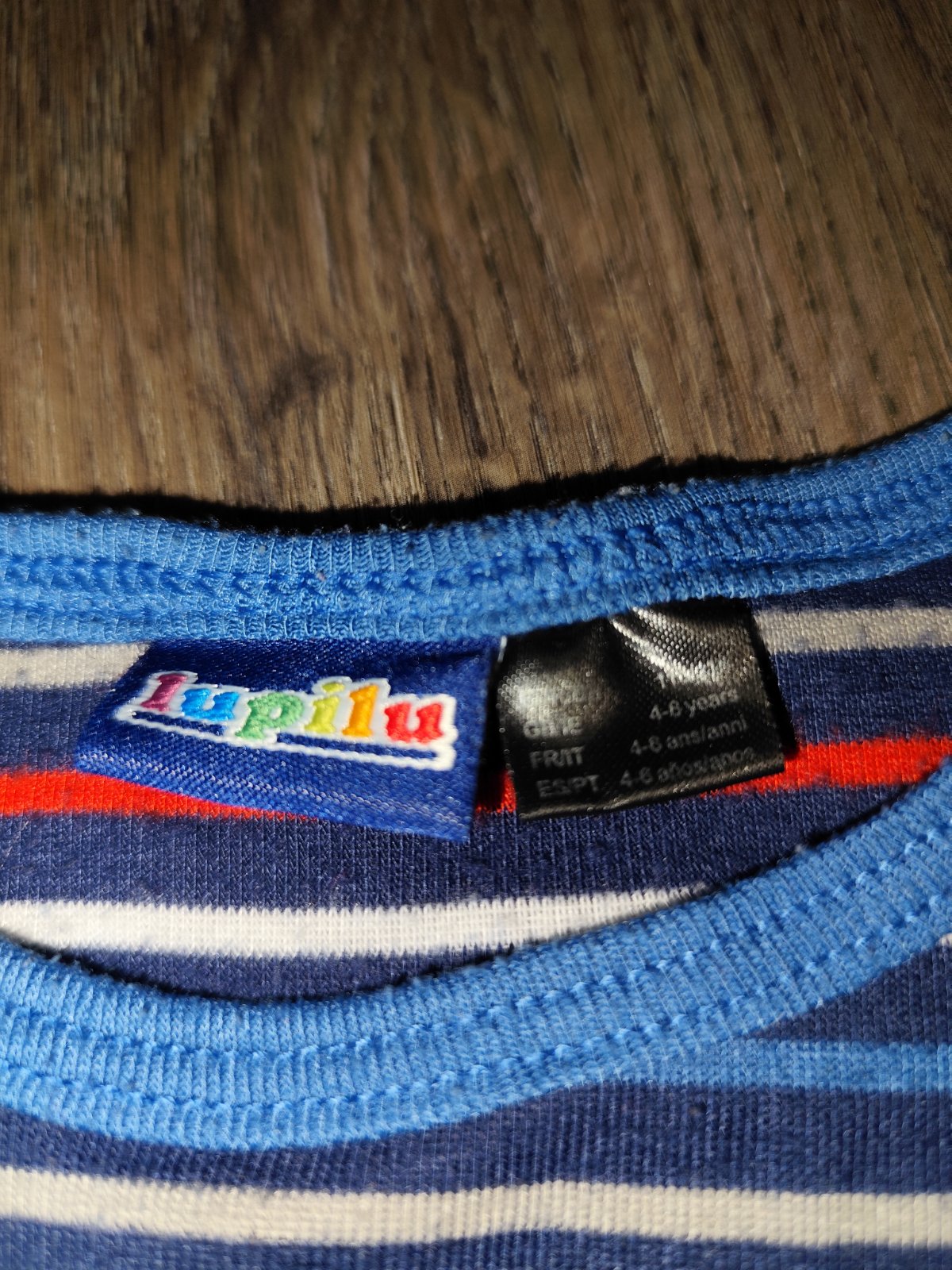 Veľmi pekné pásikavé bielo-modro-červené tričko s dlhým rukávom značky lupilu, veľkosť na štítku uvedená 110/116.