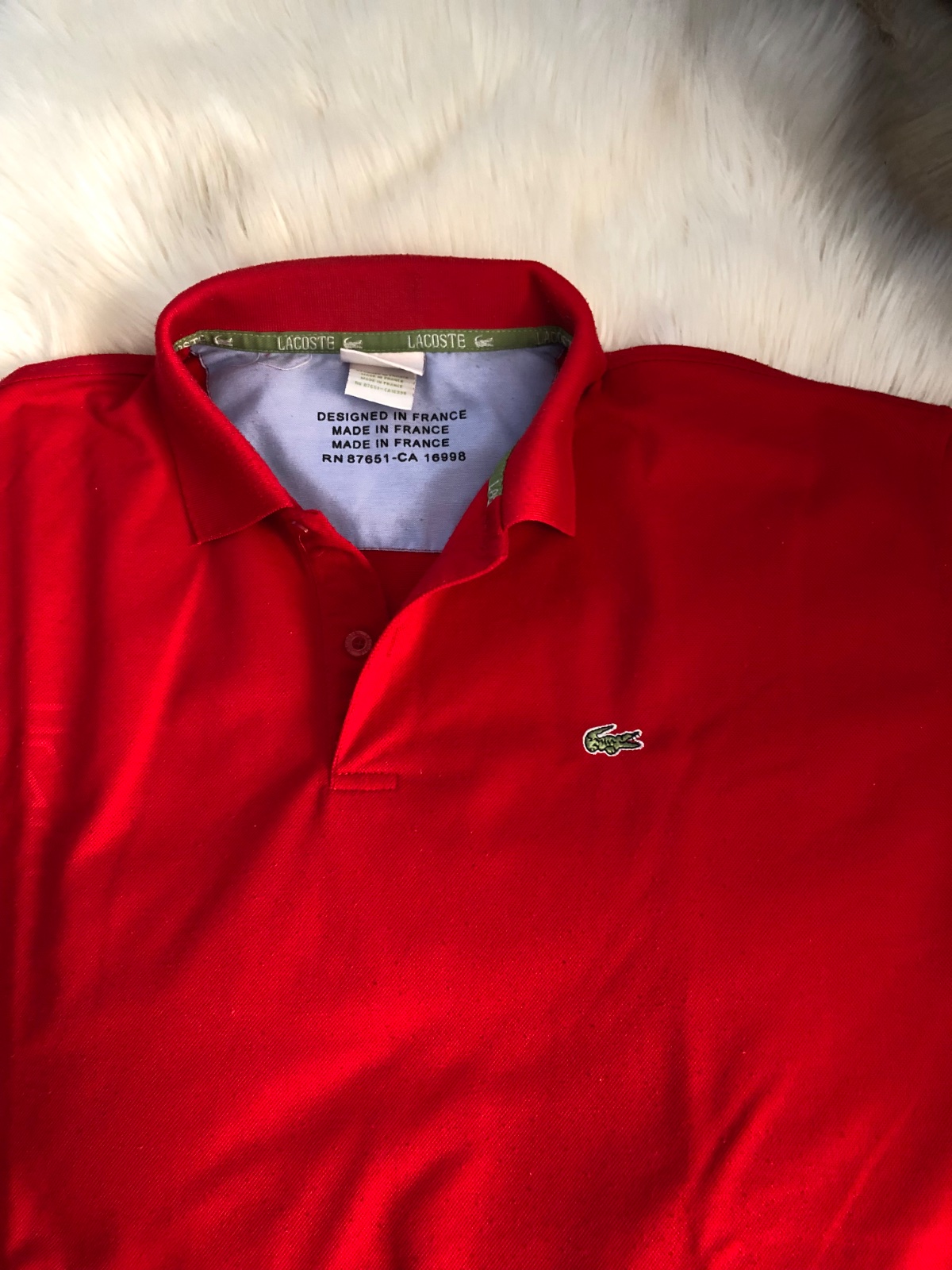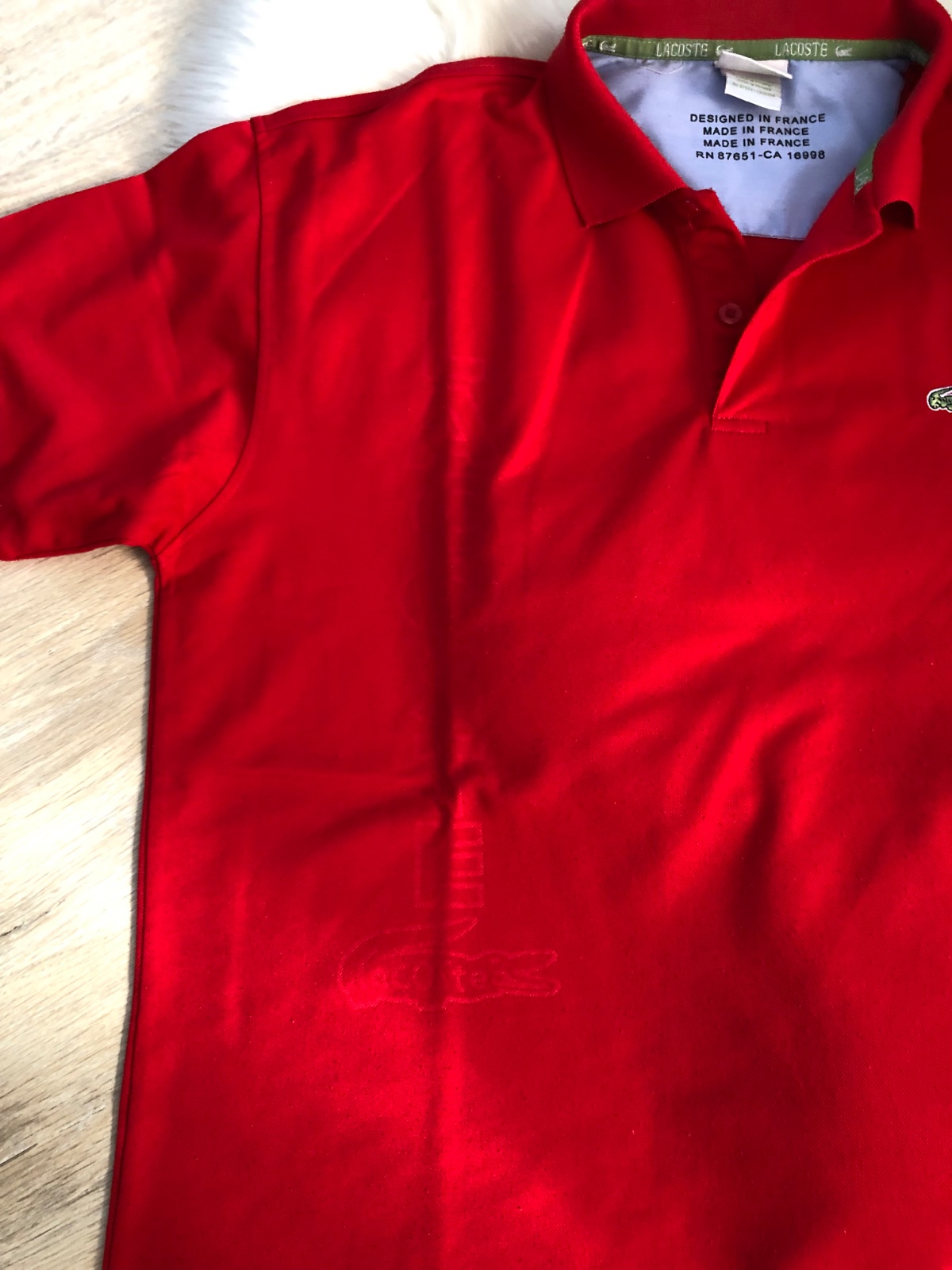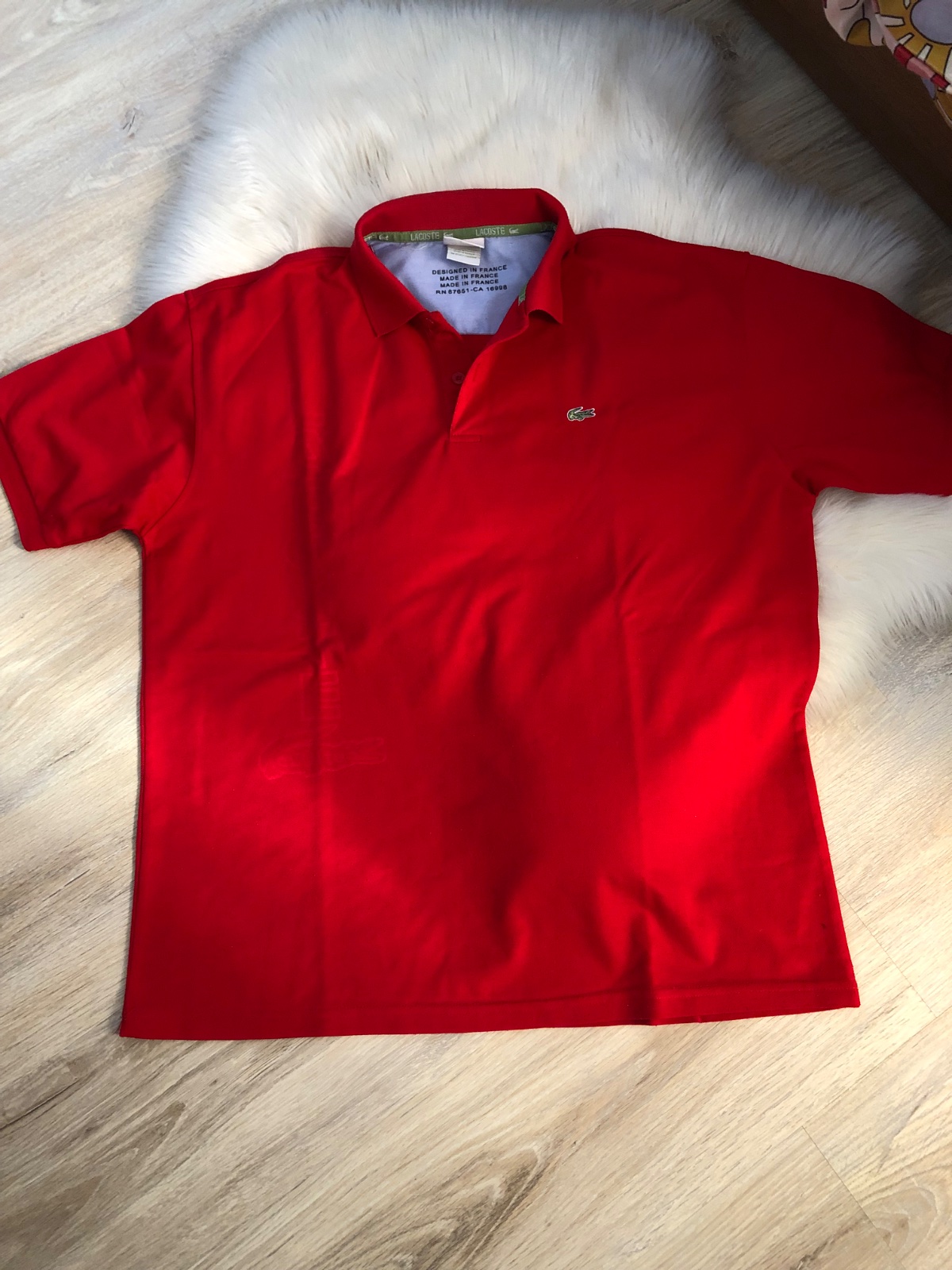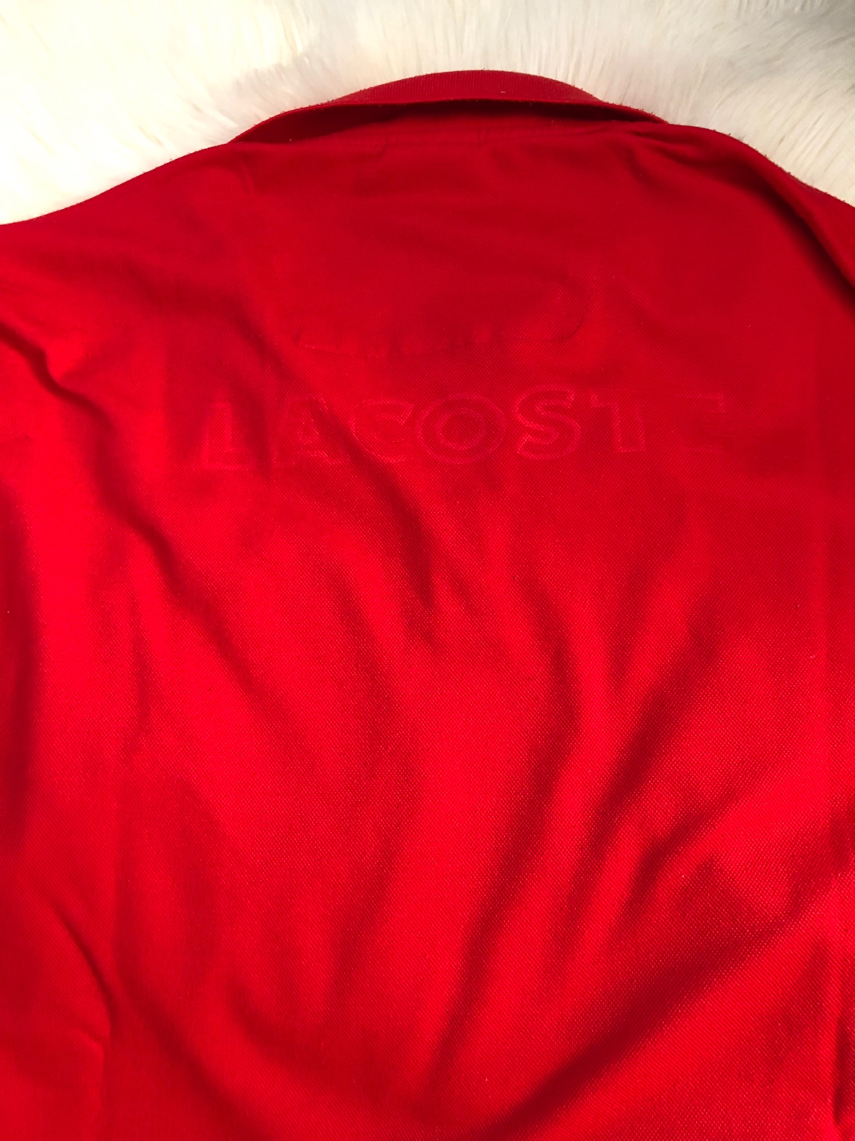 Sýta cervena farba, tricko sem tam oblecene, zmolky jemne, dajú sa odzmolkovat…šírka 62 a dĺžka 73cm