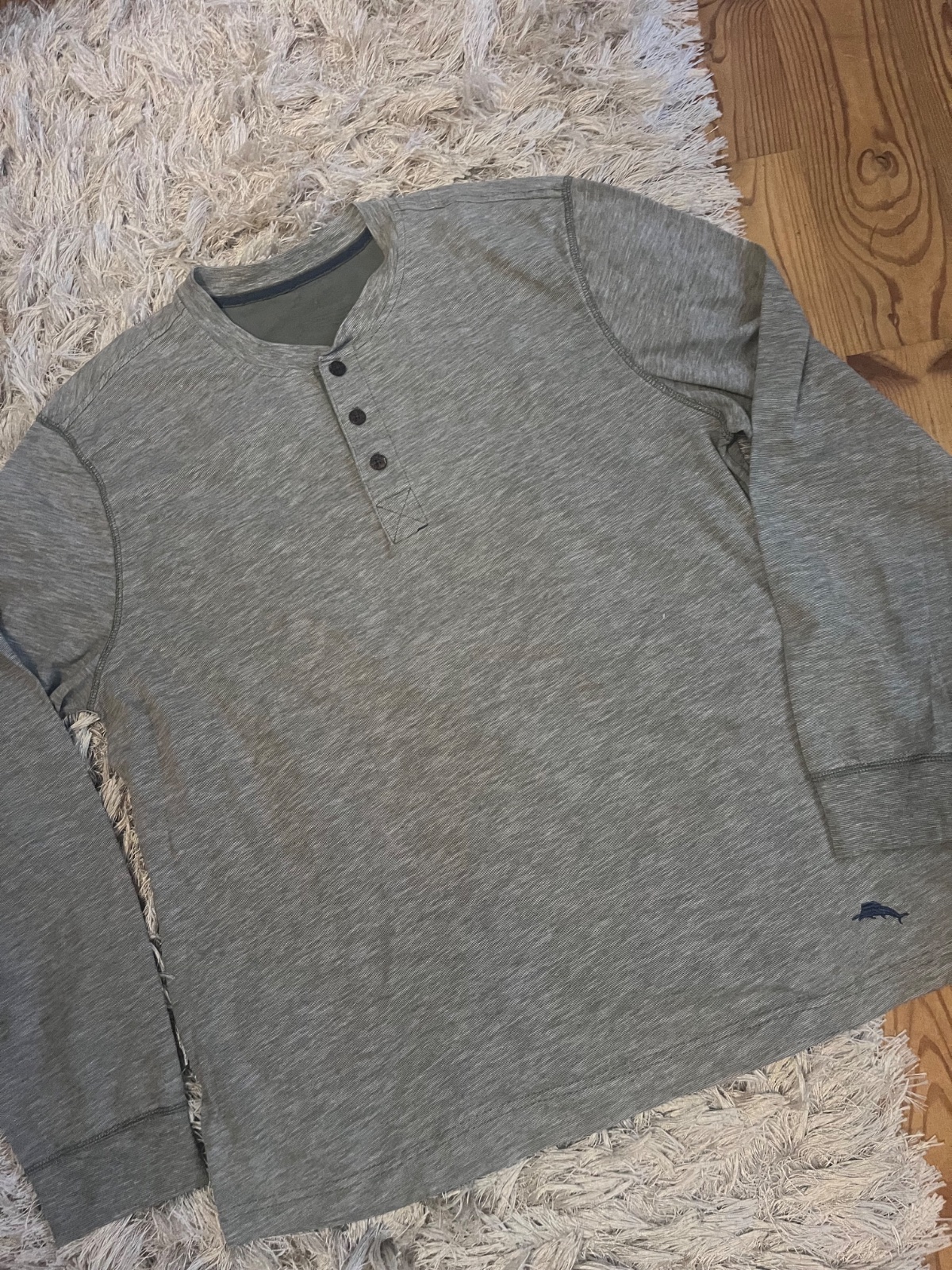 veľ: L 42/44 Farba. tm . sivá mat. 100% bavlna Made in India. Okrúhly výstrih zdobený so sv. sivým olemovaním, dlhé rukávy, rovný dolný okraj. Pekný zachovalý, kvalitný kus je elegantný, prito...