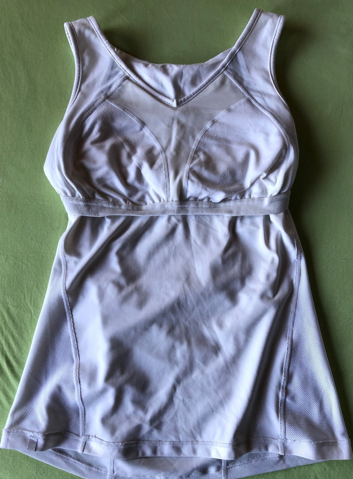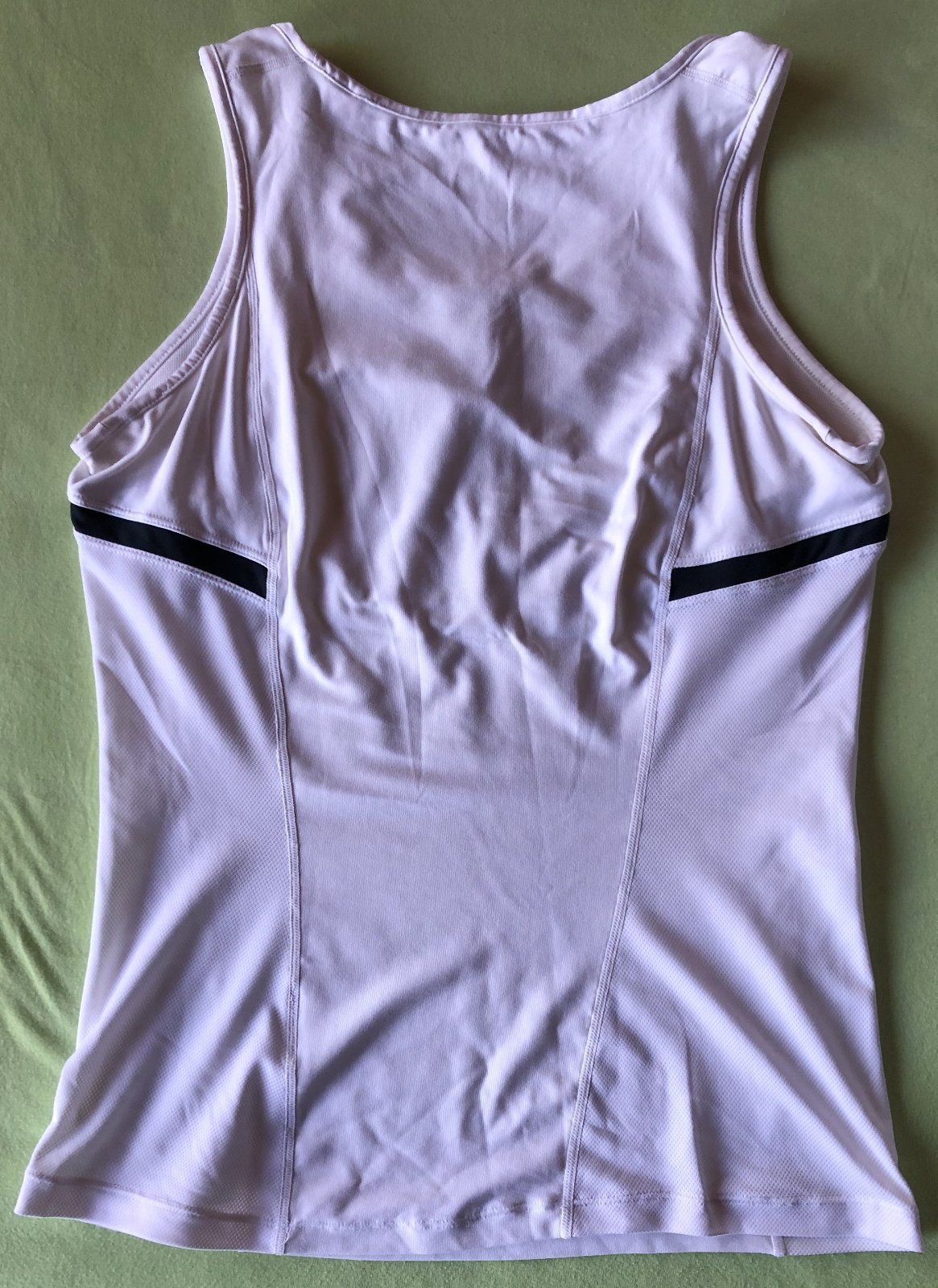 Dámske športové biele tieľko značky NIKE. Súčasťou je aj všitá športová podprasenka. Tričko málo nosené, ako nové. Veľkosť L (40).