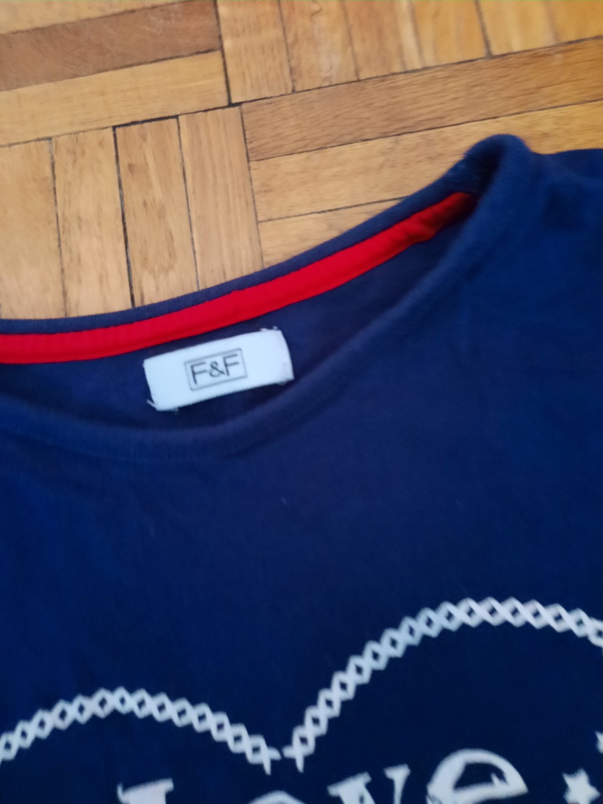 Veľmi pekné tričko s nepoškodenou aplikáciou vpredu.