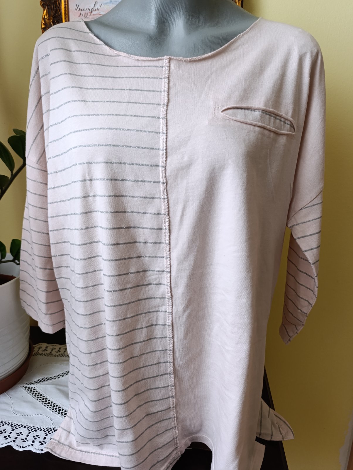 Súper stav, so striebornými nitkami, prsia 54 x2, dĺžka vpredu 67, vzadu 72, rukáv 3/4