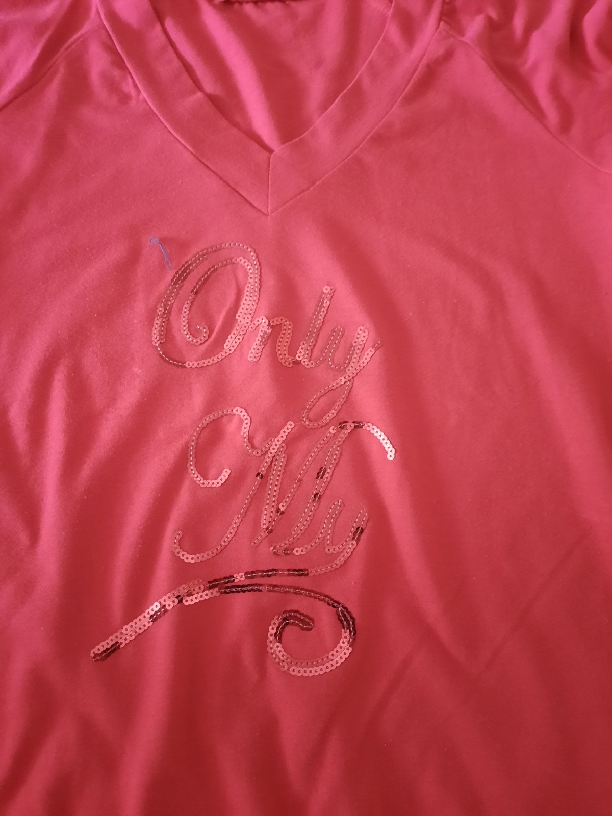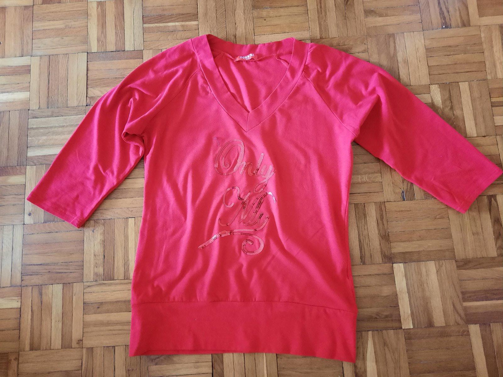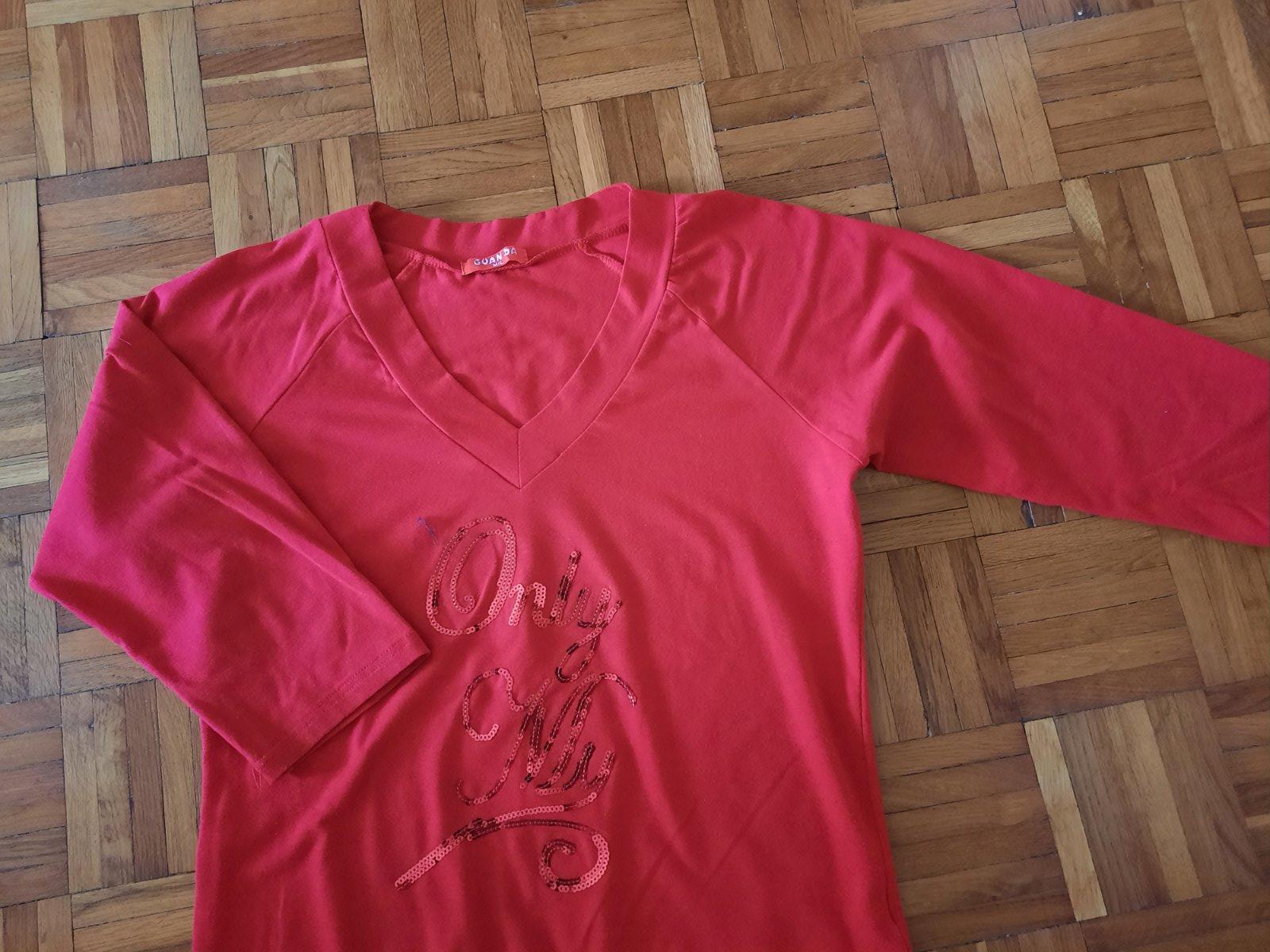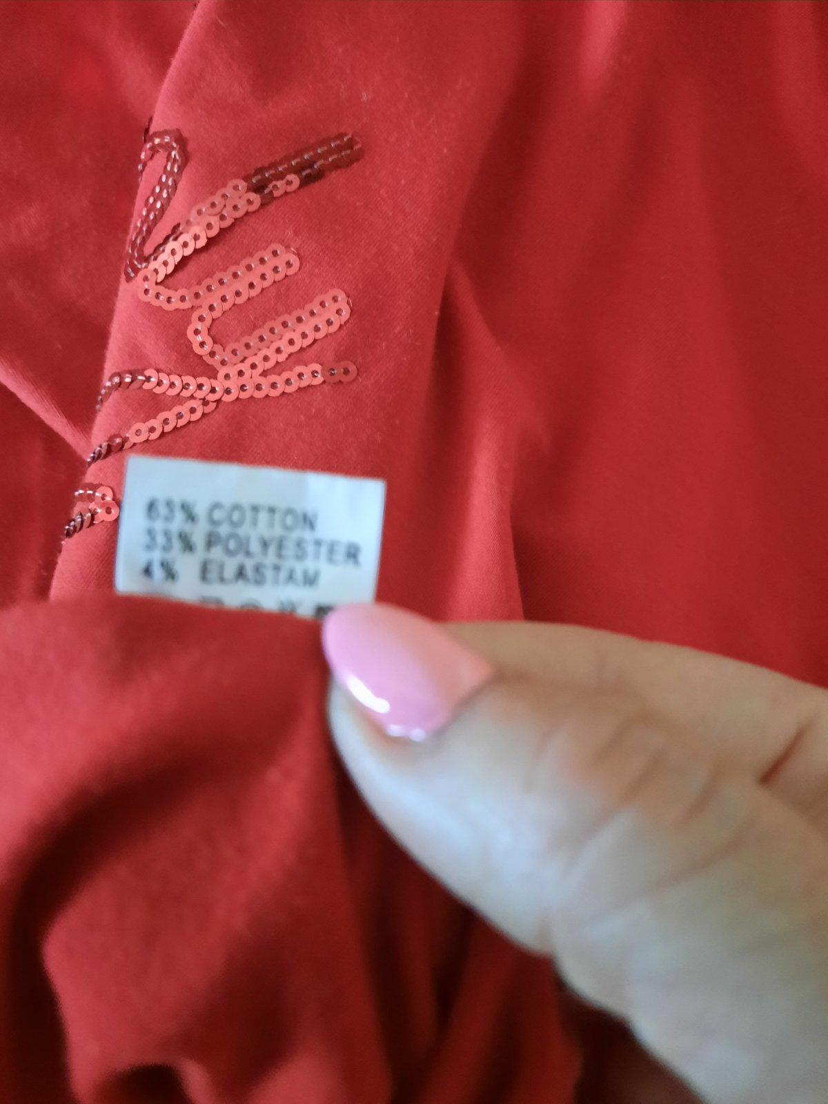 Krásne červené tričko/ top. Sýta farba. Nápis je s flitrami. Veľkostne sedí na M/L