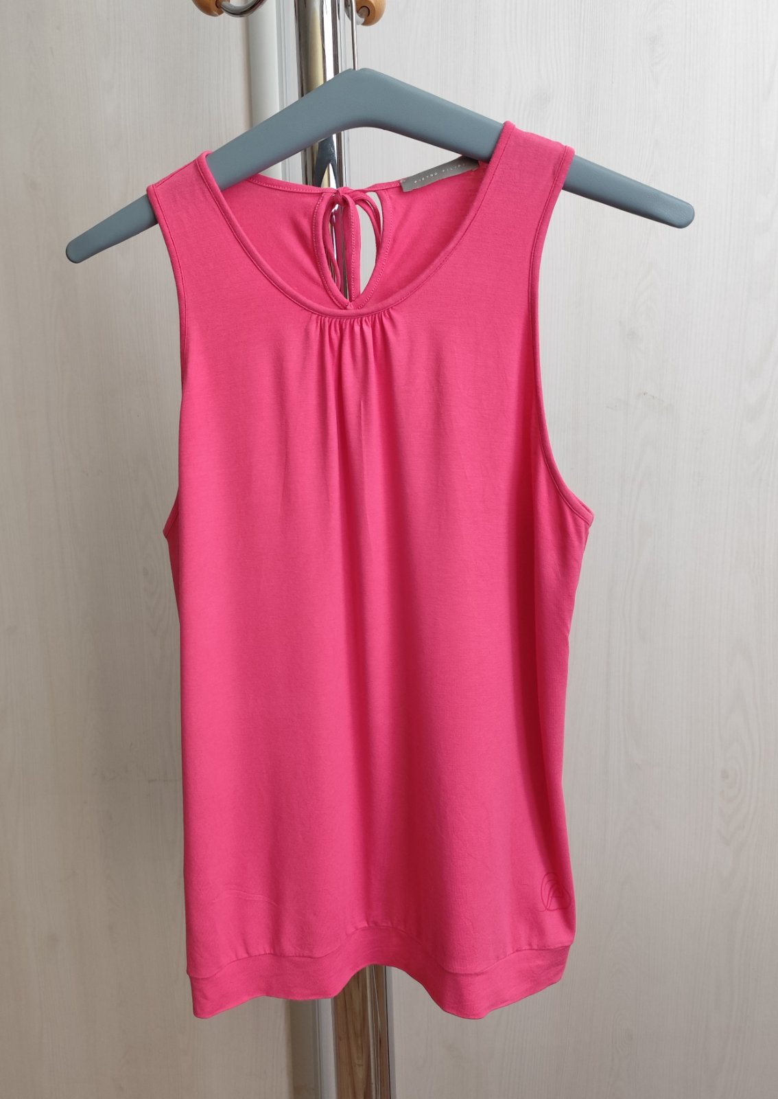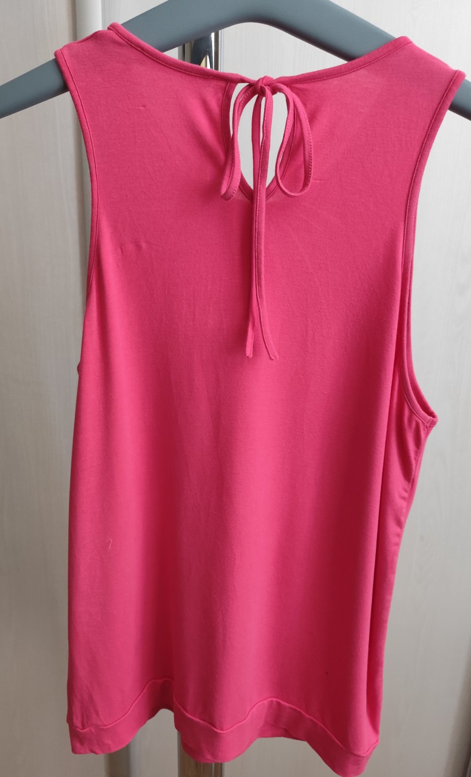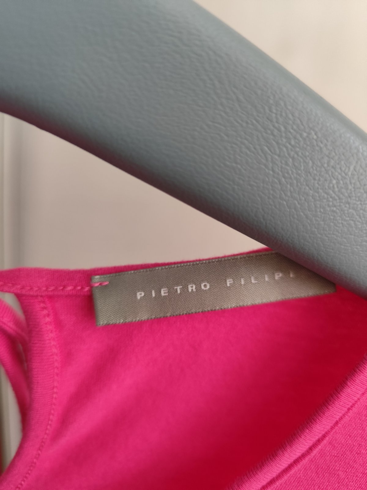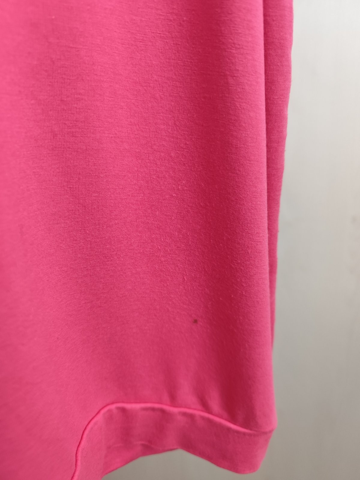 Nosené elastické tričko v dobrom stave. Visačky odstrihnuté. Cez prsia 2 x 48 cm (povolí o 2 x 10 cm). Dĺžka 65 cm. Vzadu dole malý fliačik ako bodka (pozri posledné foto). Cena prispôsobená stavu.