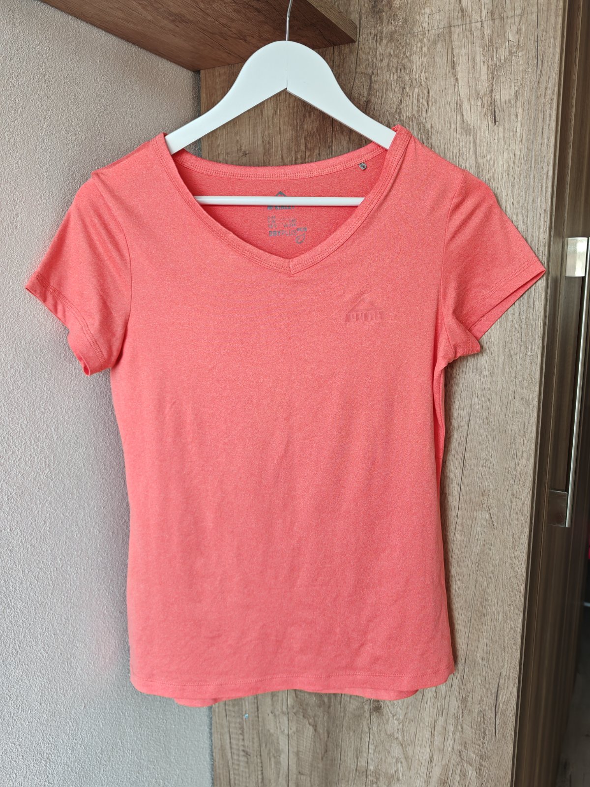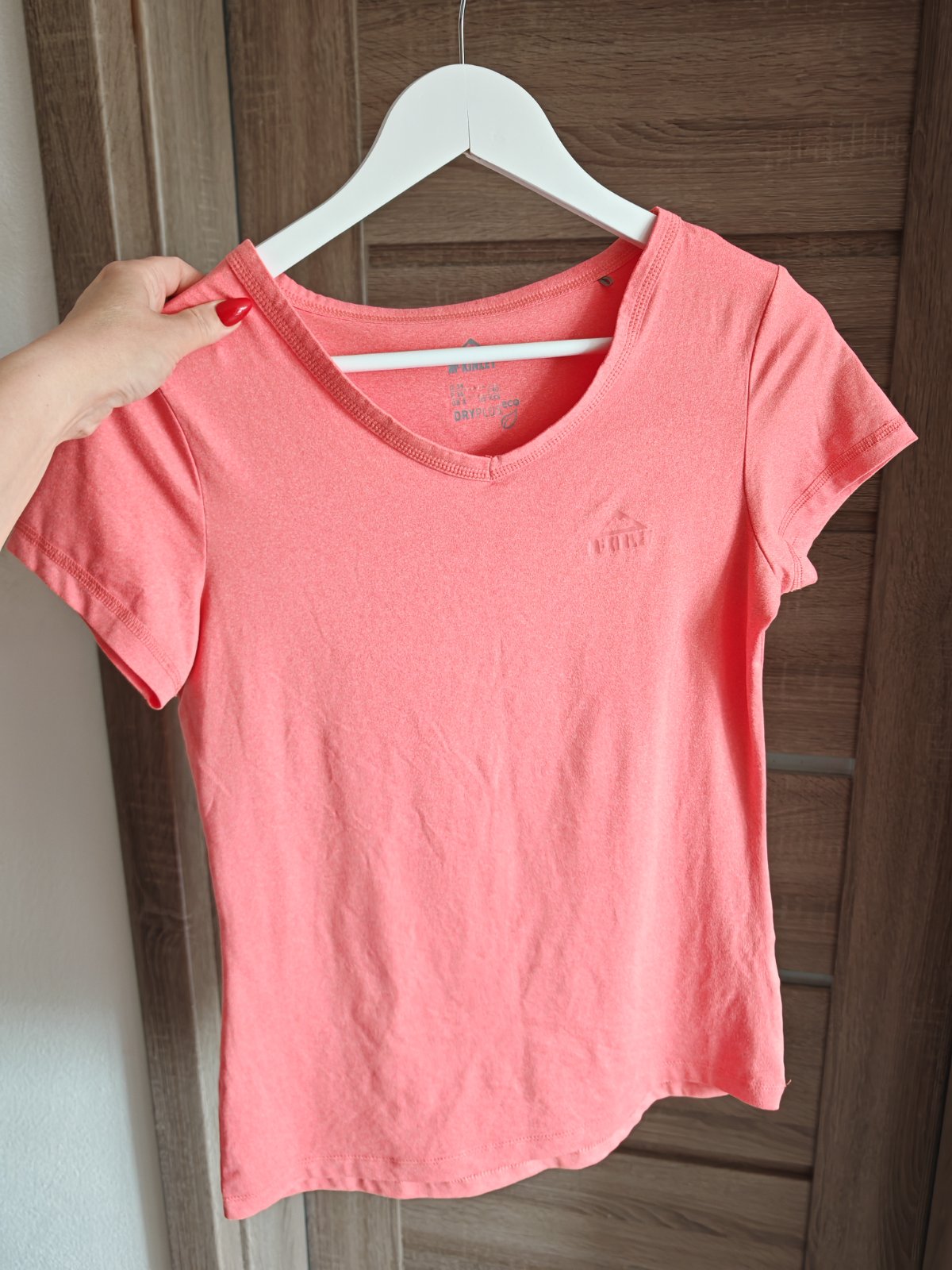 Tričko vo výbornom stave, minimálne známky používania, štítok s veľkosťou odstrihnutý. Je mierne elastické. Rozmery: dĺžka 55 cm, šírka pod rukávmi 43 cm