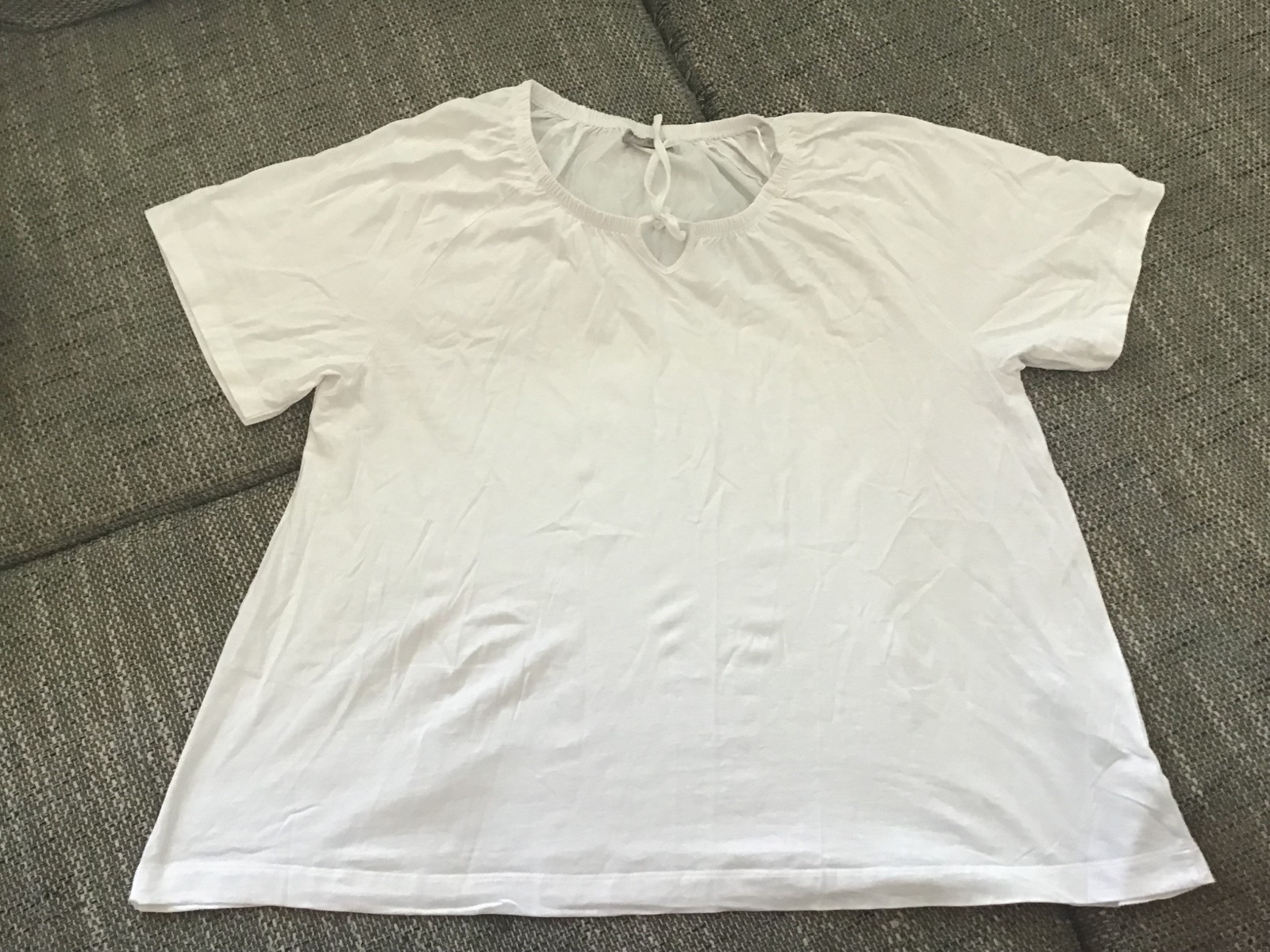 Len vyprate, dĺžka cca 75 cm, šírka pod pazuchami cca 2 x 64 cm