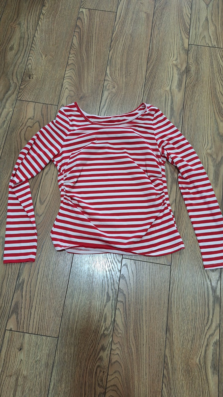 Bielo červené tričko s dlhým rukávom; velkosť M, premeriam.